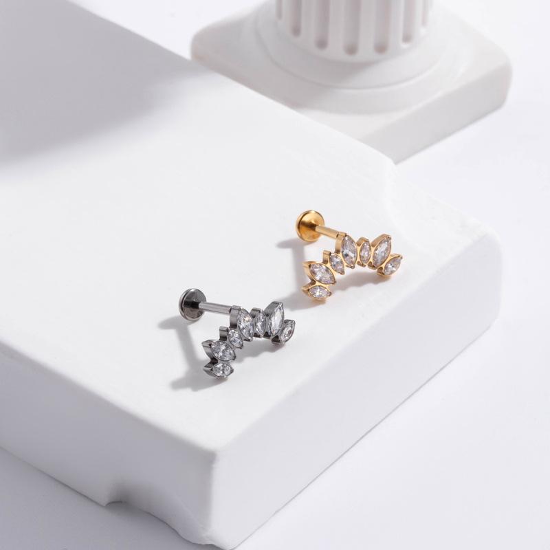 | nombre del producto | Titanio G23 rosca interna labio clavo barra clavo hueso de la oreja titanio F136 incrustado circonio de color moderno europeo y americano piercing cartílago clavo para la oreja |
