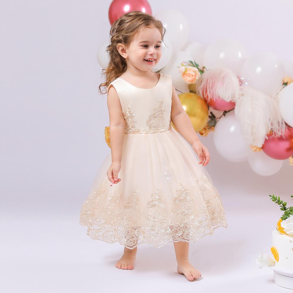 Vestido nuevo europeo y americano con lazo para bebé, vestido de bautizo para bebé, vestido para niña, vestido de encaje de manga larga