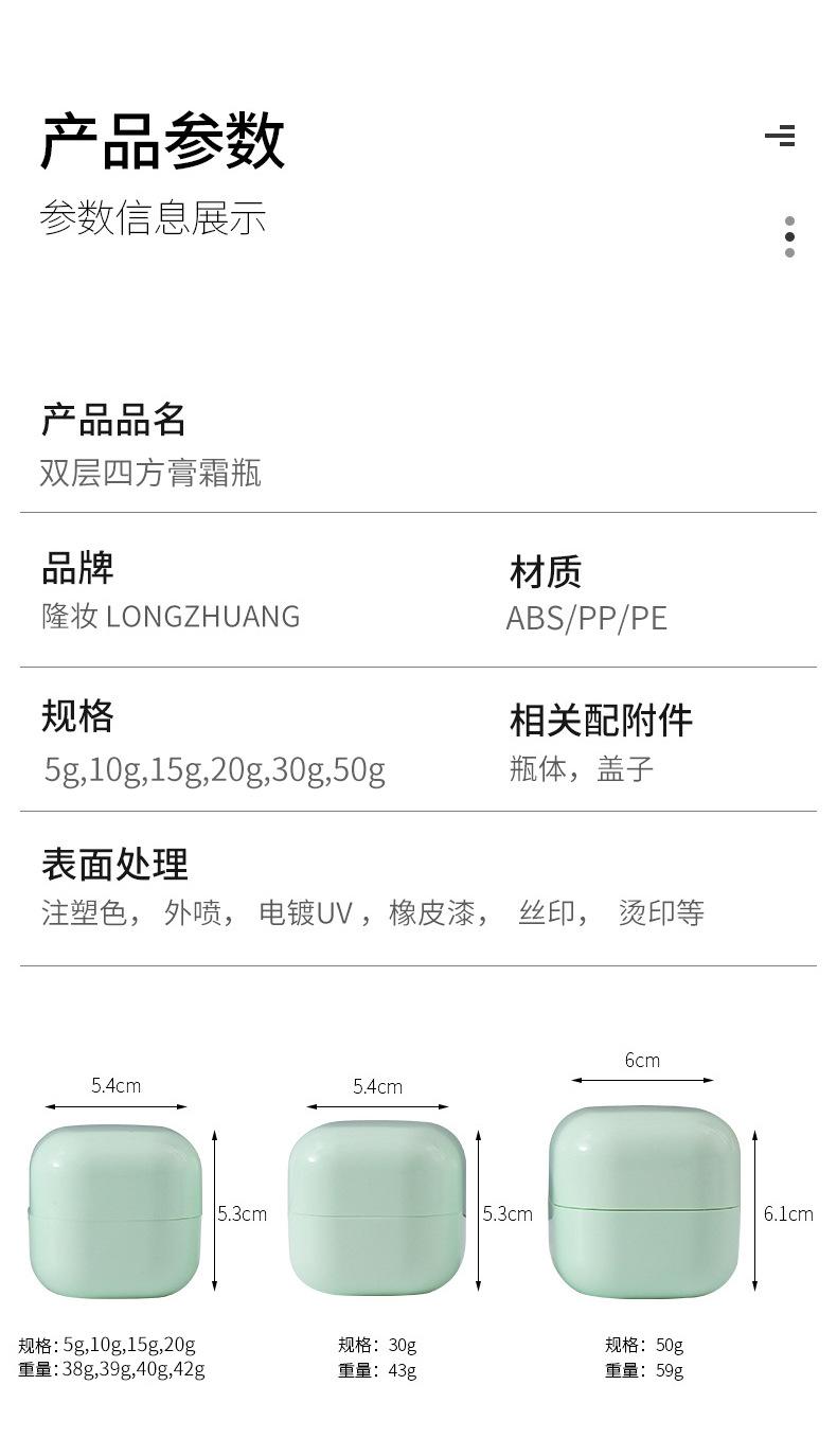 Botella de crema Macaron cuadrada de doble capa personalizable 2024, 20 g, 30 g y 50 g, botella de crema para ojos, linda botella de crema dividida