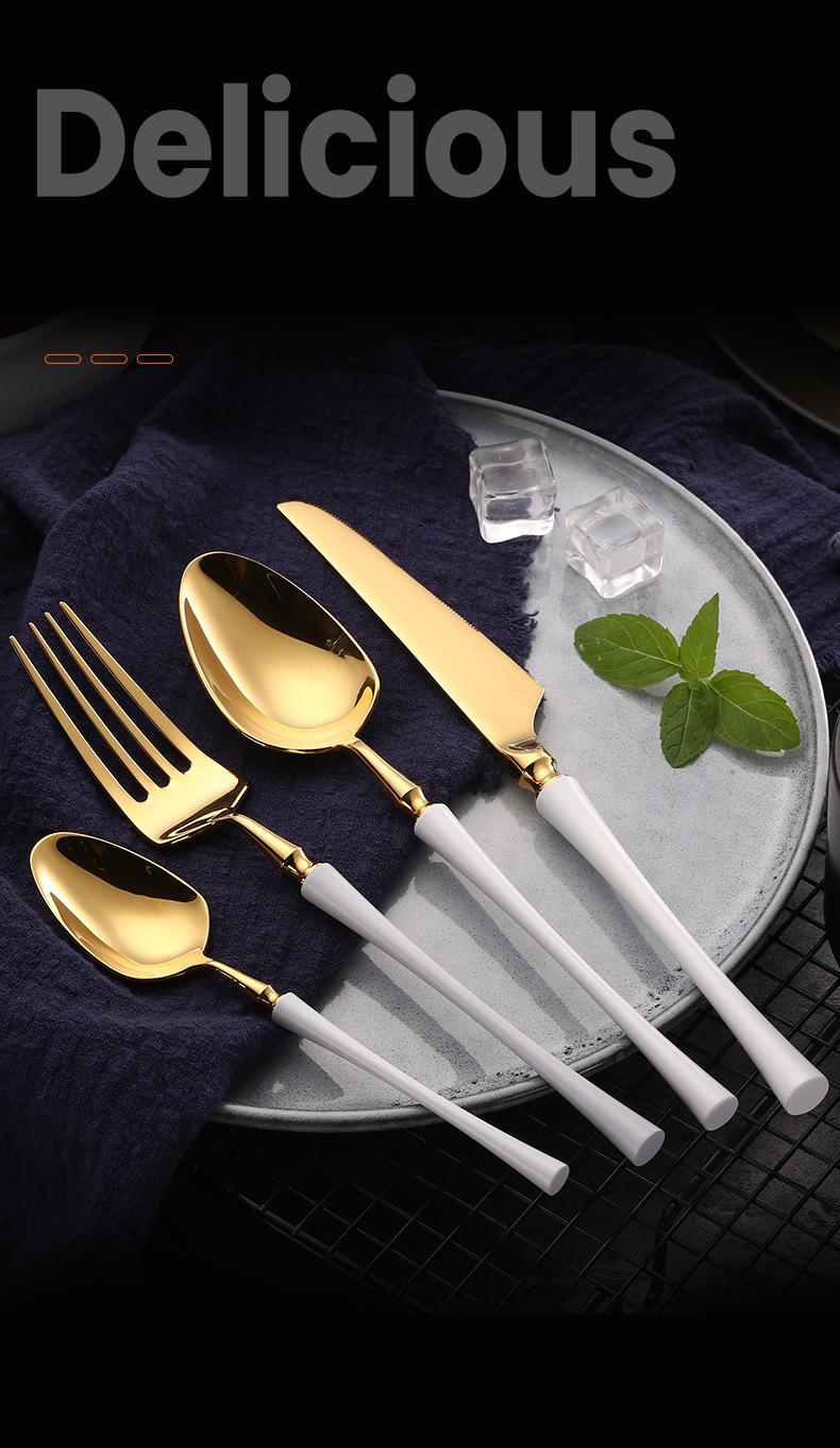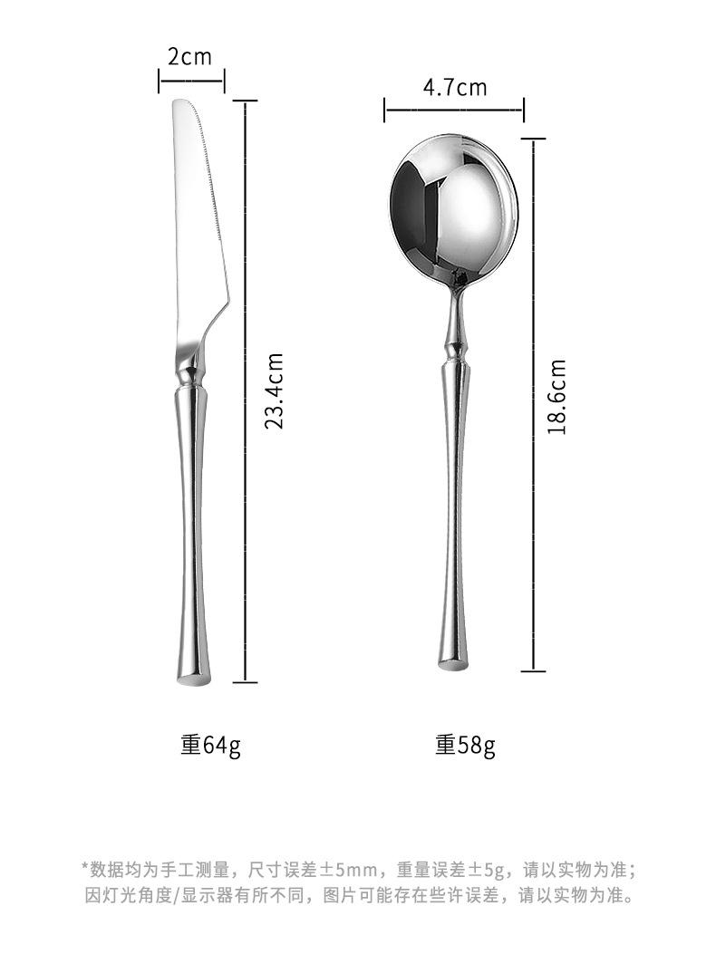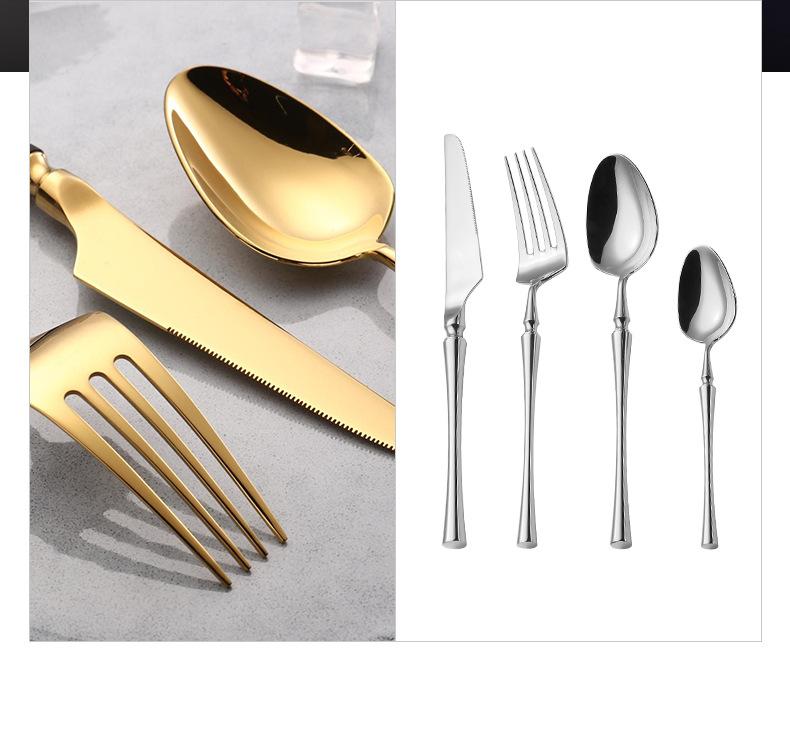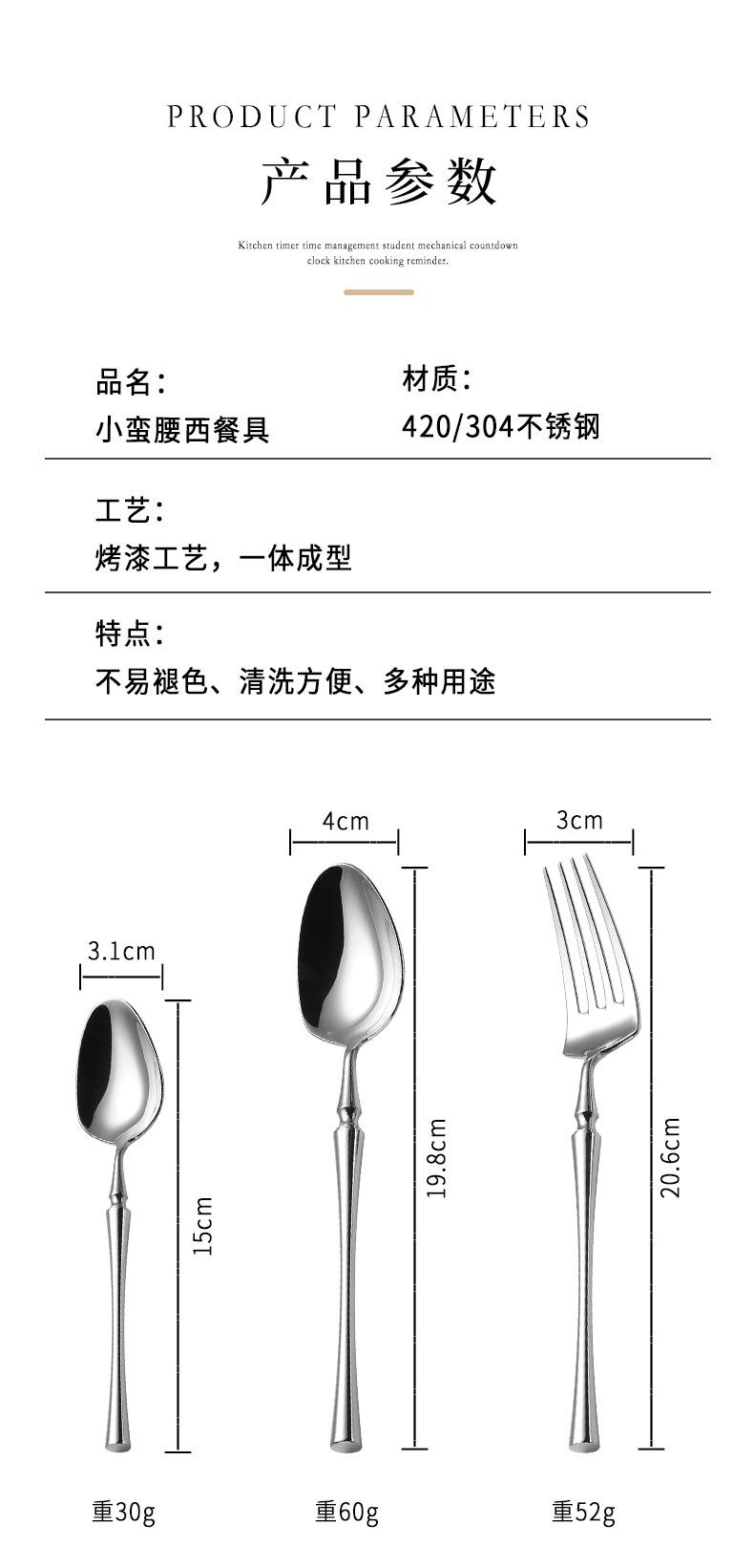 Cuchillo y tenedor puntiagudos de acero inoxidable 304 para hombre, serie de cintura pequeña, vajilla para el hogar, hotel, cuchillo y tenedor para carne, cuchara de postre de fruta