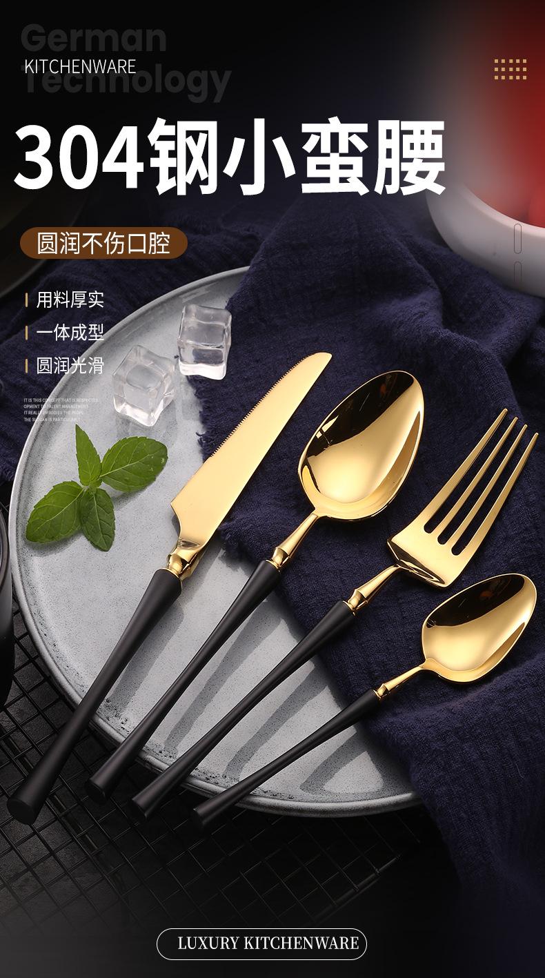 Compra Cuchillo y tenedor puntiagudos de acero inoxidable 304 para hombre, serie de cintura pequeña, vajilla para el hogar, hotel, cuchillo y tenedor para carne, cuchara de postre de fruta al por mayor en Joom.pro