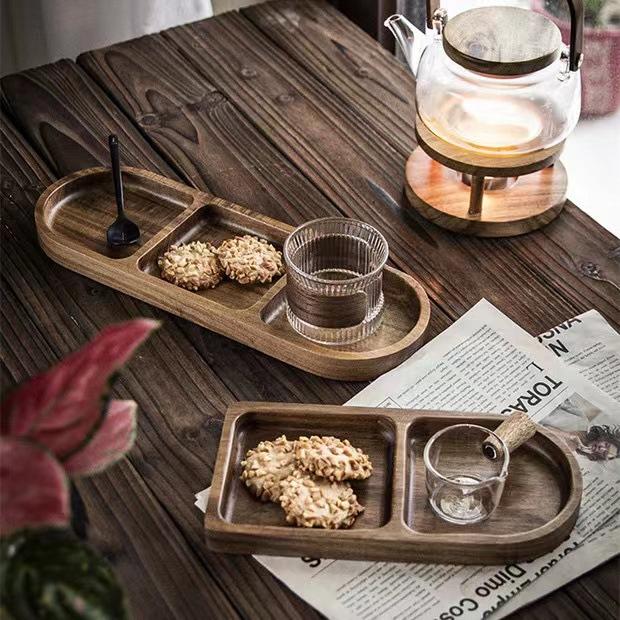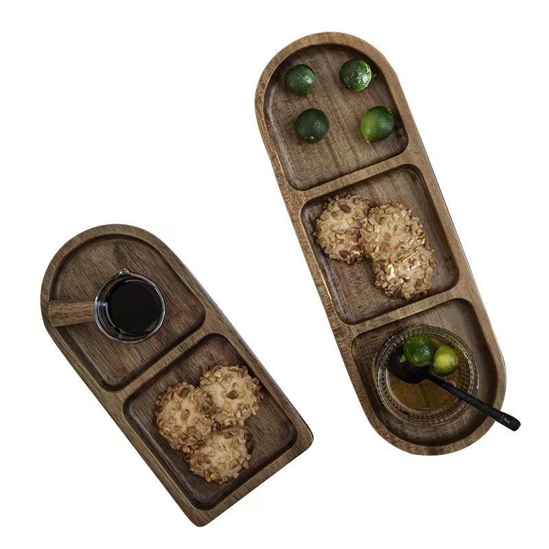 Acacia wood two-grid plate, Acacia Wood three-compartment plate