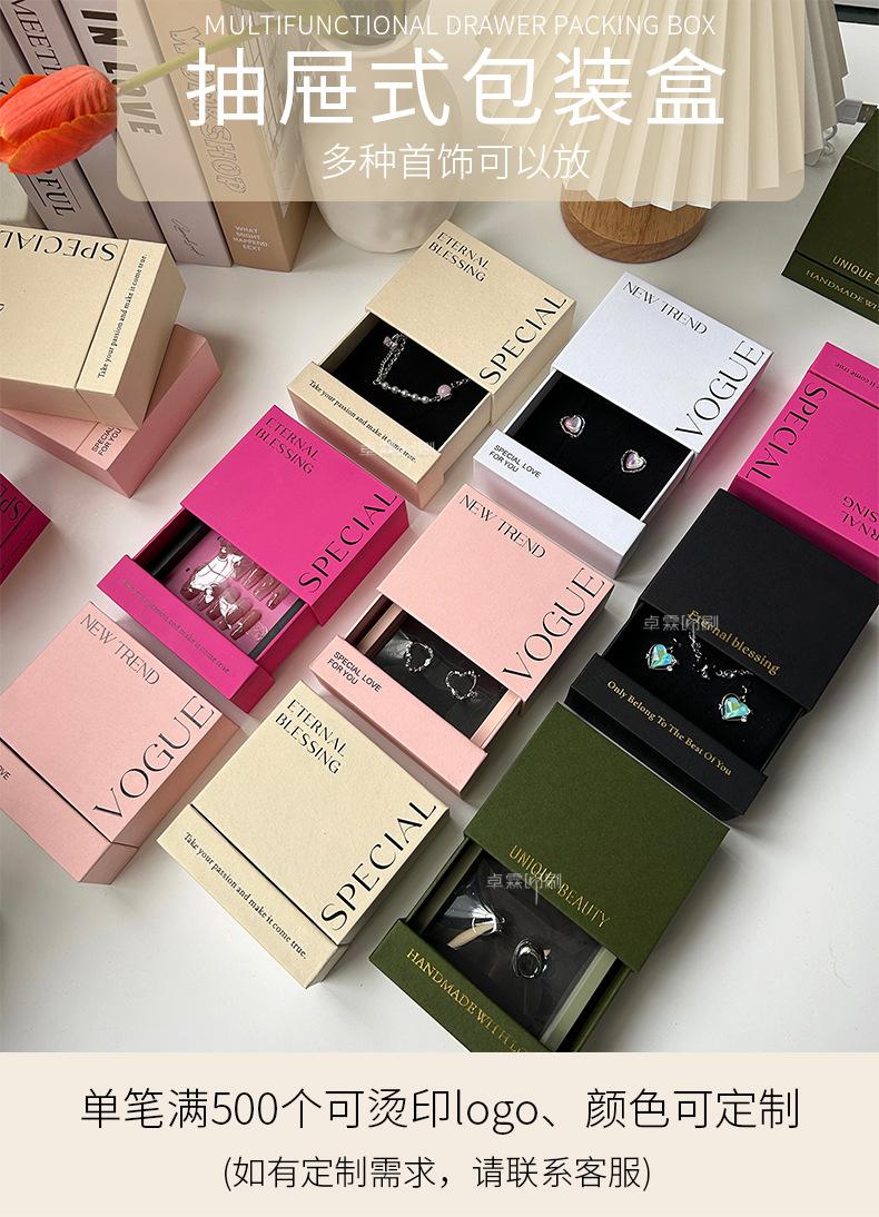 Joyero de alta calidad con cajón para pendientes, collares y anillos, caja de almacenamiento para exhibición de joyas, se puede personalizar.