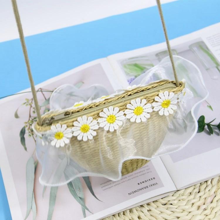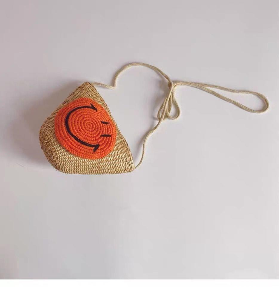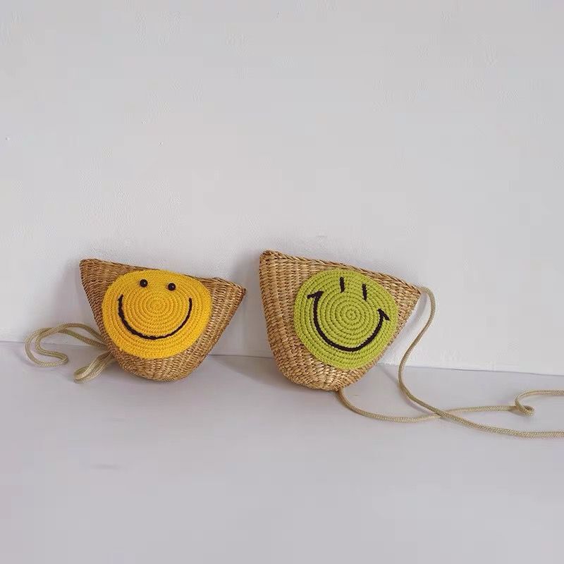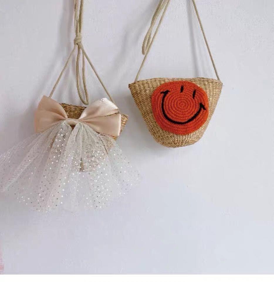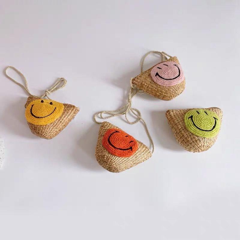 2025 Nueva Bolsa de Paja para Niños Bolsa Cruzada Linda con Carita Sonriente para Niña Bolsa Monedero para Viajes al Aire Libre