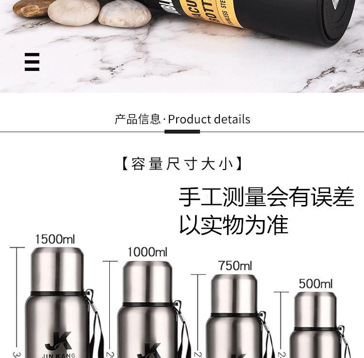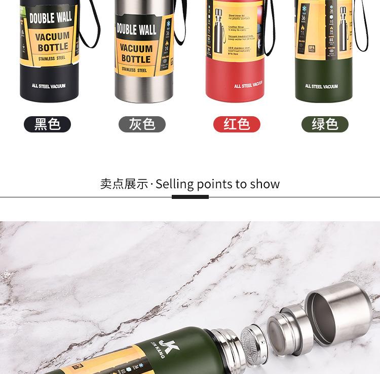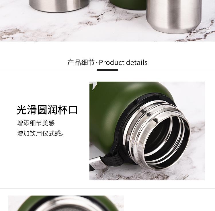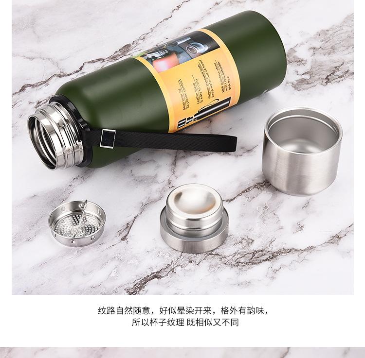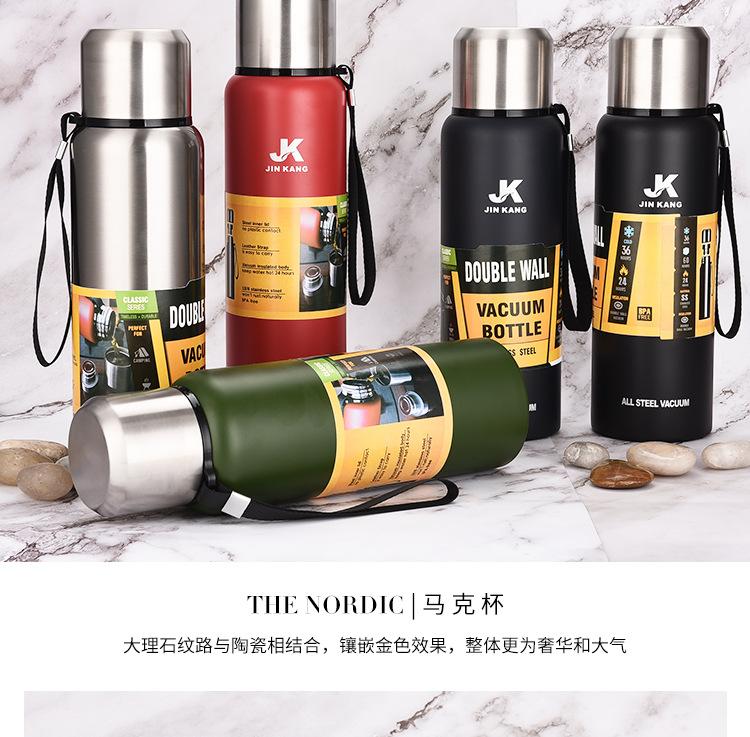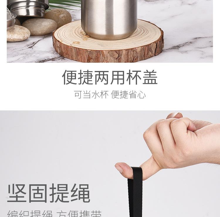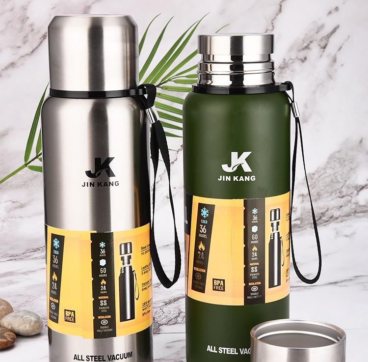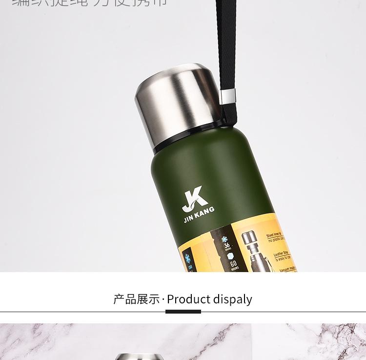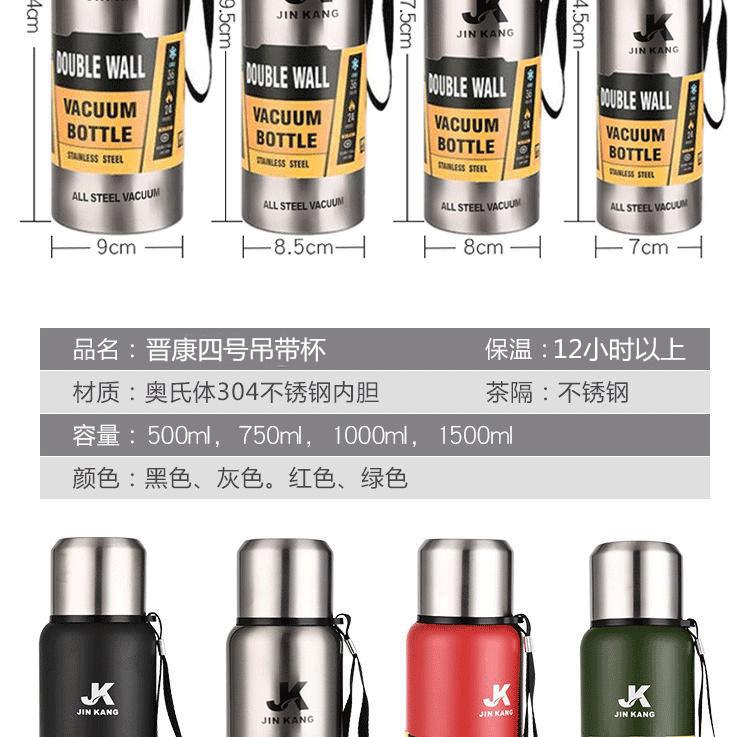 Termo portátil de acero inoxidable con tapa de acero inoxidable de gran capacidad para deportes al aire libre al vacío Taza de agua con cuerda