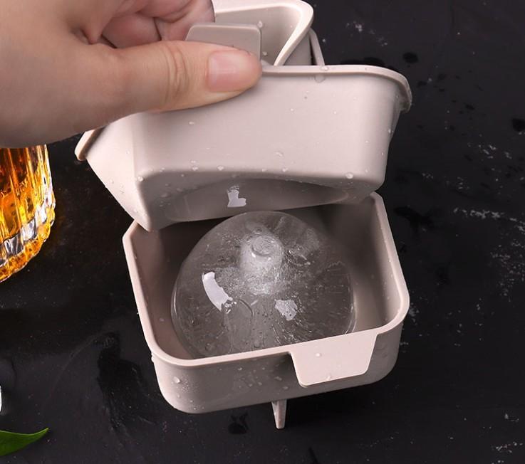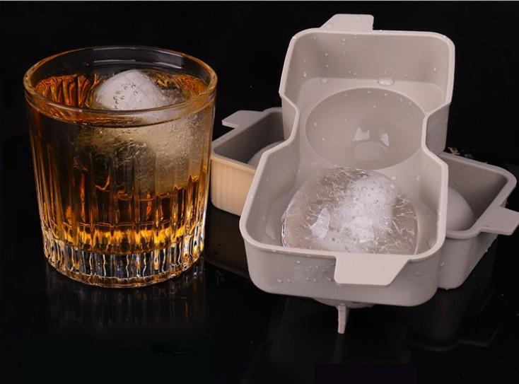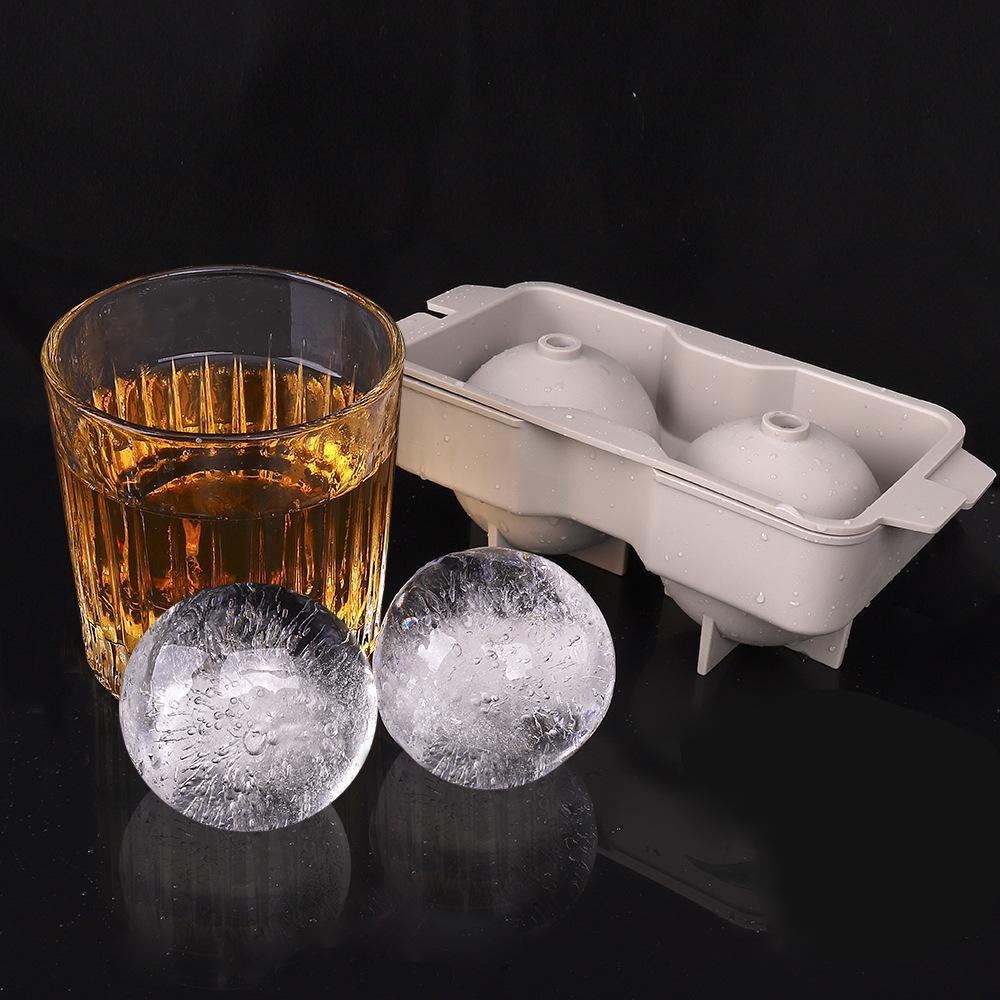Molde de Silicona para Bolas de Hielo Redondas de Whisky de 2 Agujeros de Doble Capa con Tapa Herramienta para Hacer Hielo para Licor Molde de Hielo