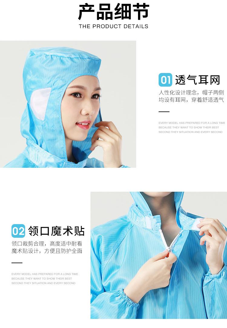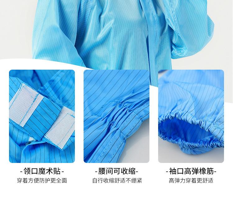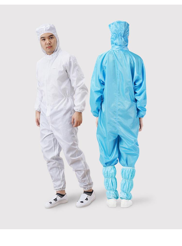 Venta al por mayor de tres piezas para polvo, transpirable, ropa limpia, taller de alimentos, ropa protectora, mono con capucha antiestático, ropa estática a prueba de polvo, traje para taller libre de polvo, ropa estática