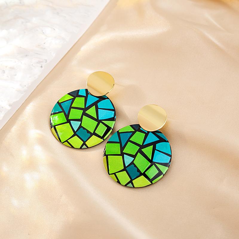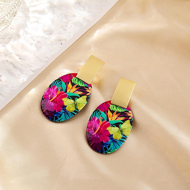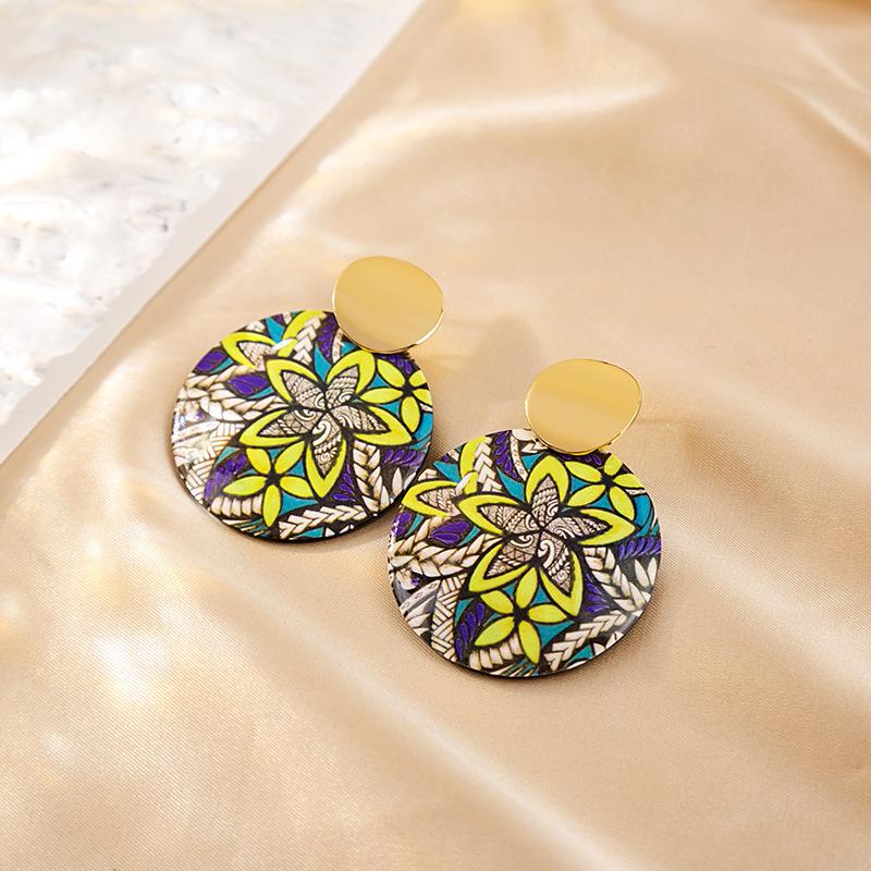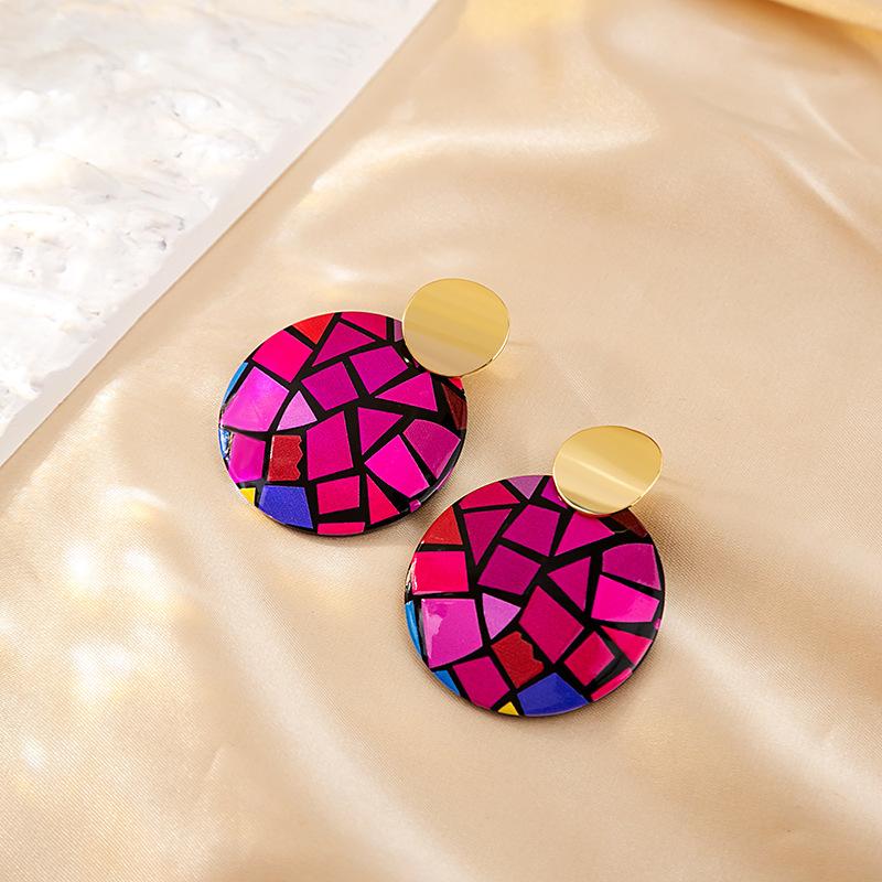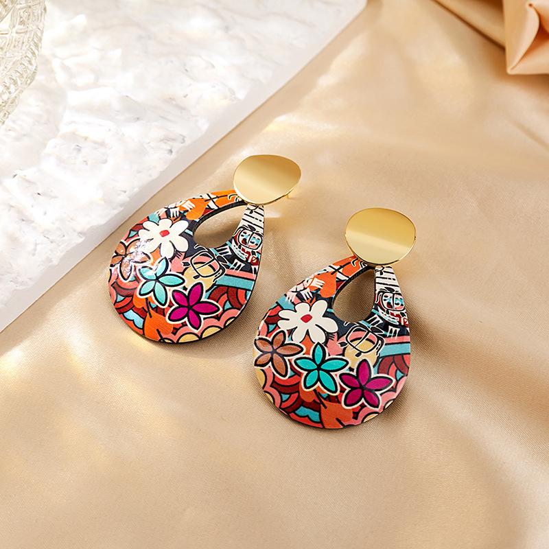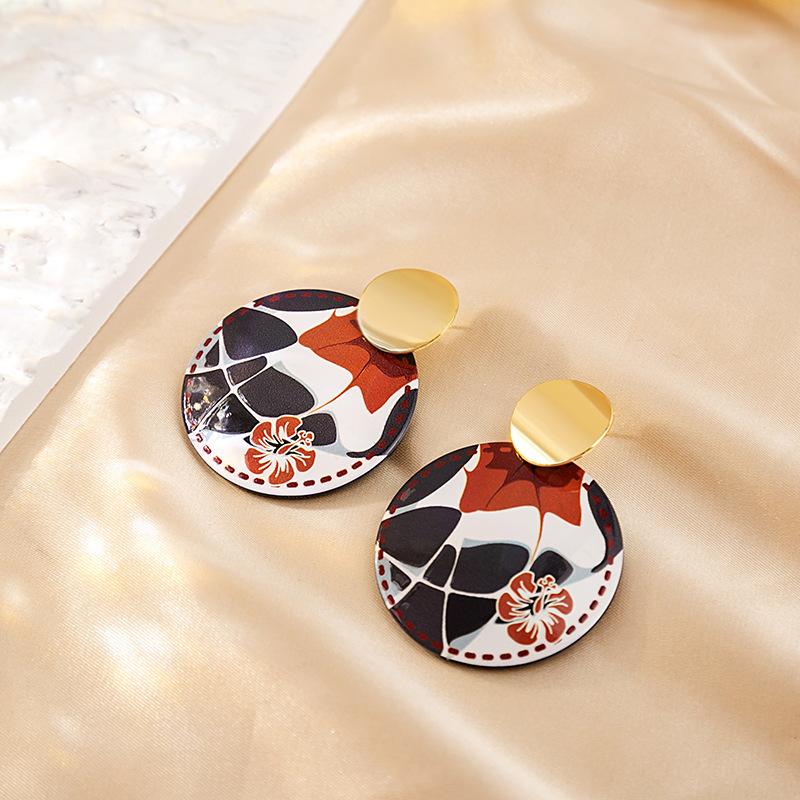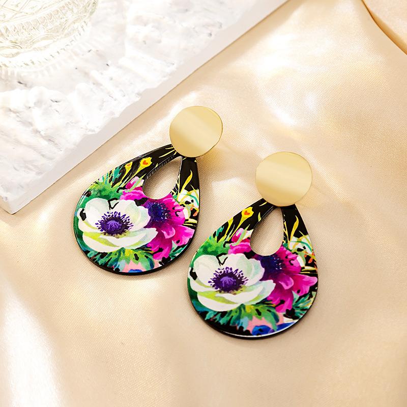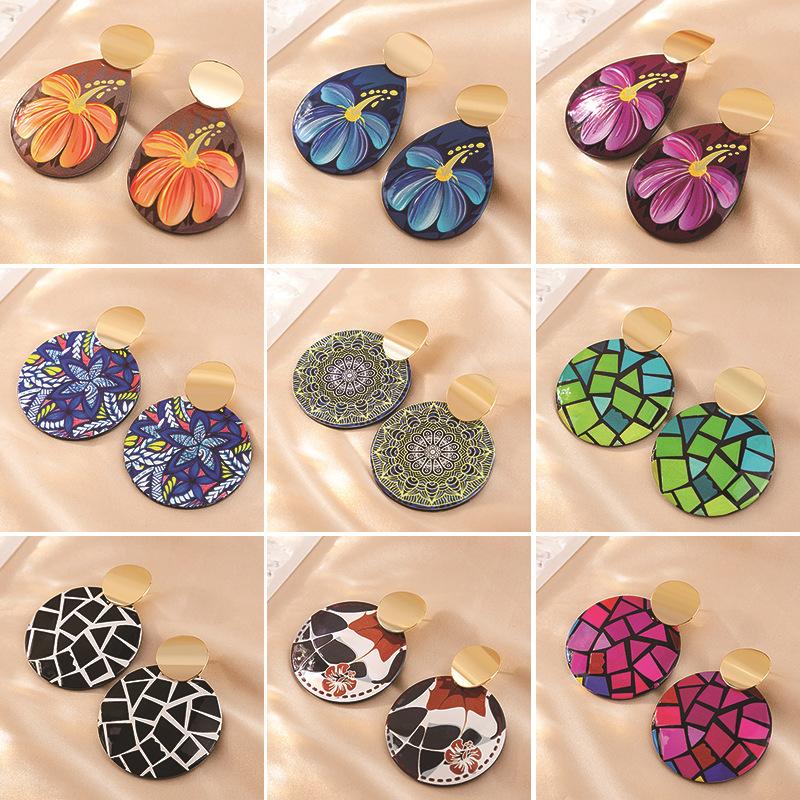 Pendientes acrílicos con diseño de grafiti floral y aguja plateada, con diseño geométrico europeo y americano, redondos, bohemios y retro.