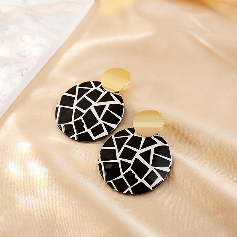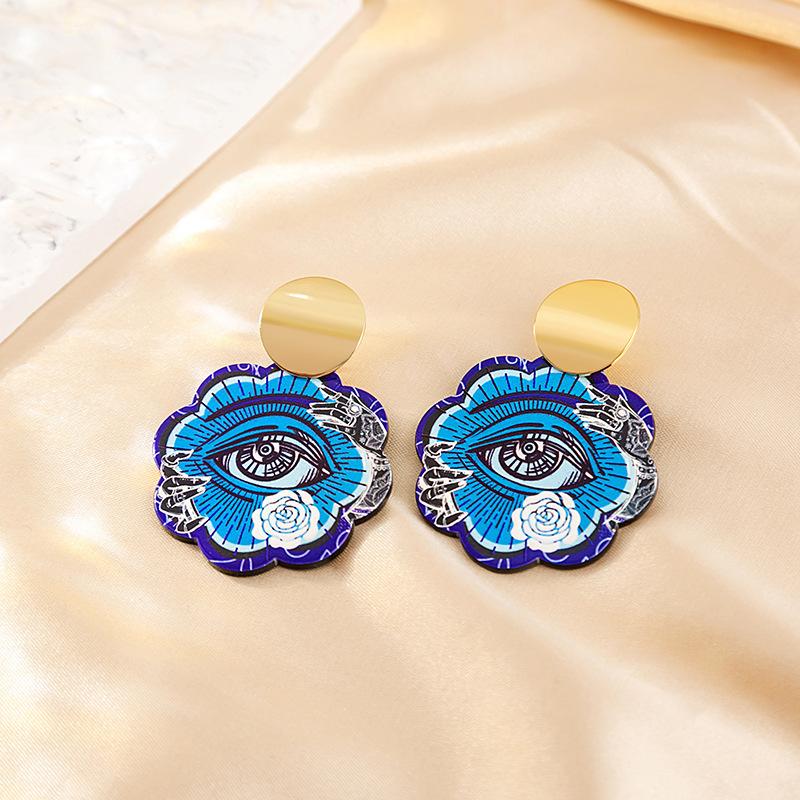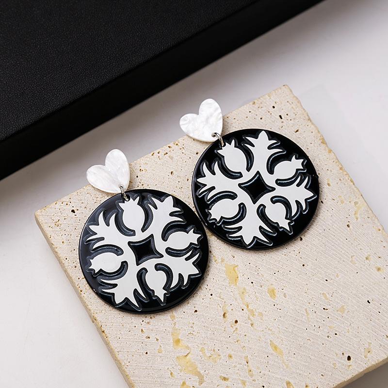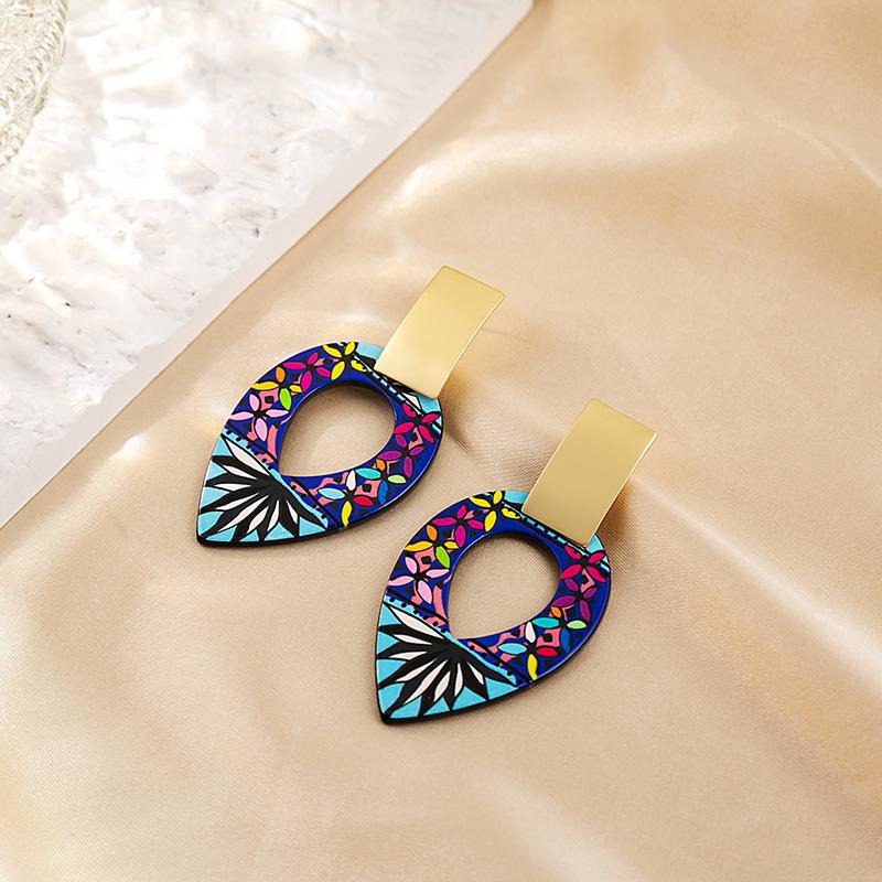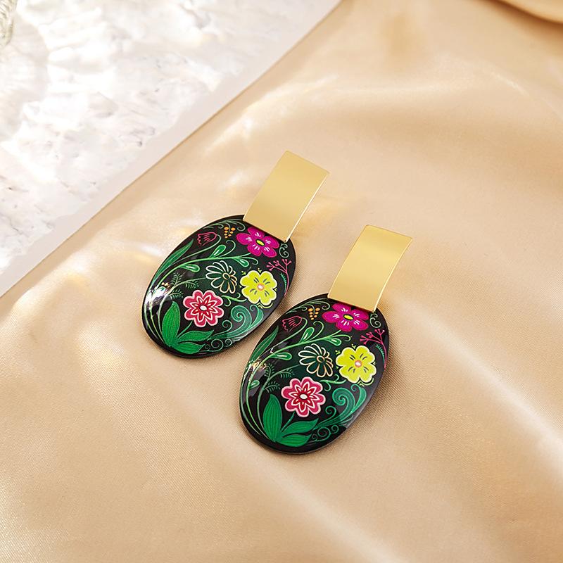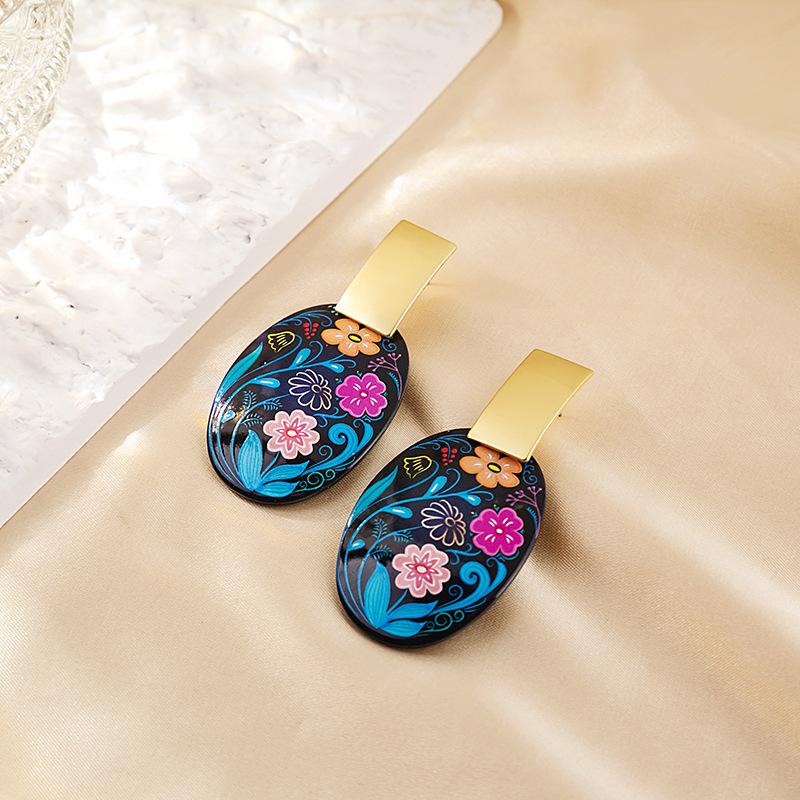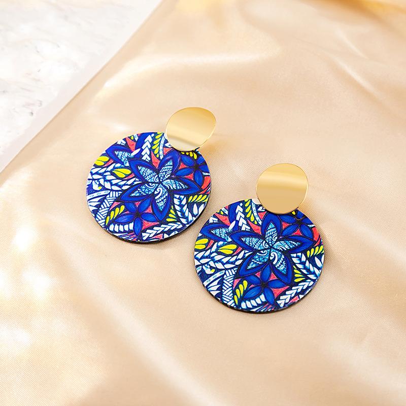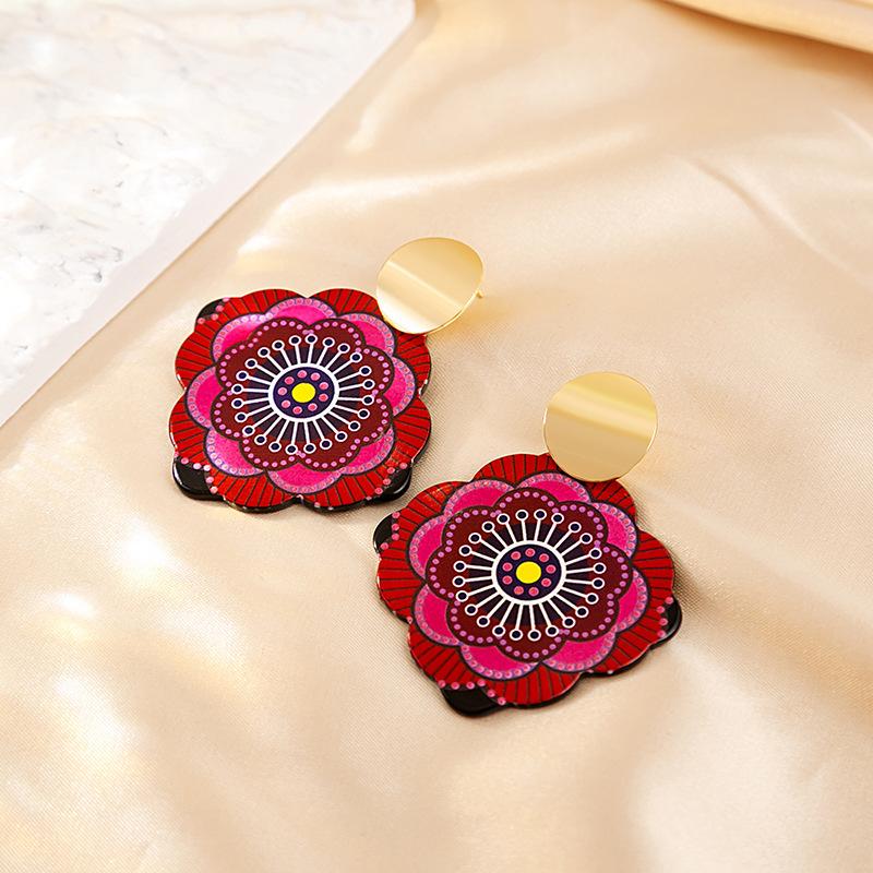 Pendientes acrílicos con diseño de grafiti floral y aguja plateada, con diseño geométrico europeo y americano, redondos, bohemios y retro.