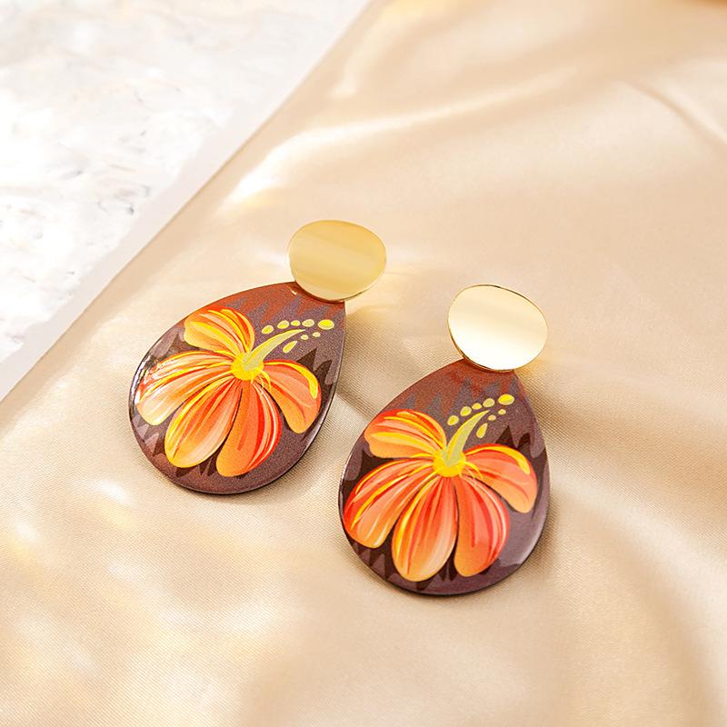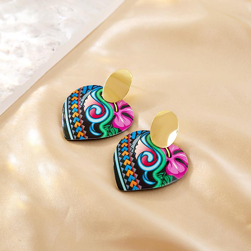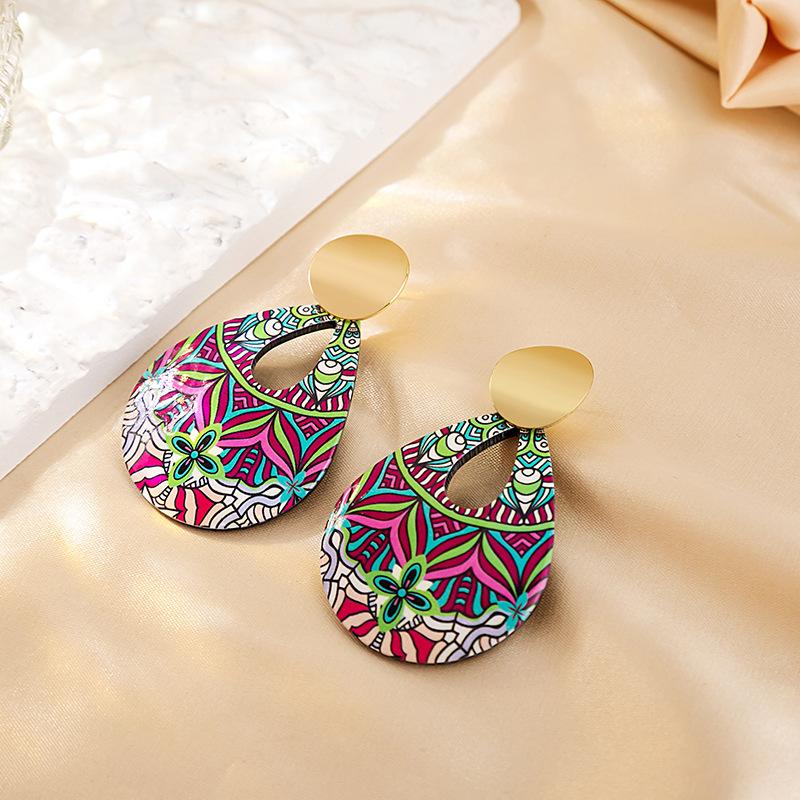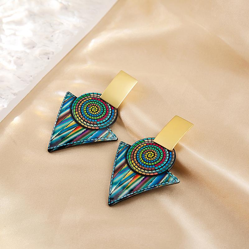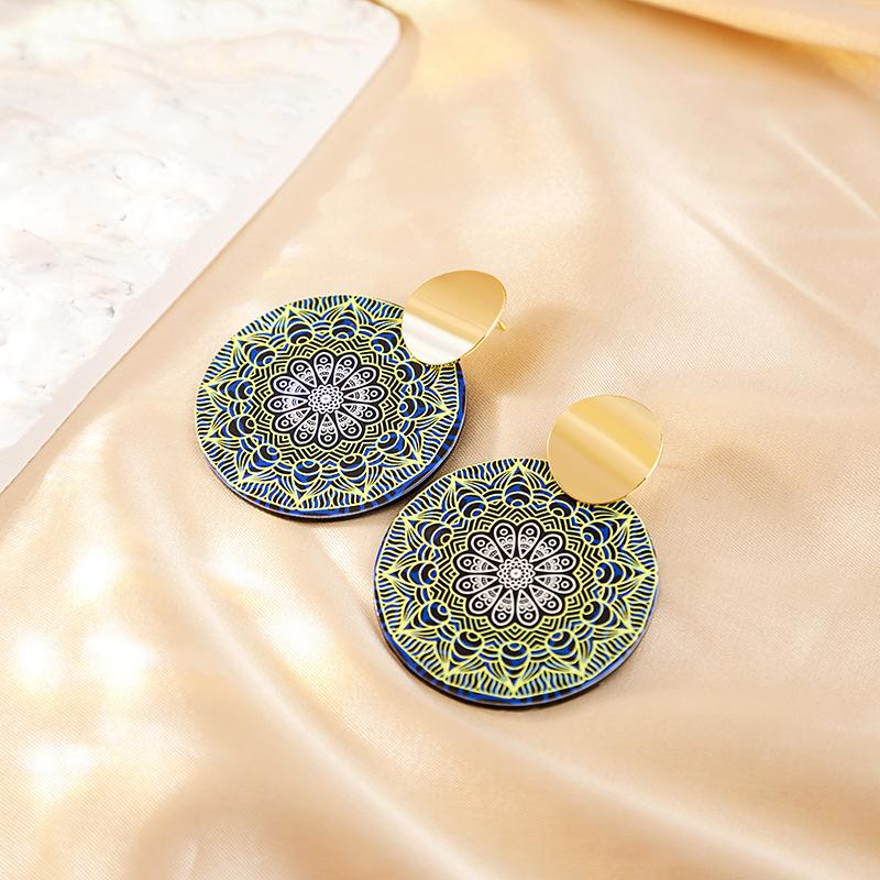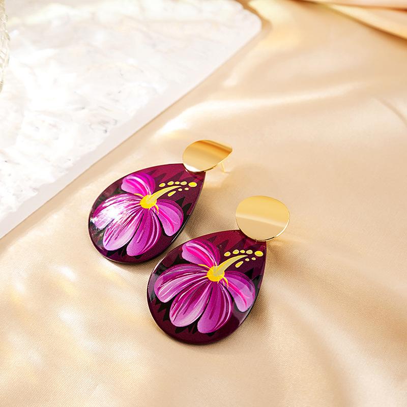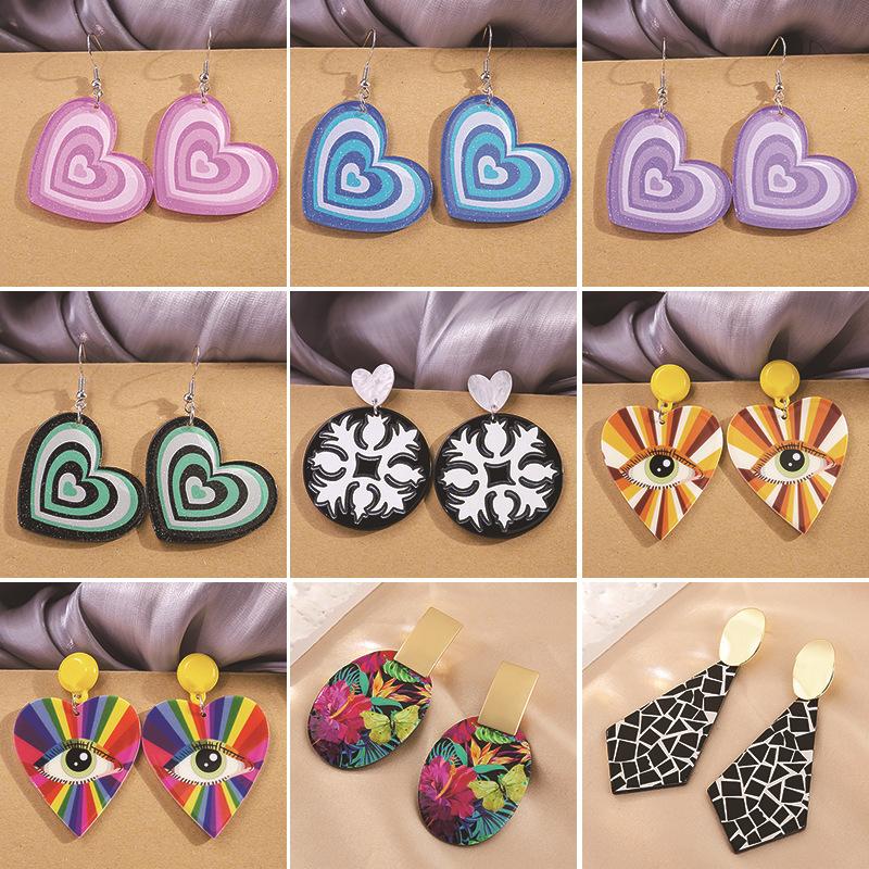 Pendientes acrílicos con diseño de grafiti floral y aguja plateada, con diseño geométrico europeo y americano, redondos, bohemios y retro.