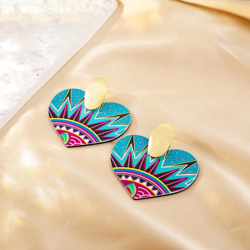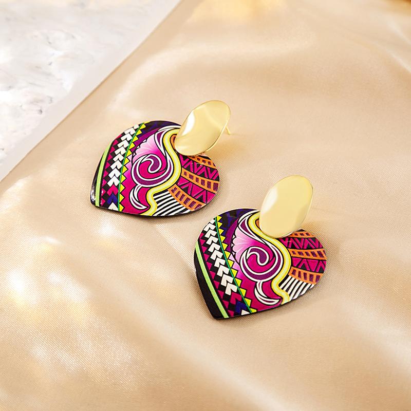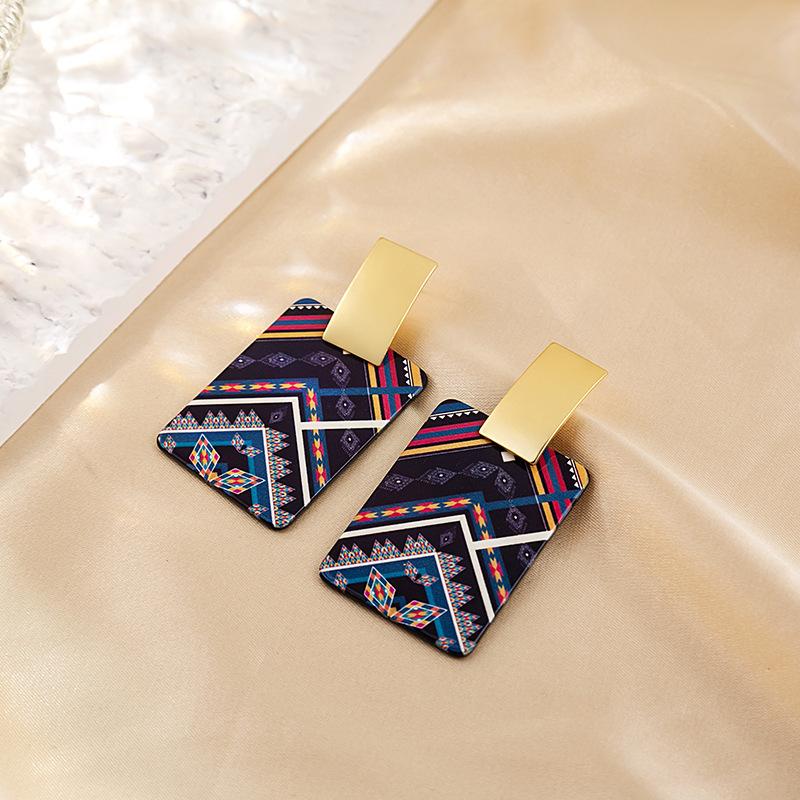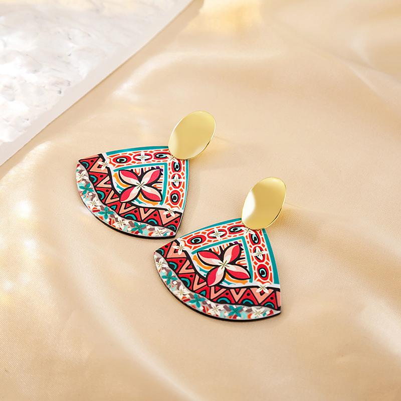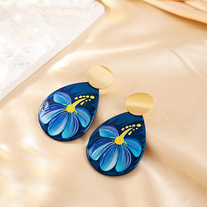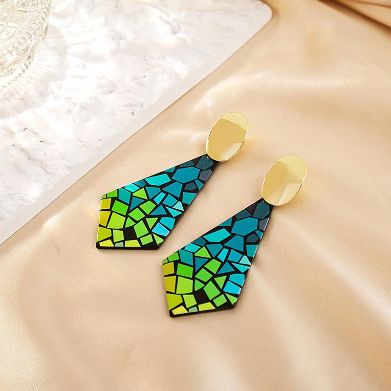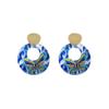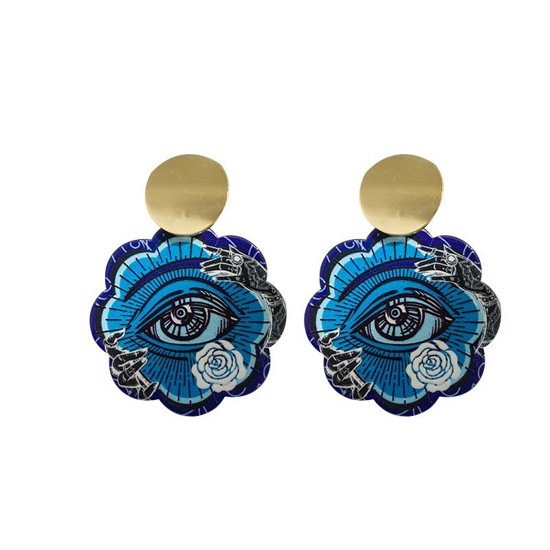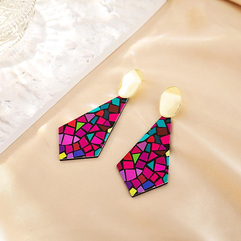 Pendientes acrílicos con diseño de grafiti floral y aguja plateada, con diseño geométrico europeo y americano, redondos, bohemios y retro.