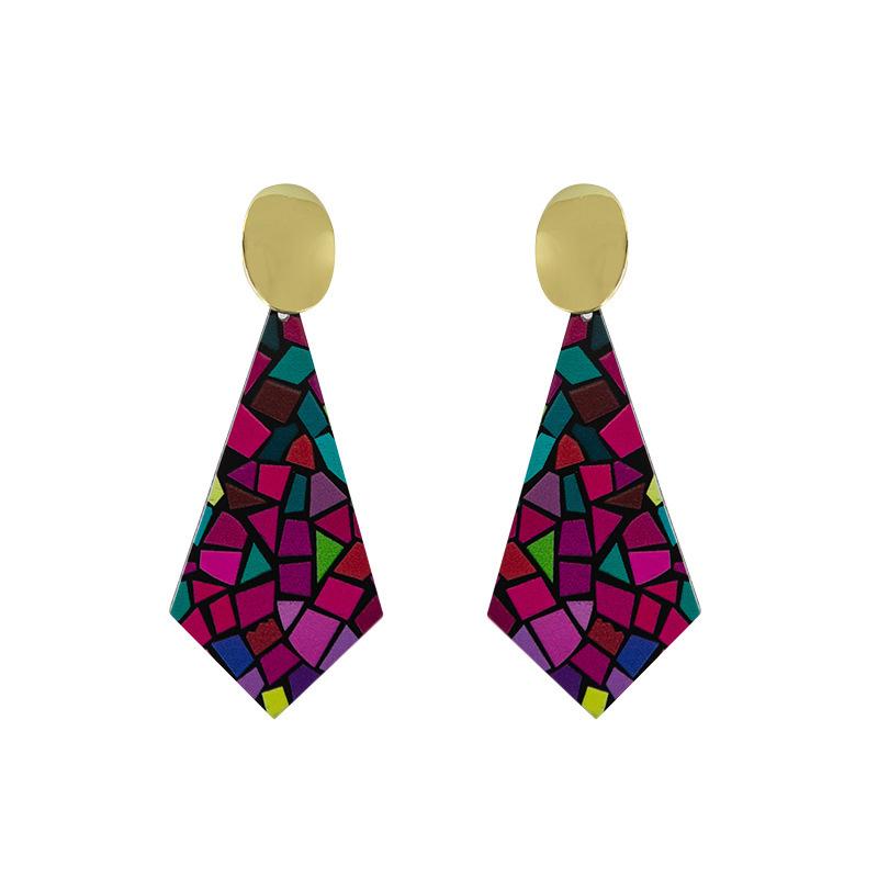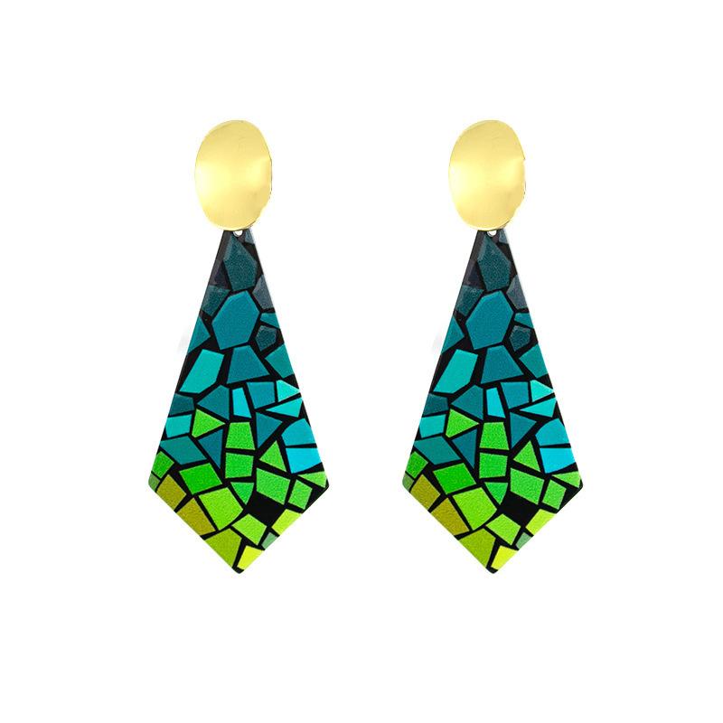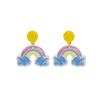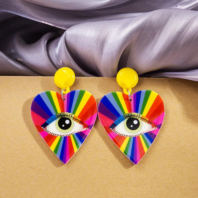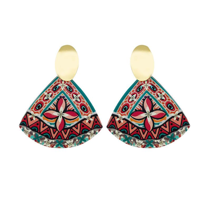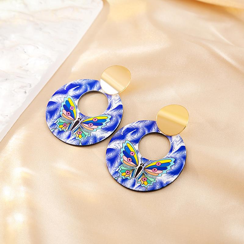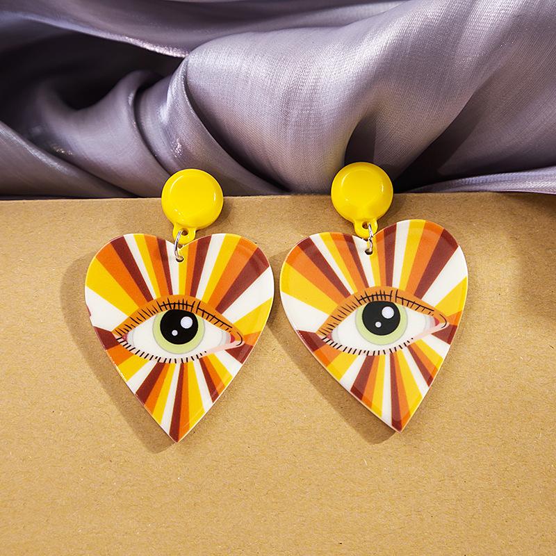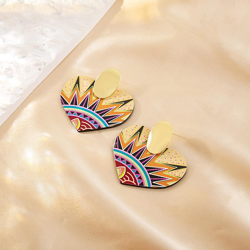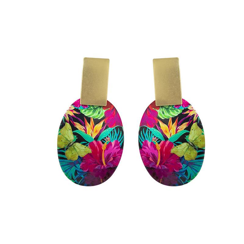 Pendientes acrílicos con diseño de grafiti floral y aguja plateada, con diseño geométrico europeo y americano, redondos, bohemios y retro.