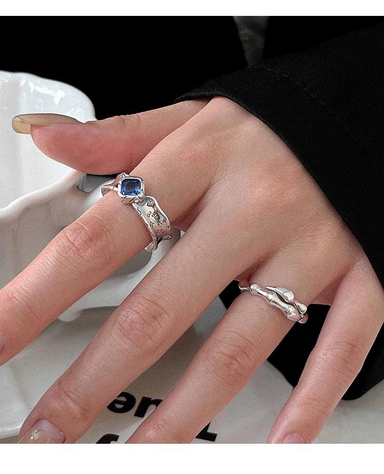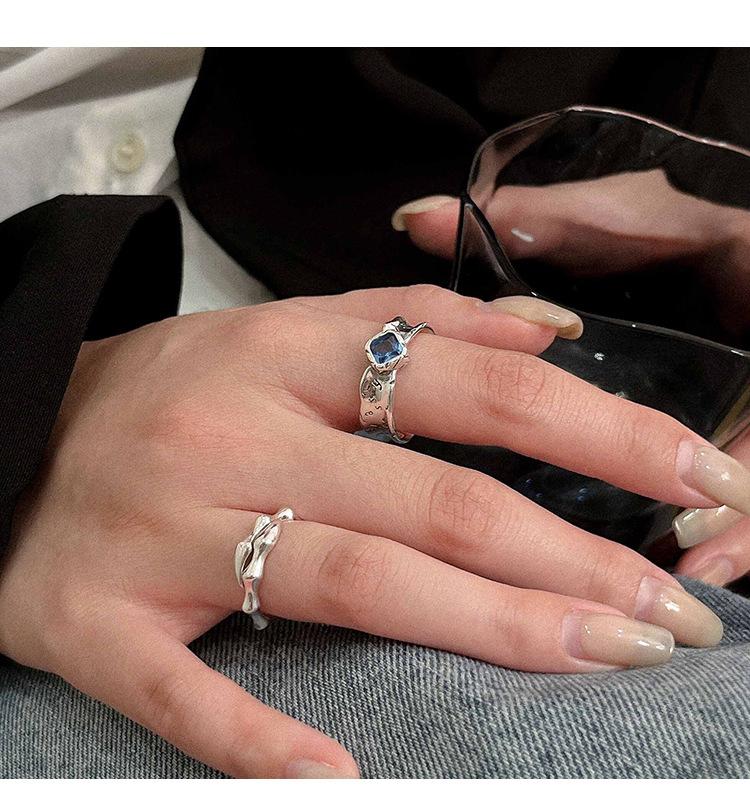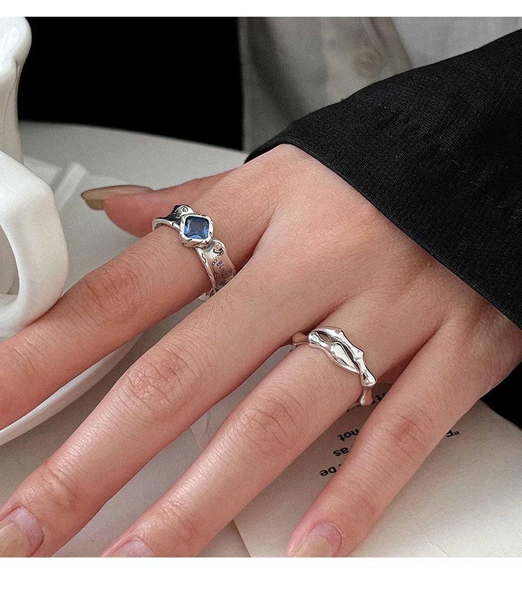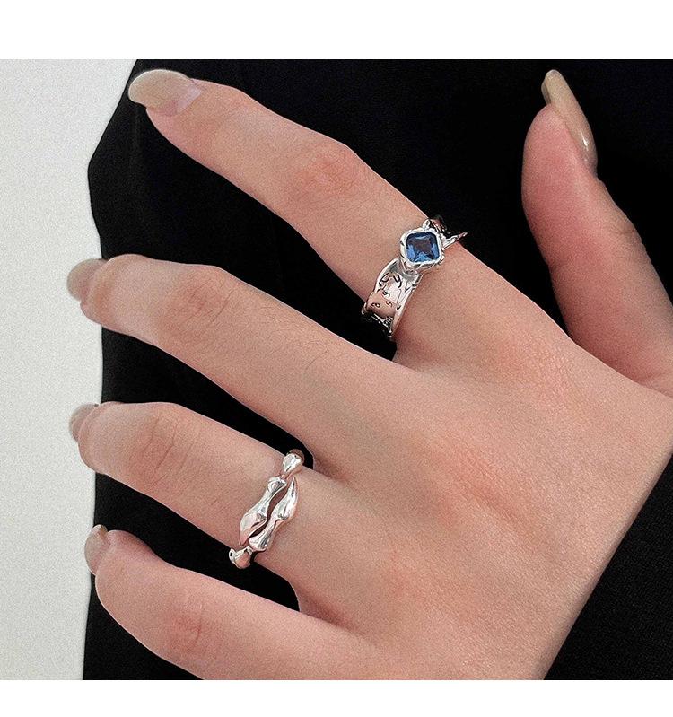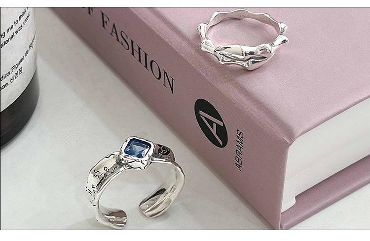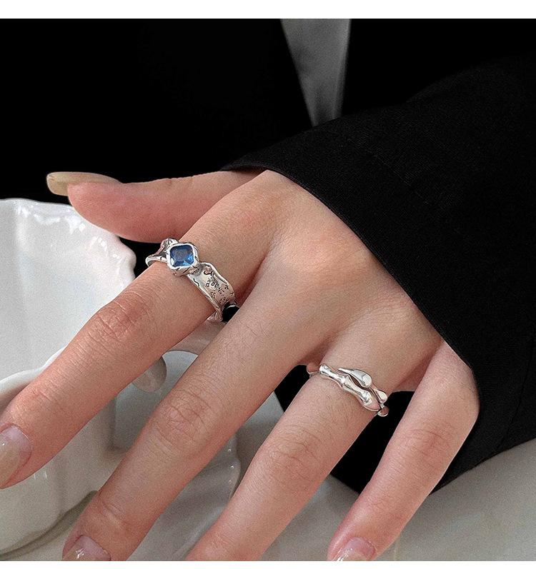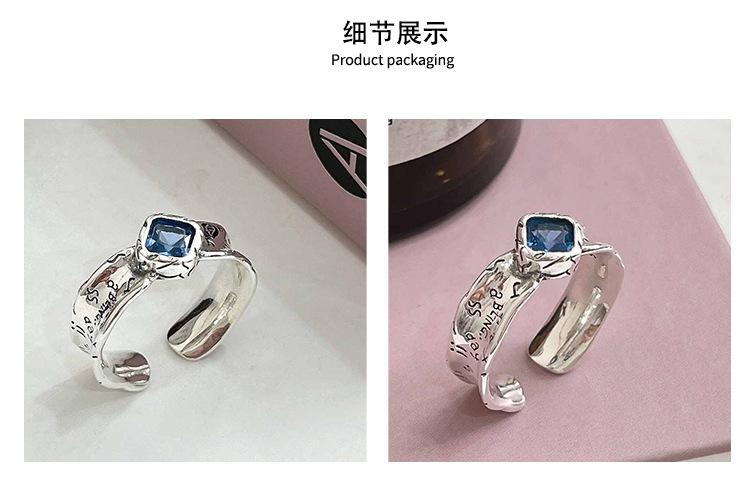 Anillo abierto de plata de ley s925 con circonita azul de Ruitai para mujer, diseño de nicho retro de Corea del Sur, estilo frío avanzado