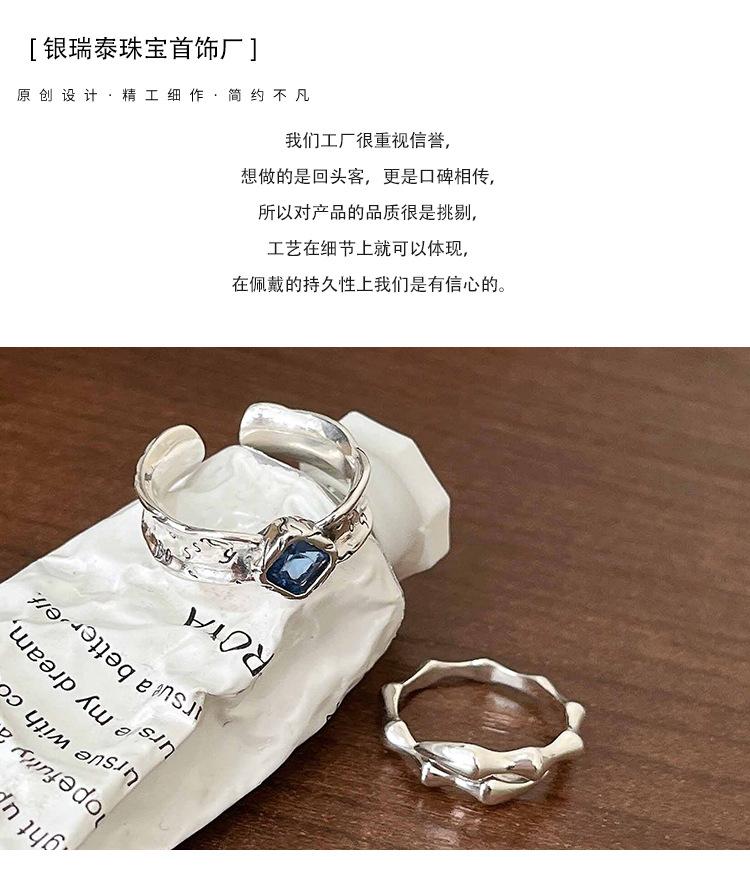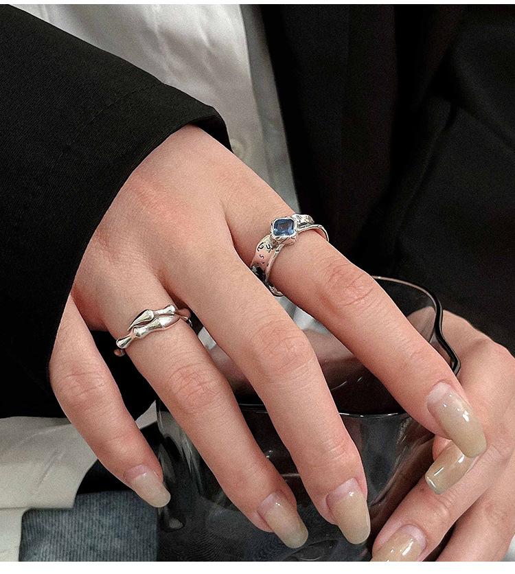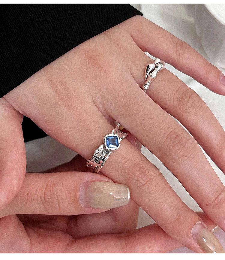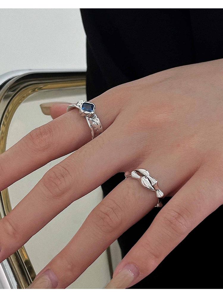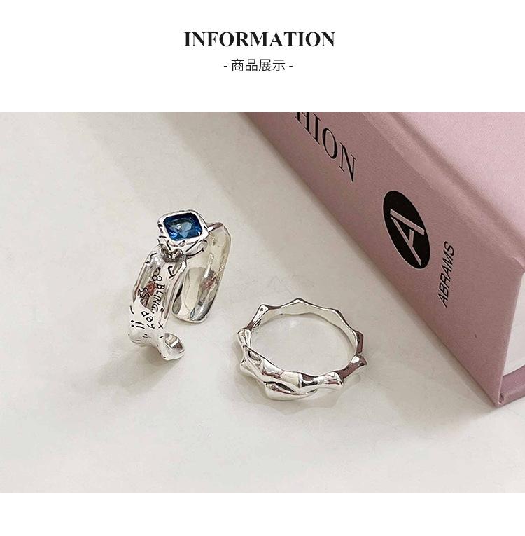 Anillo abierto de plata de ley s925 con circonita azul de Ruitai para mujer, diseño de nicho retro de Corea del Sur, estilo frío avanzado