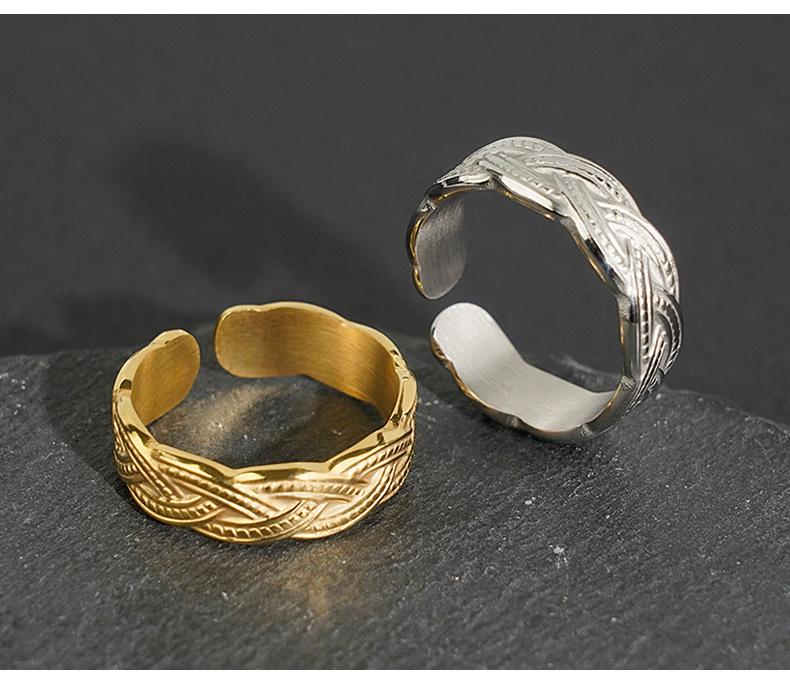 Anillo de acero inoxidable de nueva moda de Amazon, joyería para hombres y mujeres, anillo de acero de titanio en espiral tejido, venta directa al contado