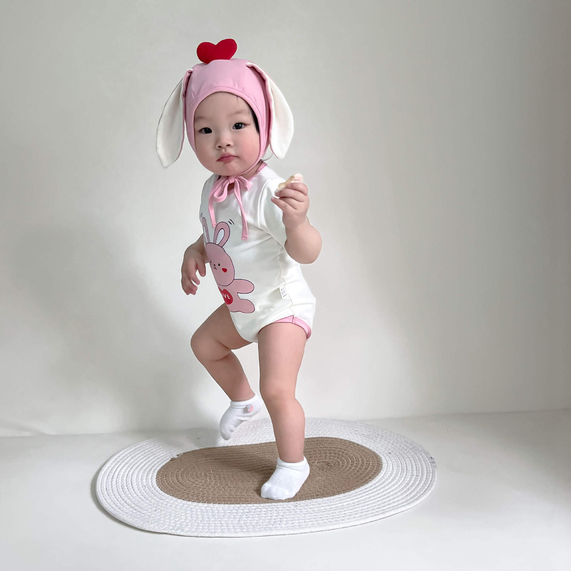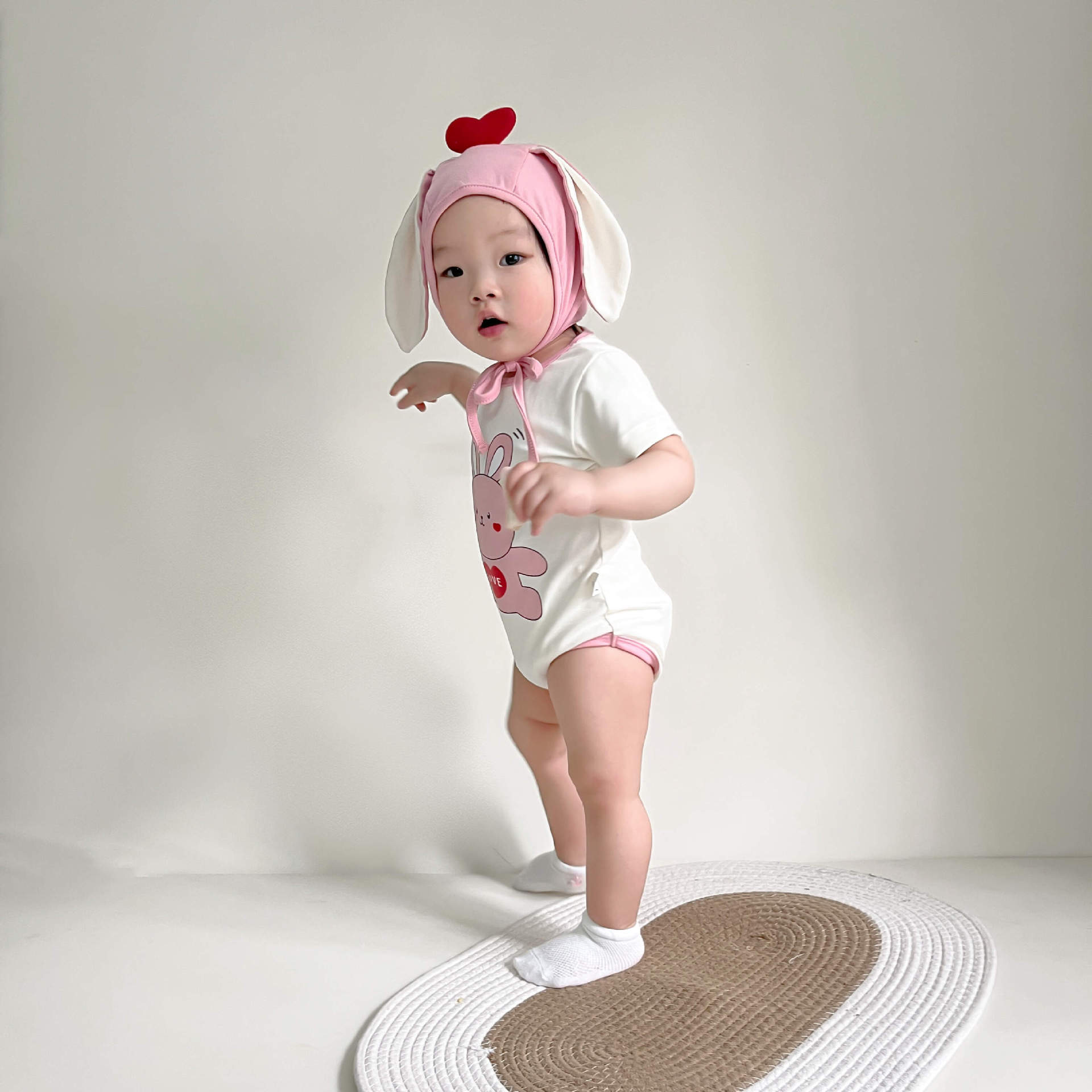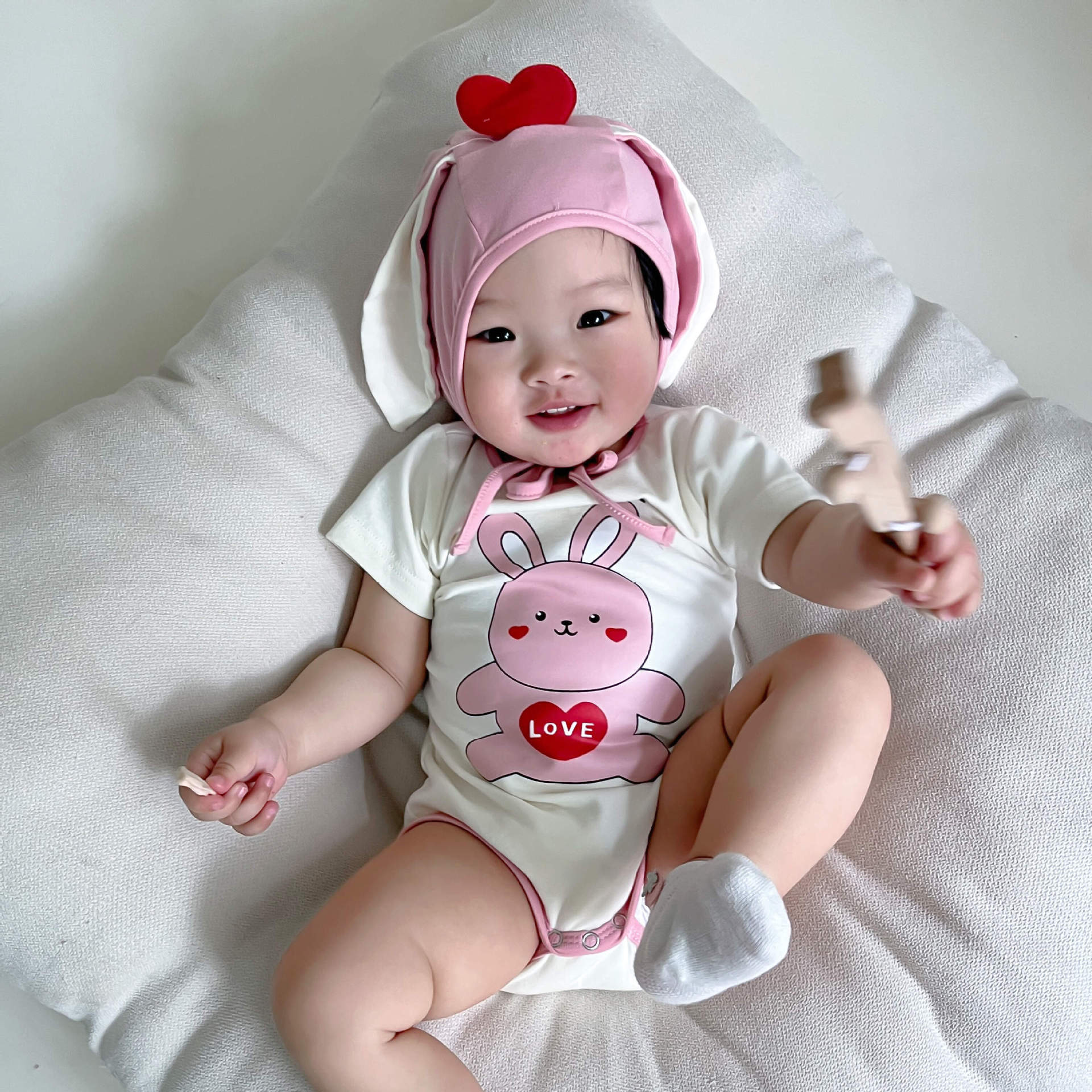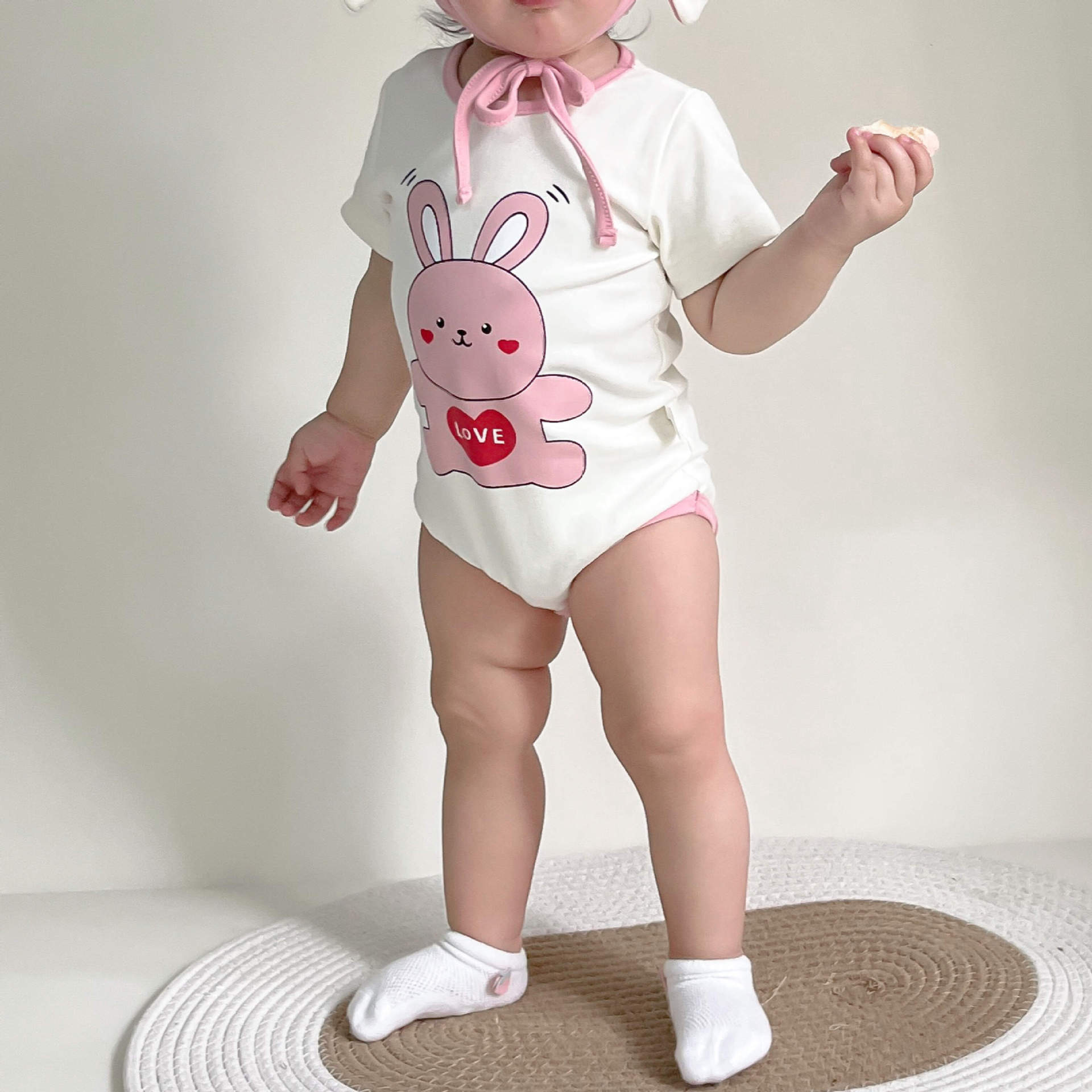 25 Verano Estilo Coreano Niños Mono Estilo Ins Estampado Corazón Conejito Harem Bebé Manga Corta Ropa de Bebé