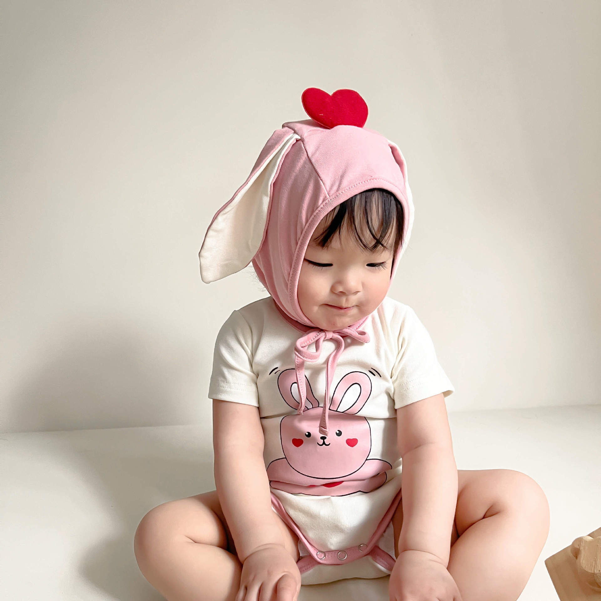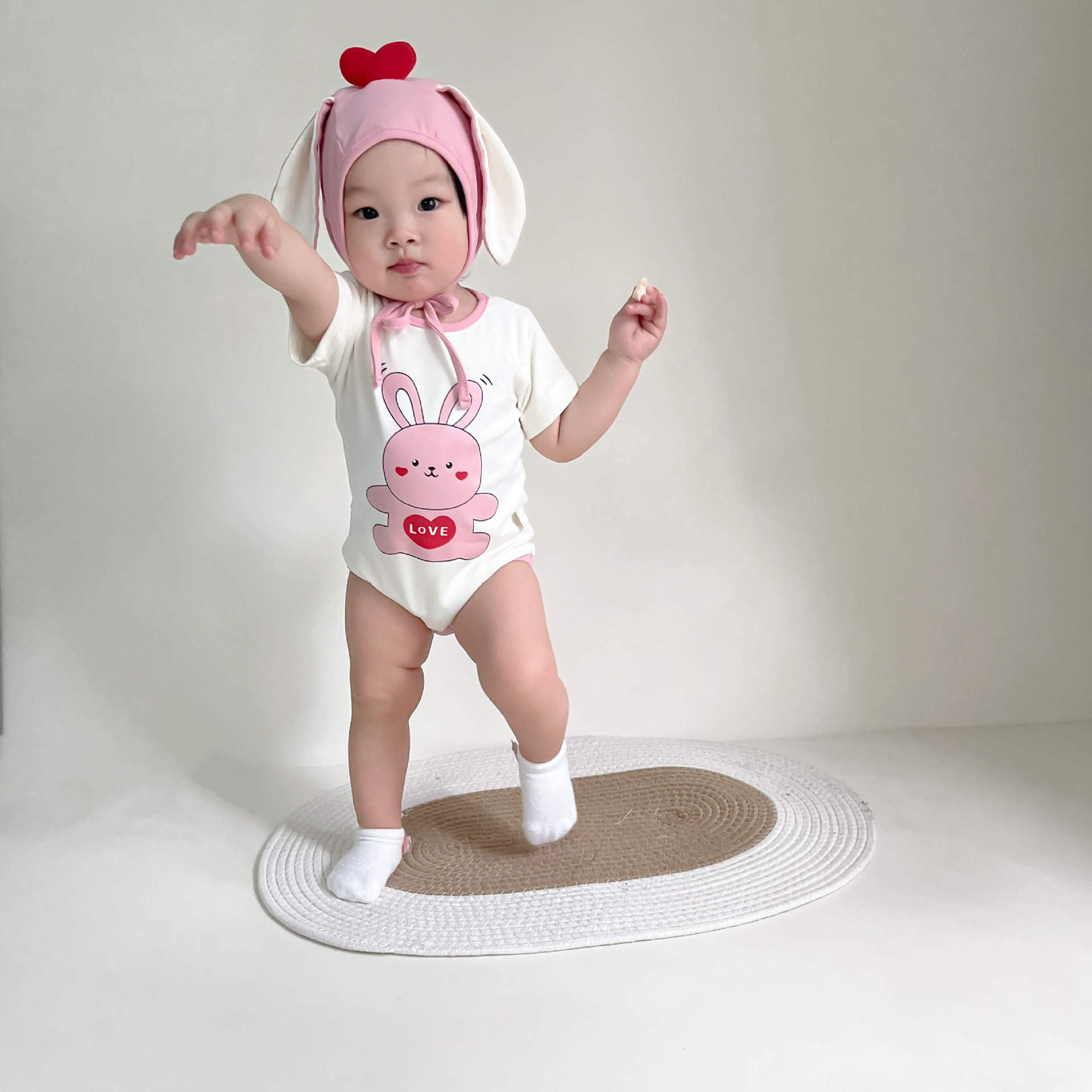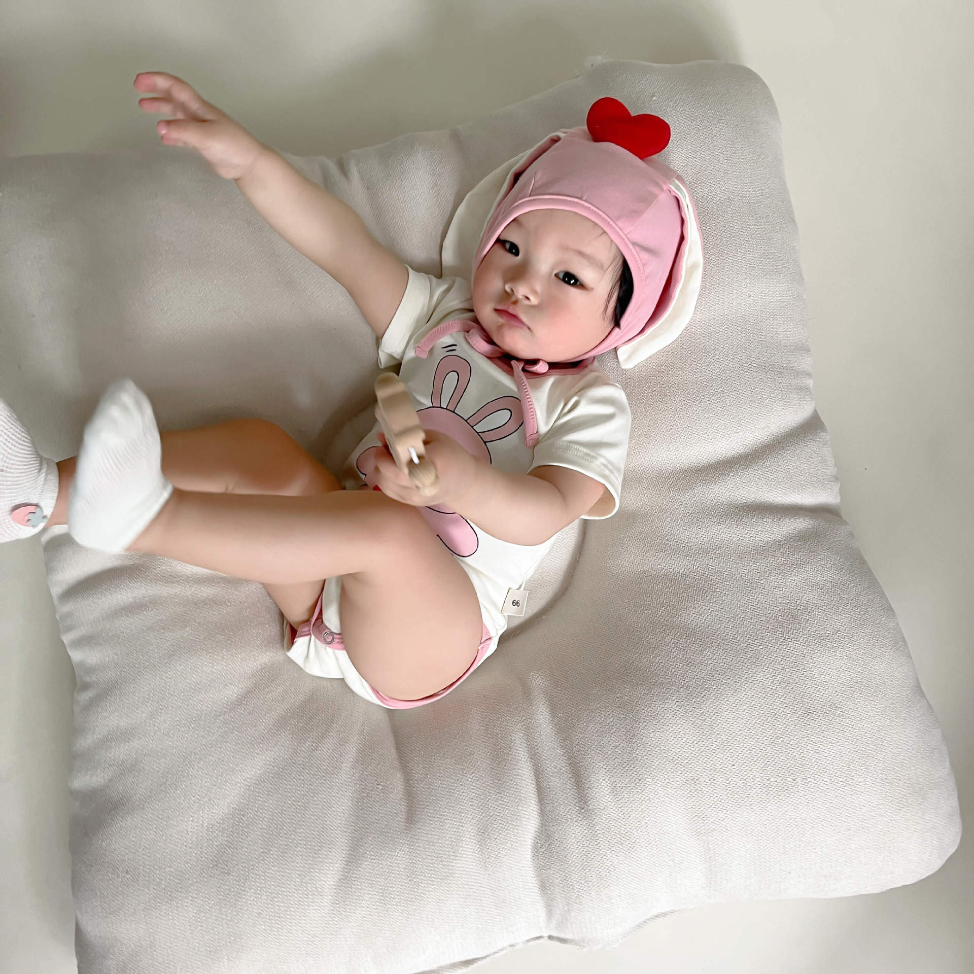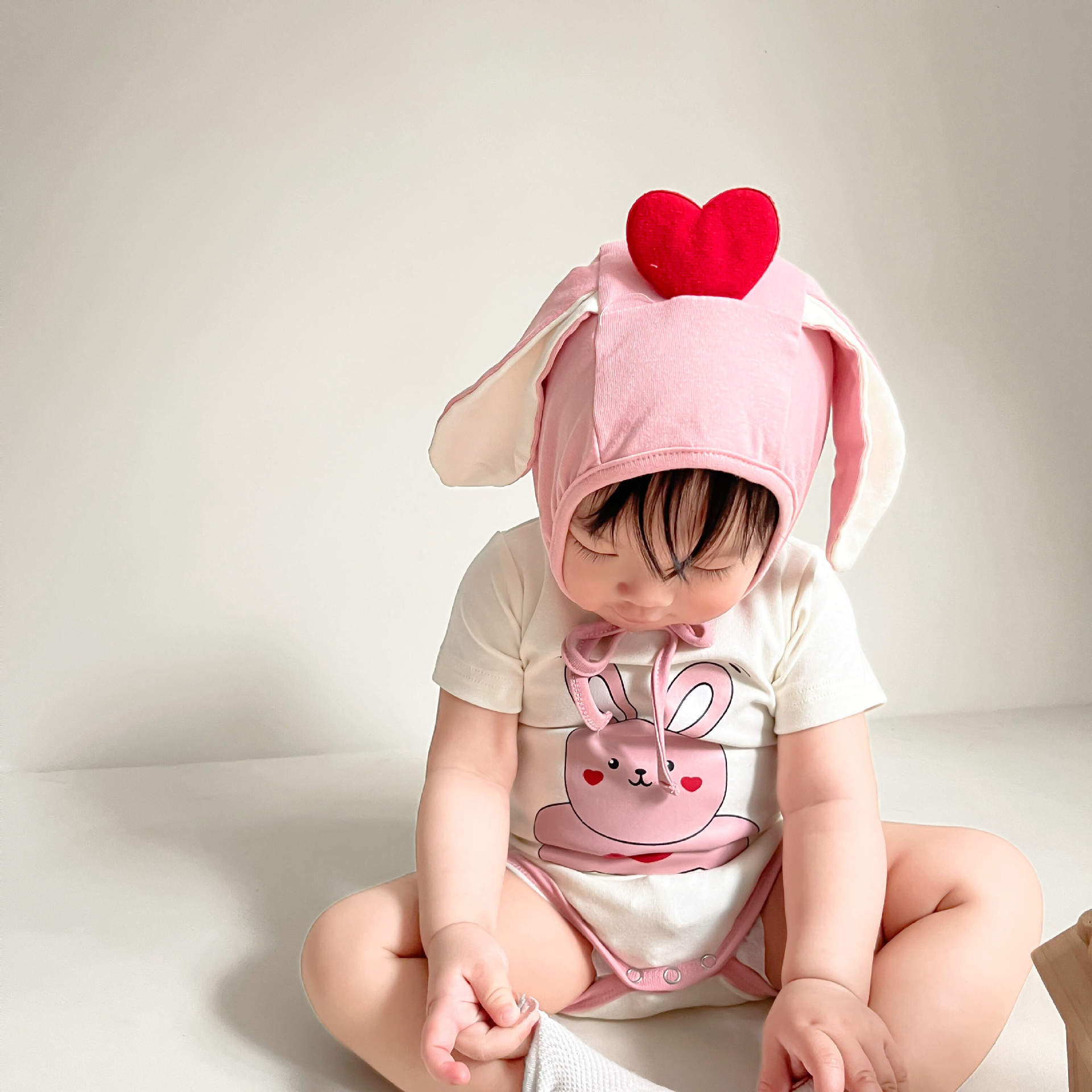 25 Verano Estilo Coreano Niños Mono Estilo Ins Estampado Corazón Conejito Harem Bebé Manga Corta Ropa de Bebé