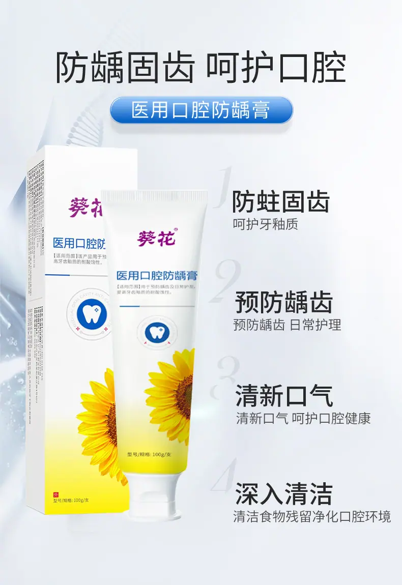Pasta de Dientes Anticaries Oral Sunflower Medical con Flúor para Adultos Caries Reparación del Esmalte Categoría II Venta al Mayoreo Anti-Polilla