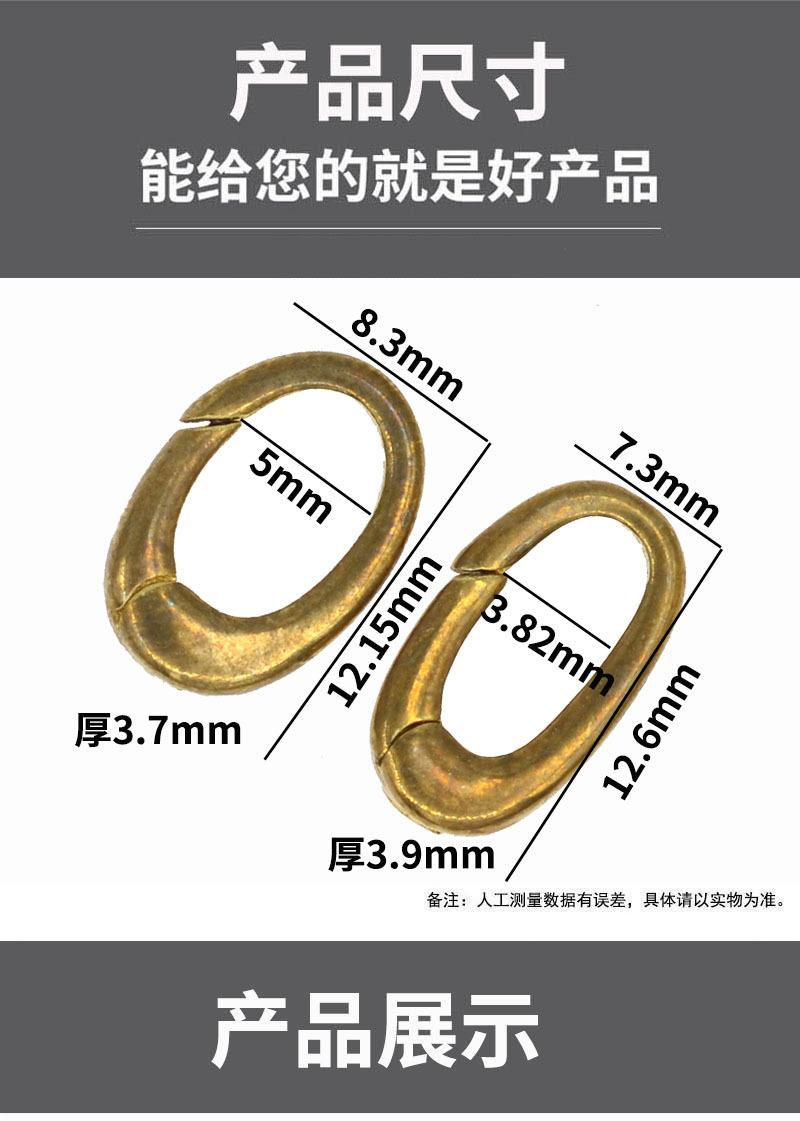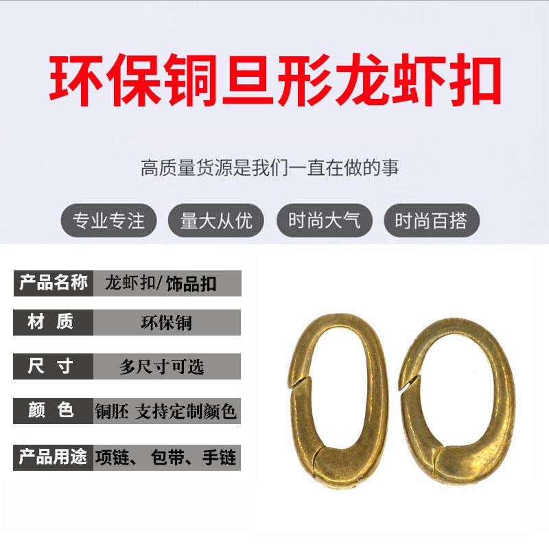Hebilla de diamante de cobre puro, hebilla de langosta de latón, hebilla de resorte de equipaje ovalada, accesorios básicos hechos a mano, conector de collar de pulsera