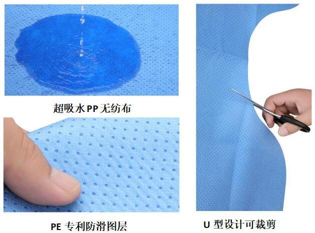 Material: Tela no tejida de PP + revestimiento antideslizante, Tela no tejida de PP + revestimiento antideslizante, Tela no tejida spunlace + revestimiento antideslizante, etc.