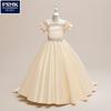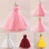 Vestido de novia largo para niña de las flores, vestido de malla con lazo, vestido de fiesta infantil con piano, vestido de princesa