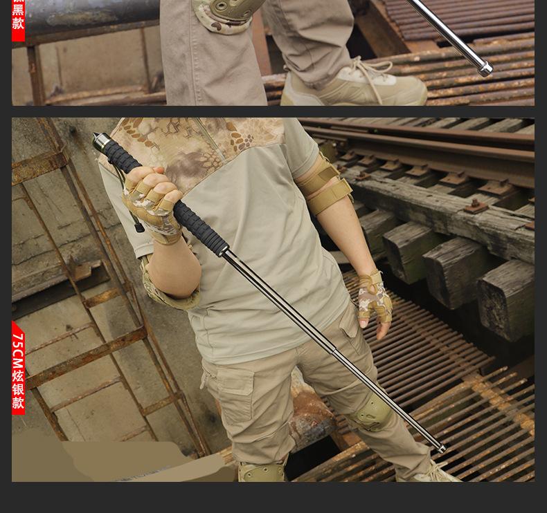 Bastón oscilante sólido alargado, legal, para montar en vehículo, arma de autodefensa, bastón telescópico de tres secciones para golpear a un perro, suministros de contracción de autodefensa, anti-lobo