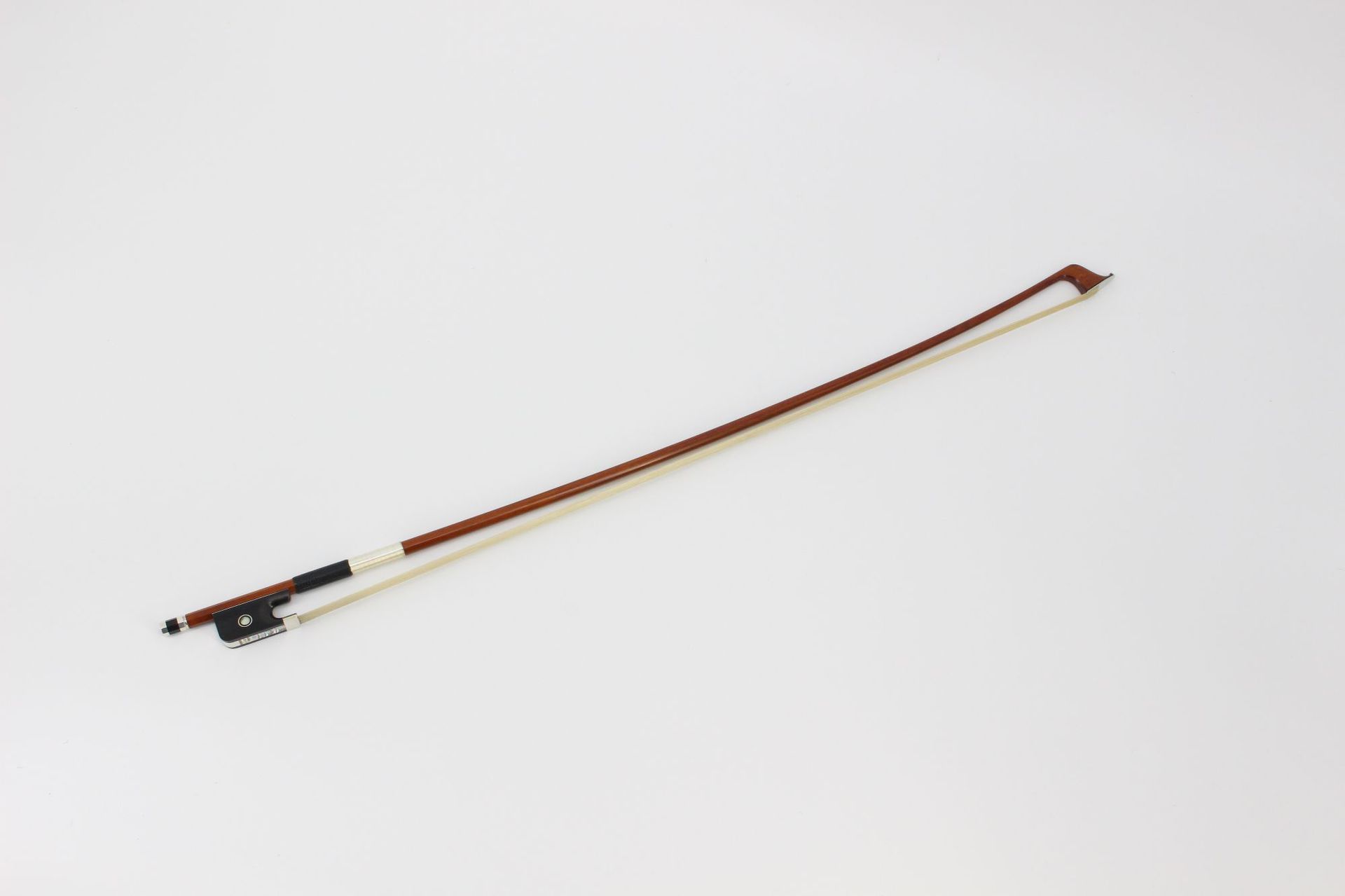 Base de cola de caballo de ébano, incrustación de concha de colores, accesorios de metal.