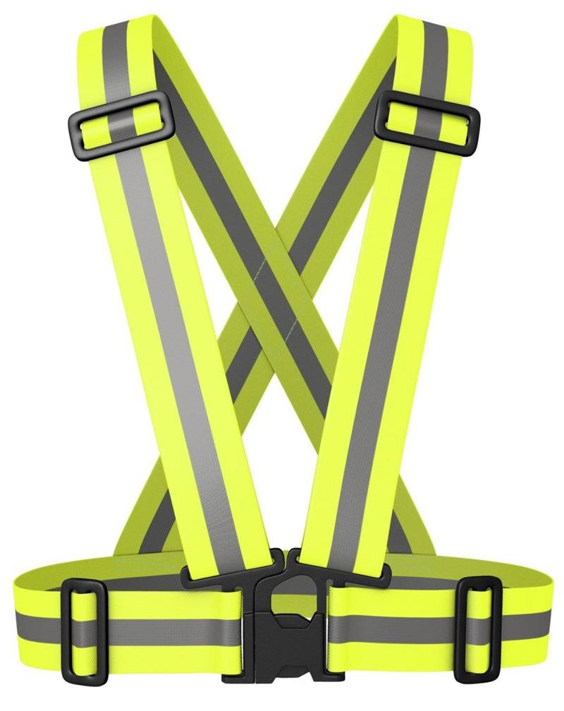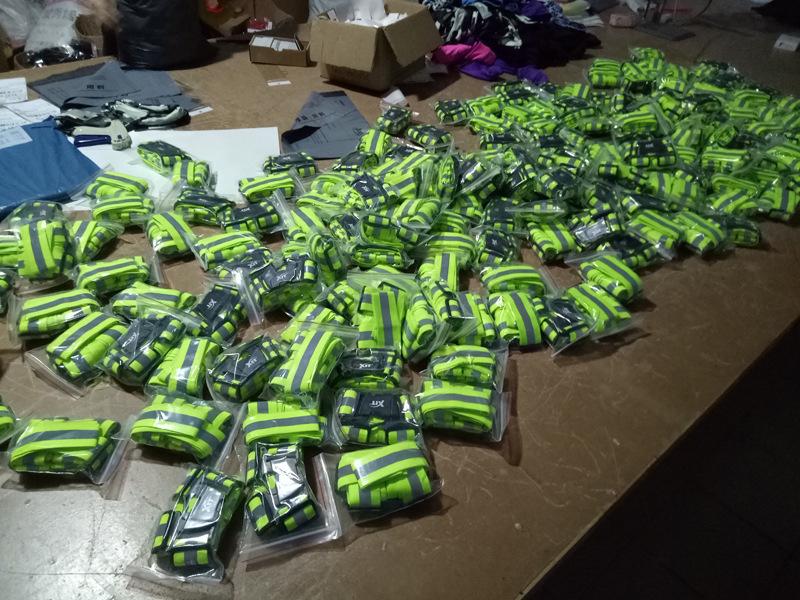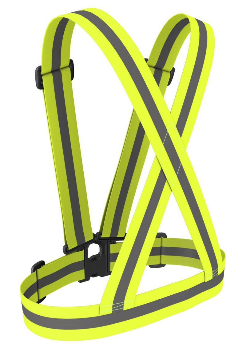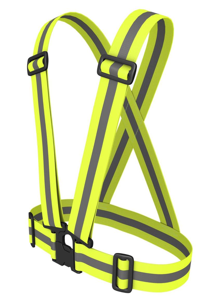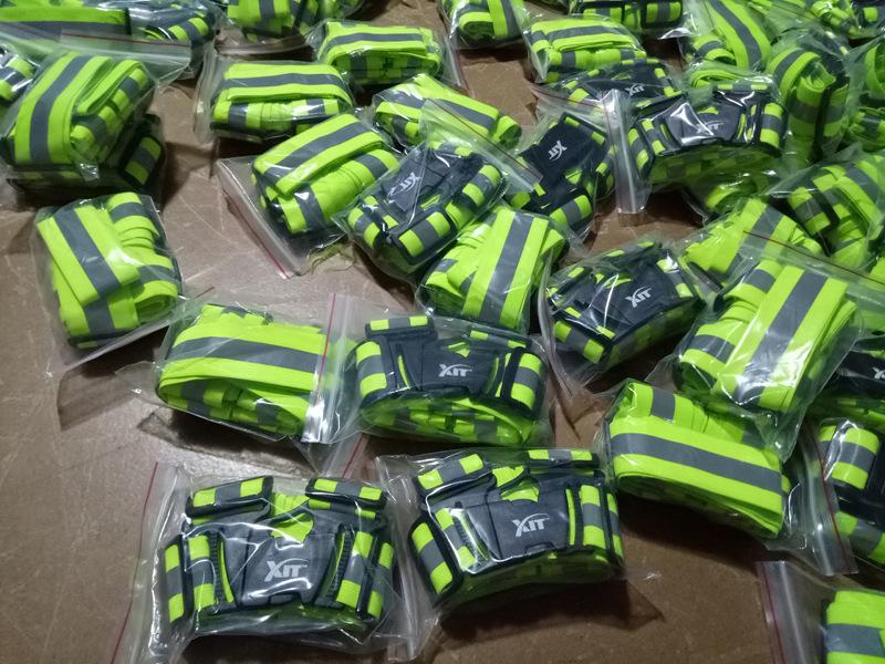 | Material: banda elástica de poliéster + película reflectante. | Embalaje: bolsa de embalaje para ropa |