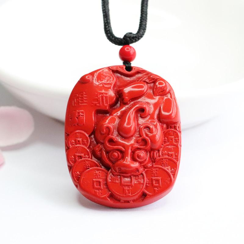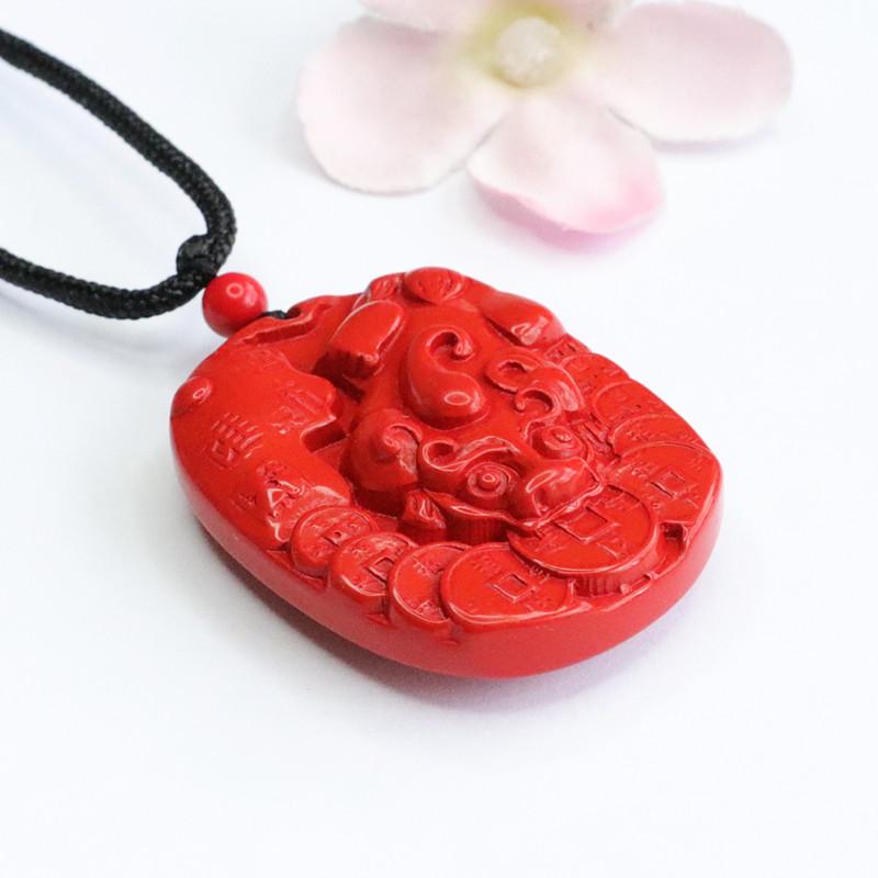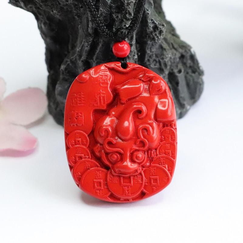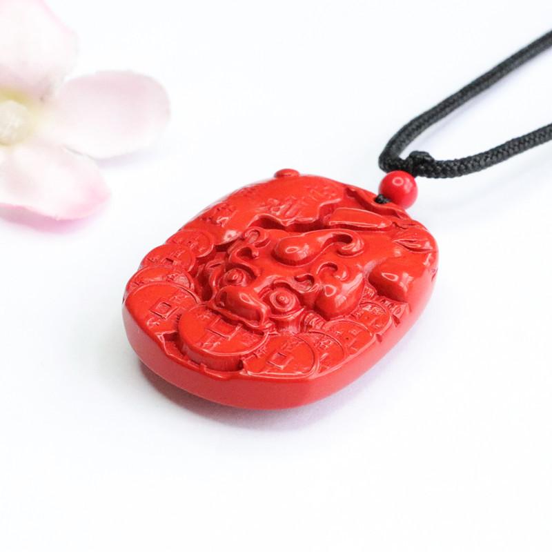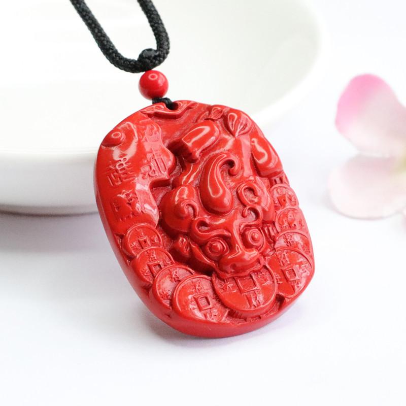 Colgante Pixiu de Jadeíta Cinabrio Oro de Arena Roja Bestia Tragadora Collar Accesorio Fábrica Venta al por Mayor S2051901