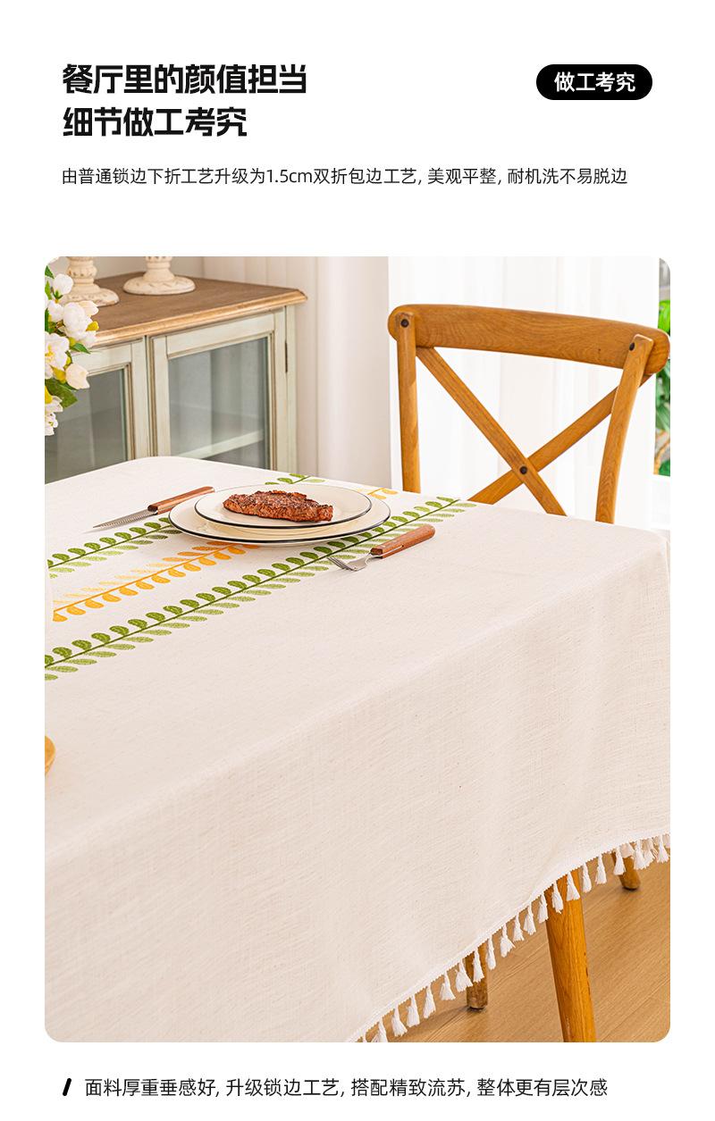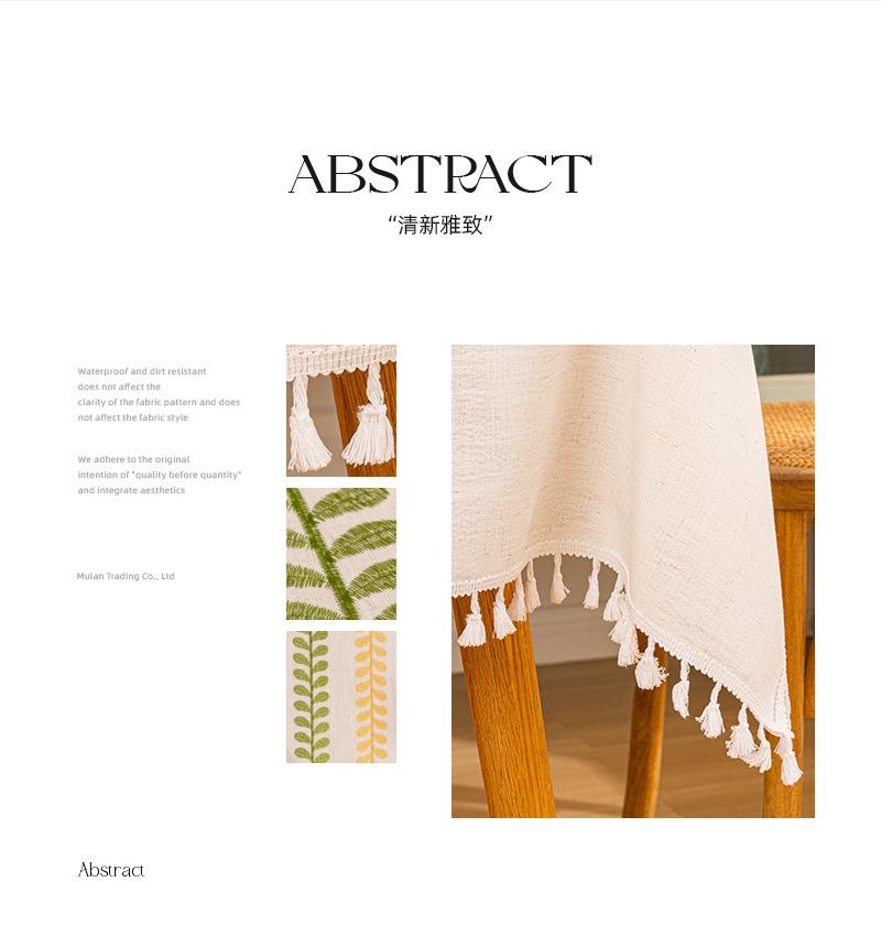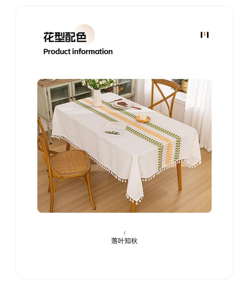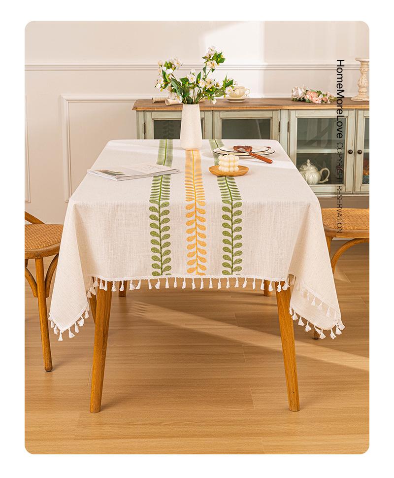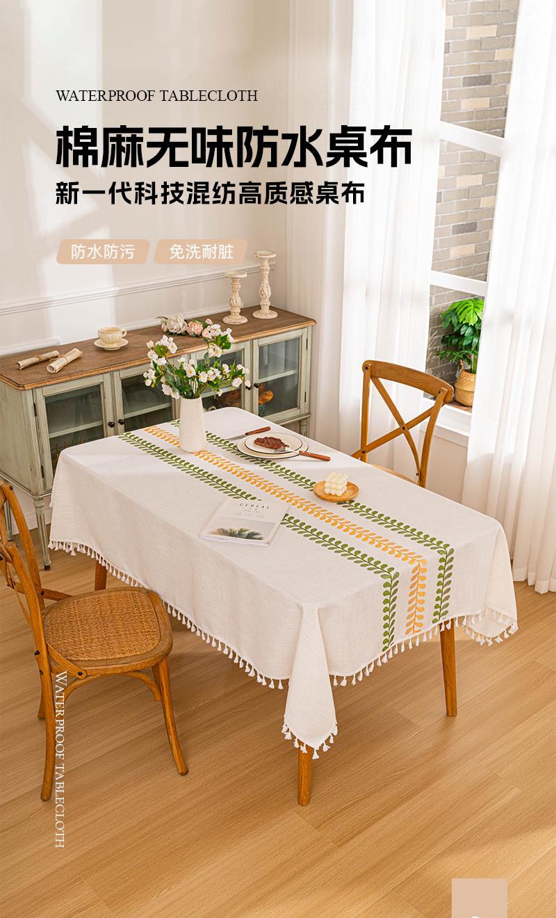 Mantel de algodón y lino bordado estilo Ins, ligero, impermeable, desechable, rectangular, de tela, para mesa de comedor, mesa de centro, mantel y servilleta.