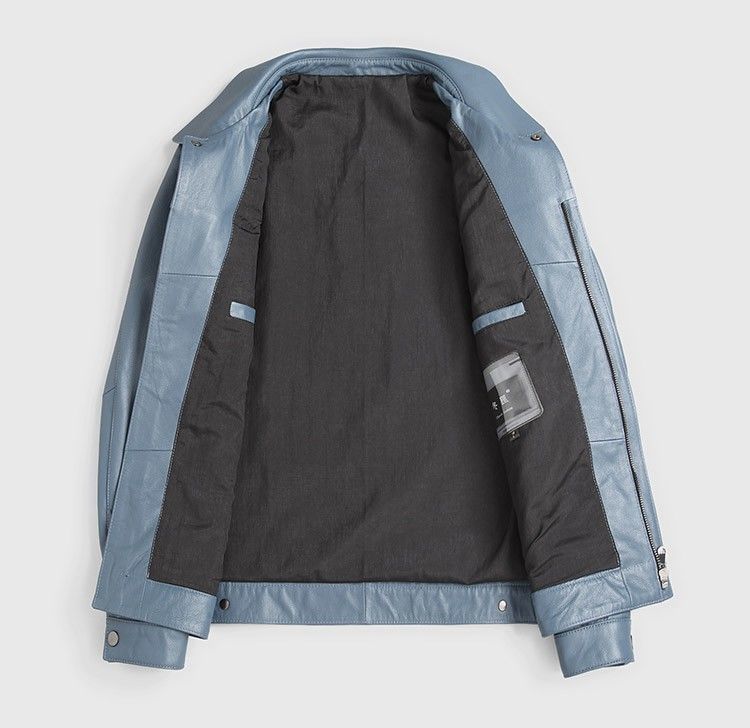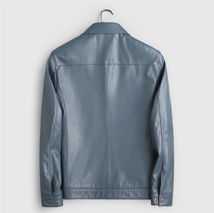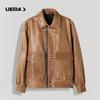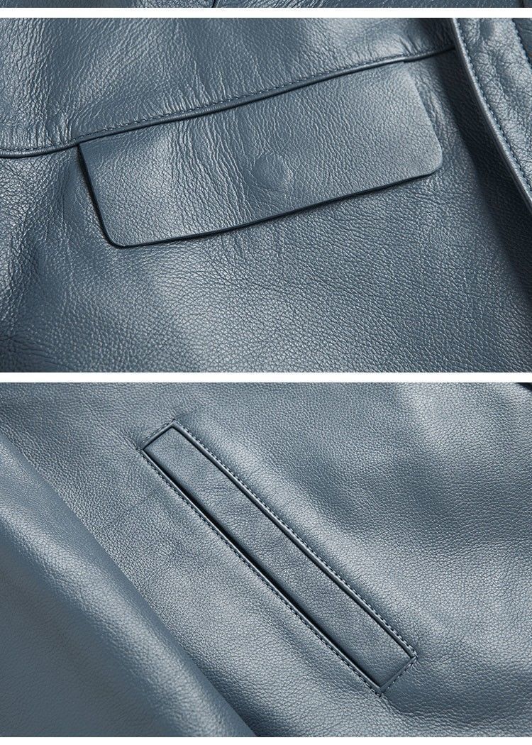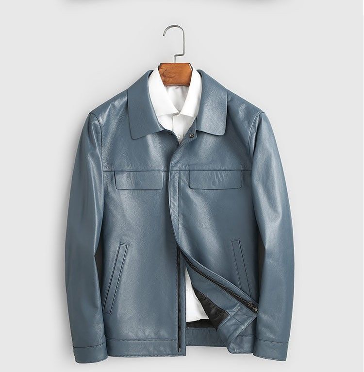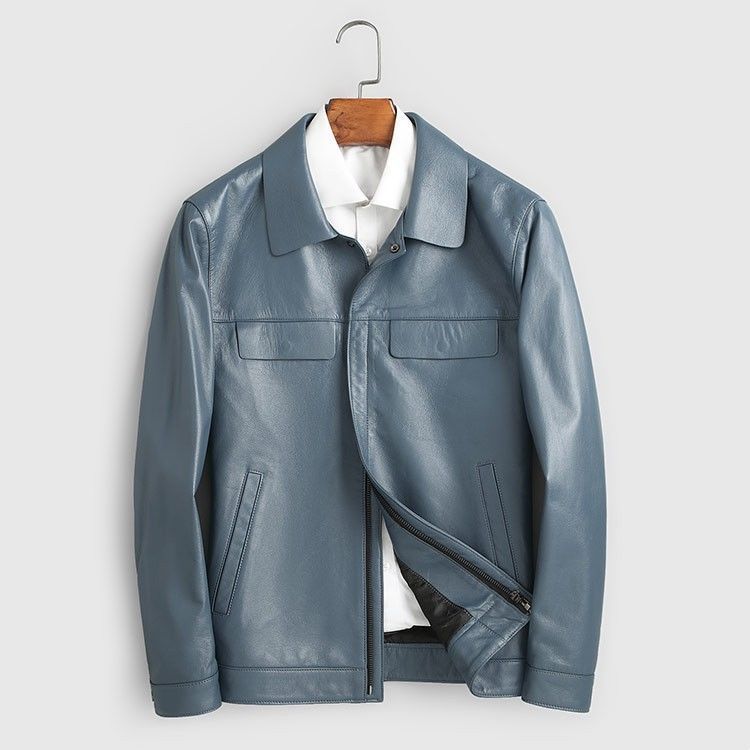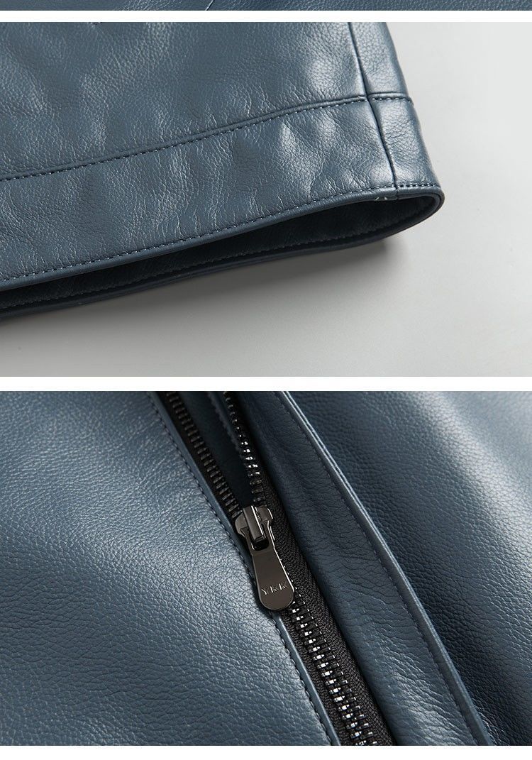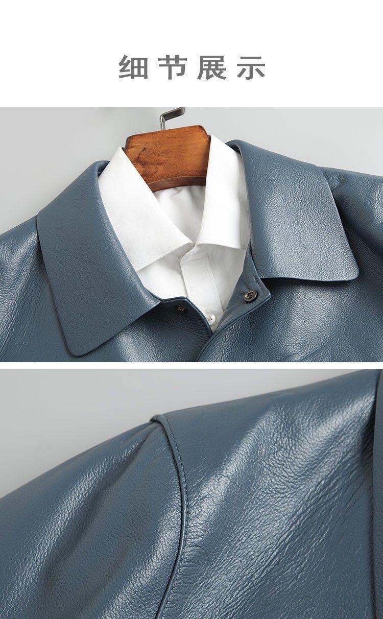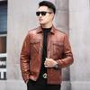 Chaqueta de Cuero Genuino Haining para Hombre de Primera Capa de Piel de Becerro Solapa Corta 2025 Otoño e Invierno Nueva Chaqueta de Cuero Chaqueta Delgada Trendy