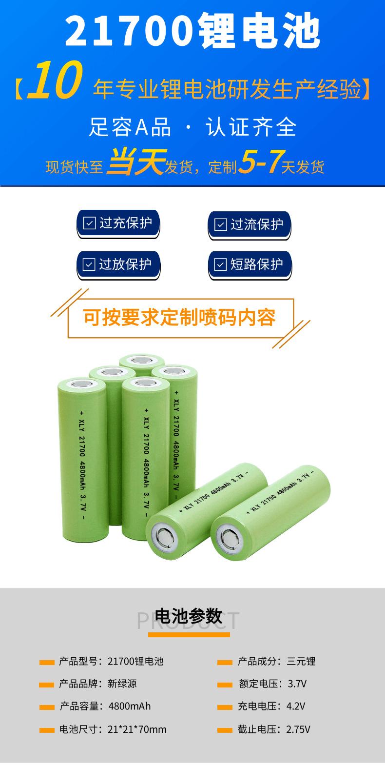 Batería de litio 21700 de 4800 mAh y 5000 mAh, de gran capacidad y tasa ternaria, 3,7 V.