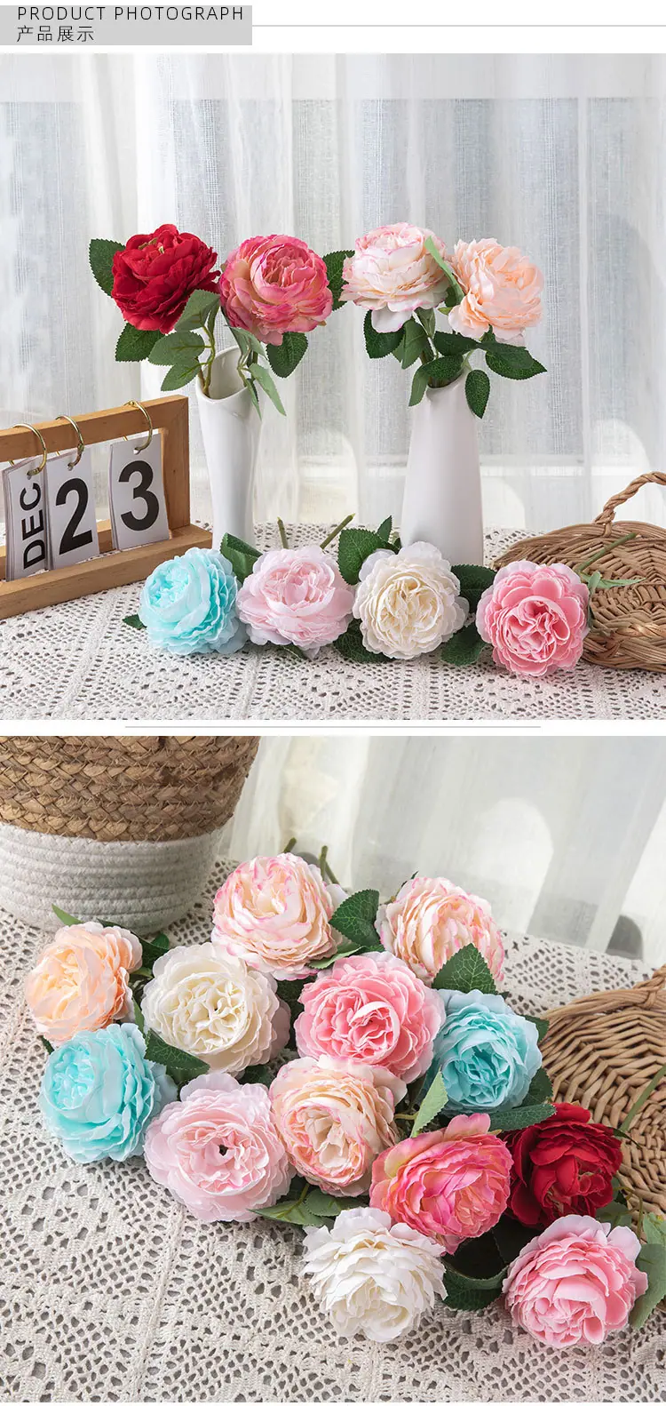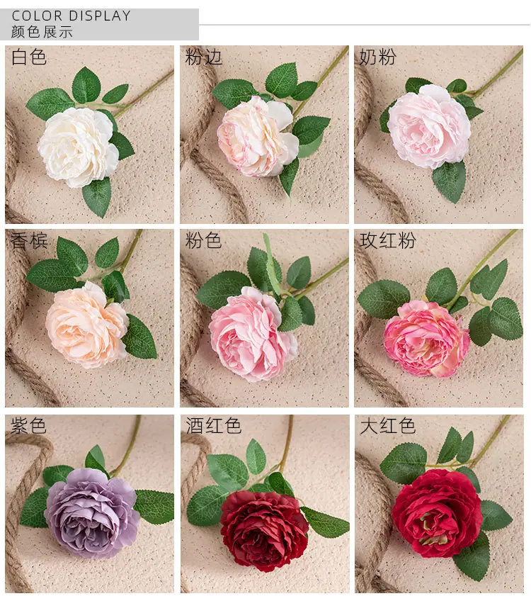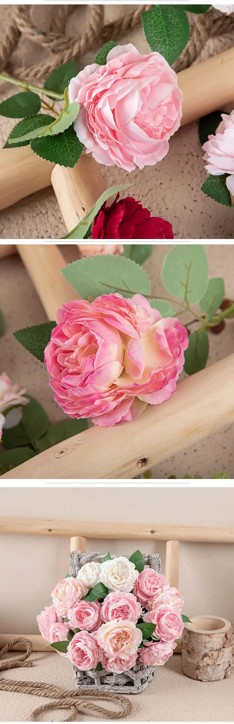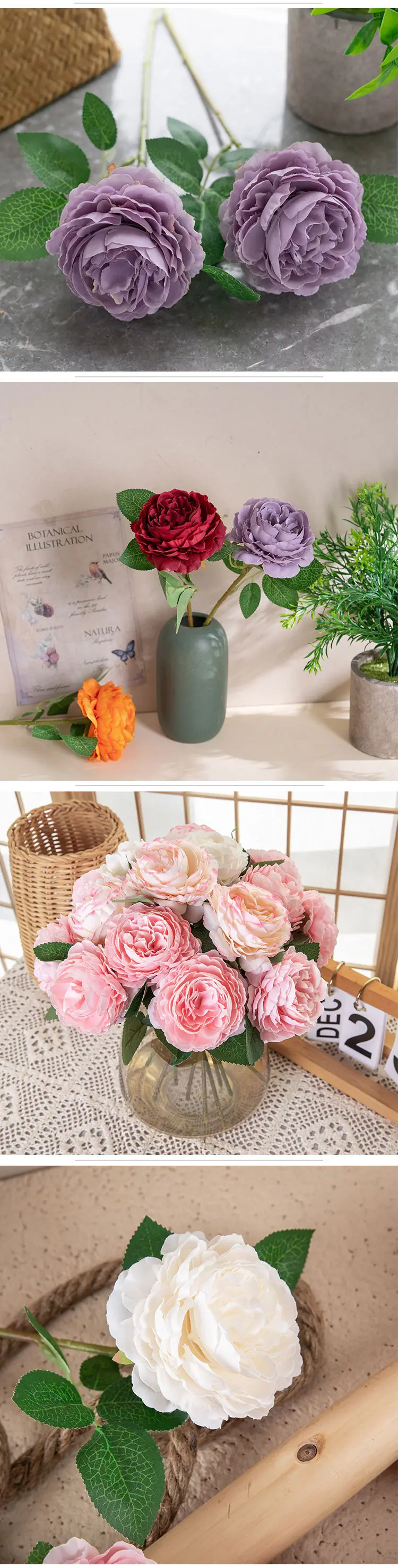 Rosa de 3 cabezas, peonía occidental, flor artificial, decoración de boda, estilo INS, pared de flores, MW51010