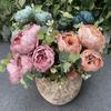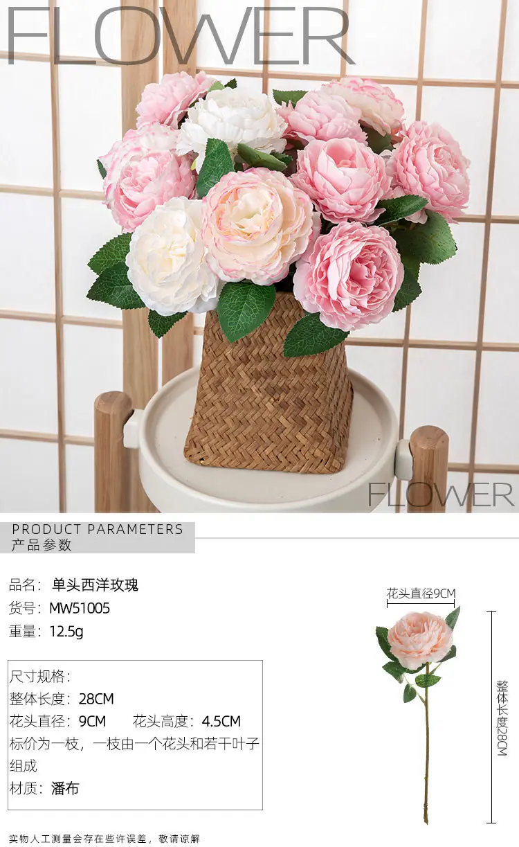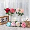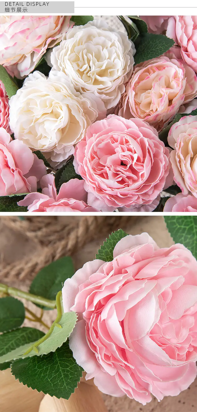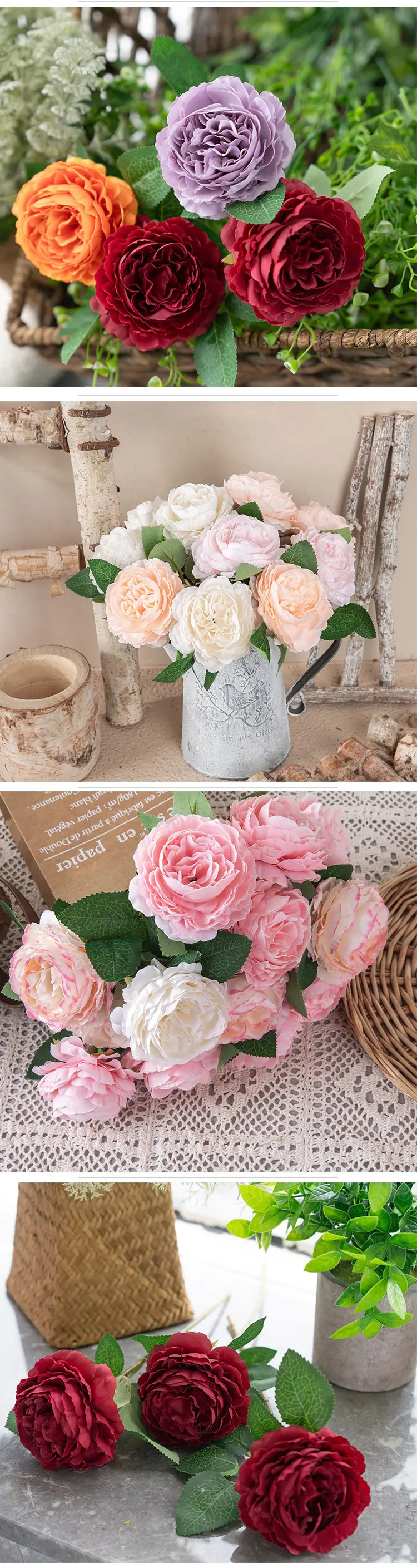 Rosa de 3 cabezas, peonía occidental, flor artificial, decoración de boda, estilo INS, pared de flores, MW51010