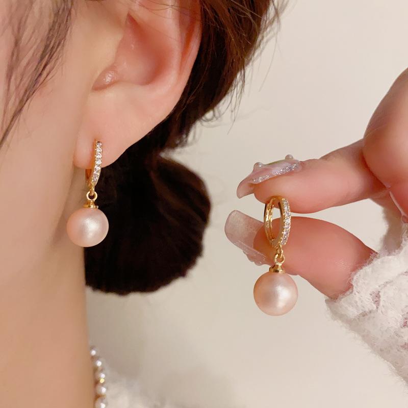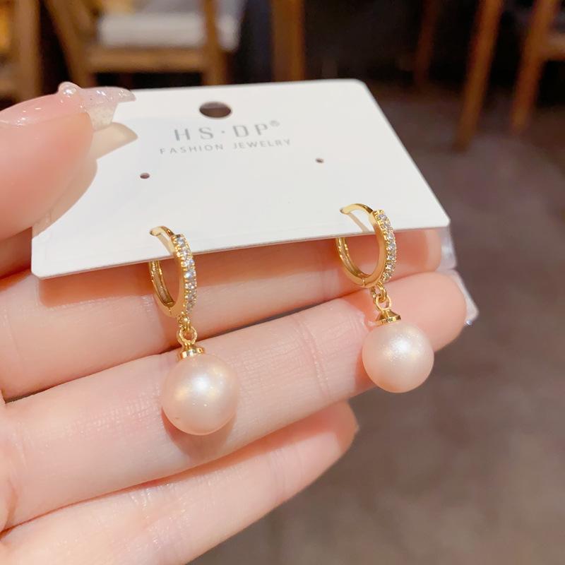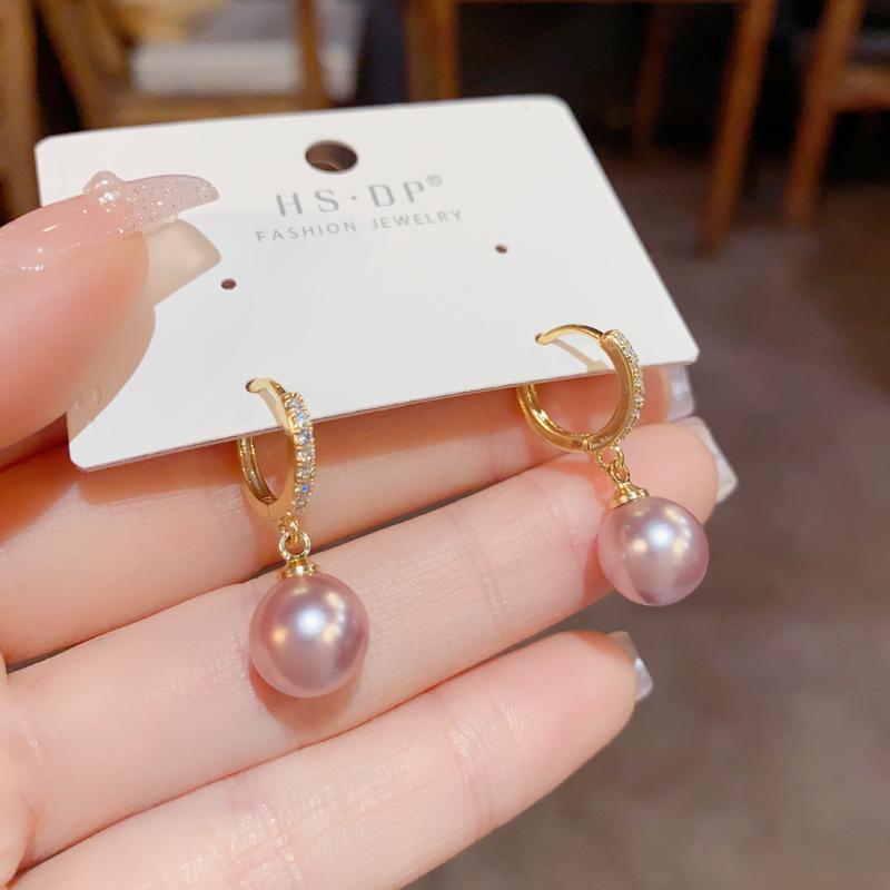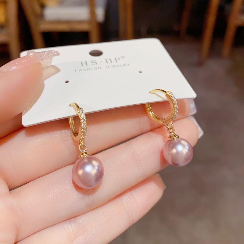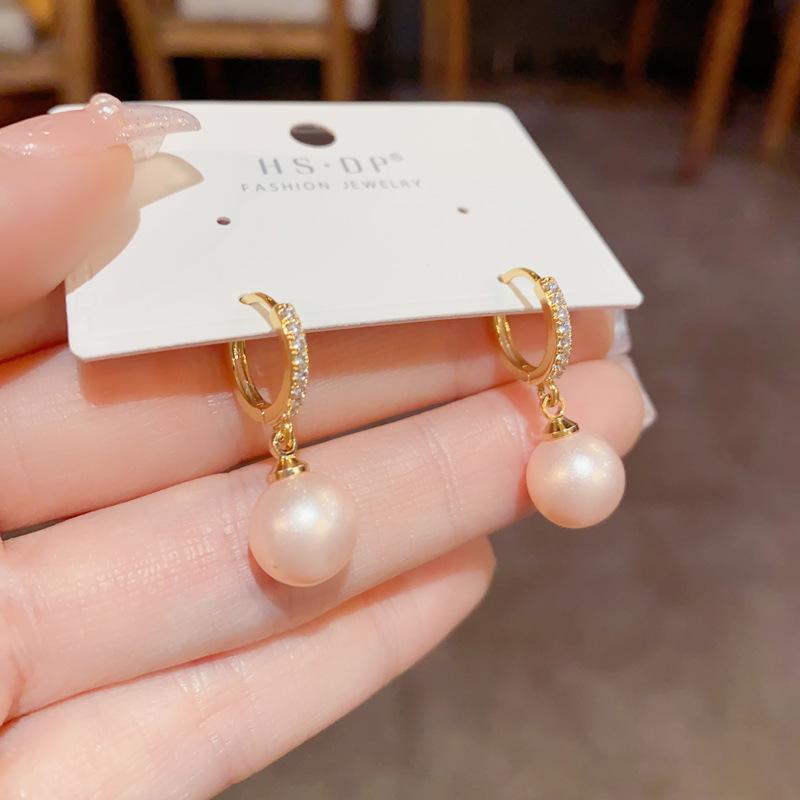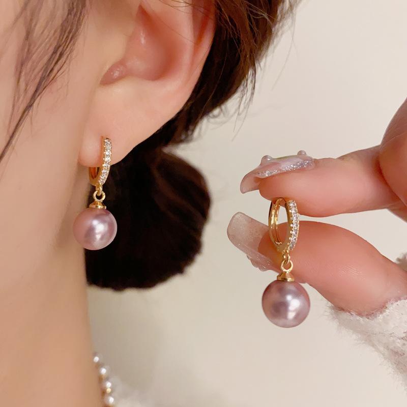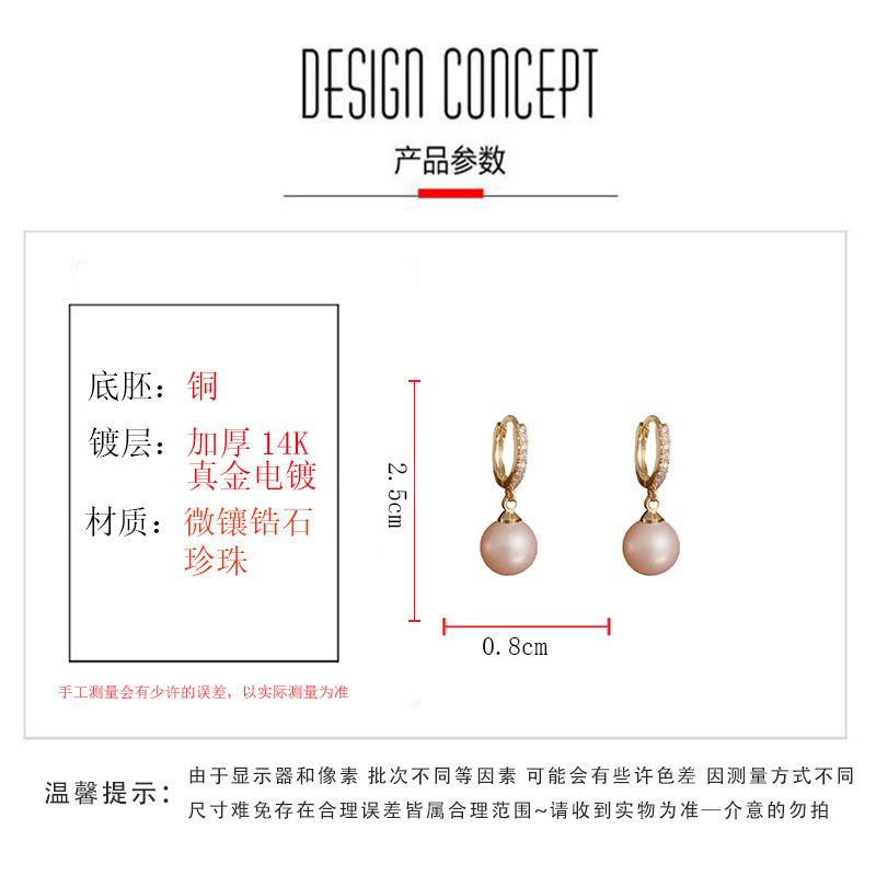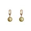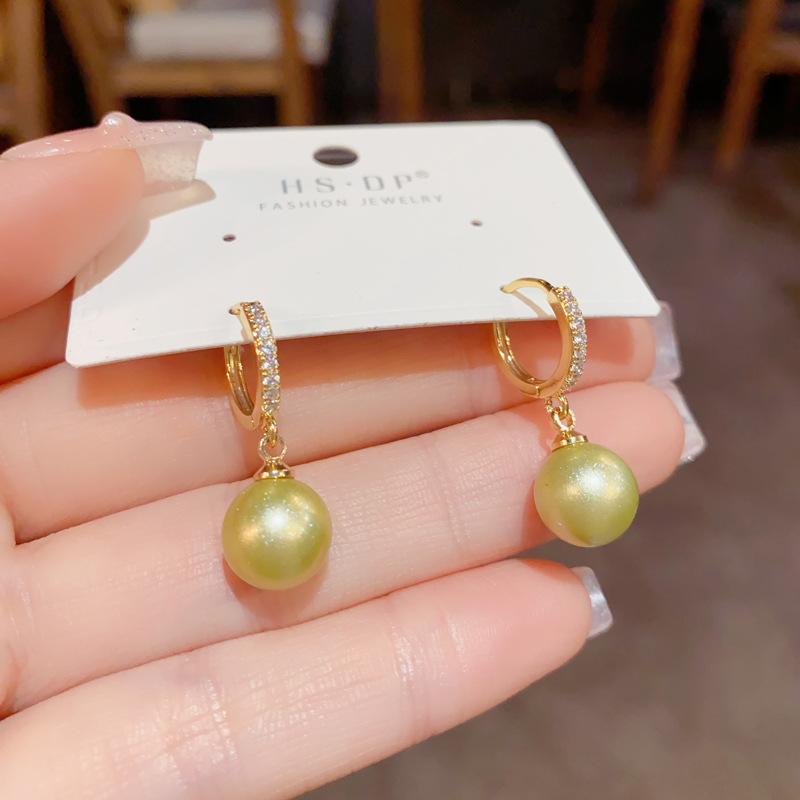 Zircon champagne pearl ear buckle (thick real gold color), Zircon green pearl ear buckle (thick real gold colo...