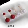 Pendientes de estilo coreano con diseño de nicho de personalidad roja, con hebilla de perla de circonita, sencillos y elegantes, de estilo Joker, venta al por mayor