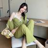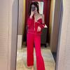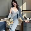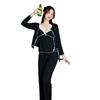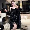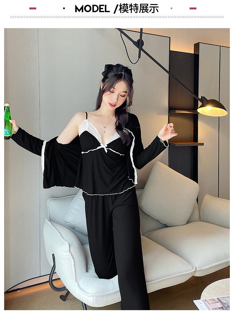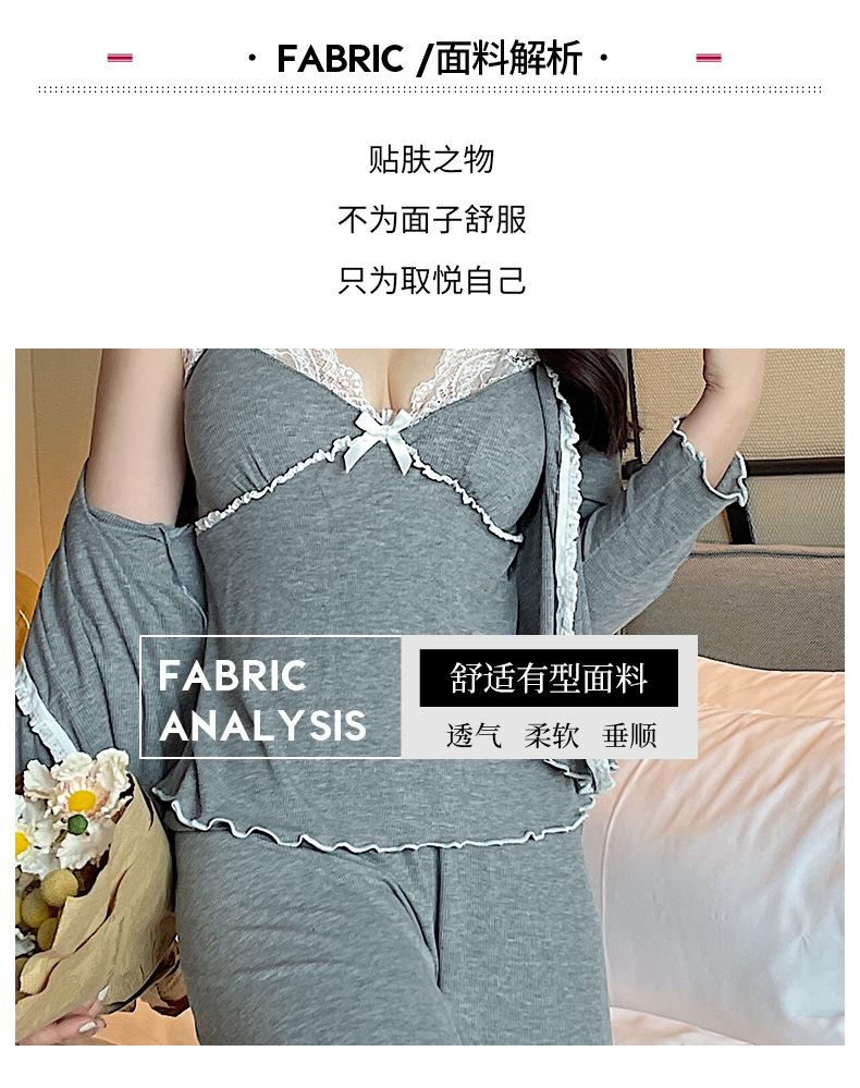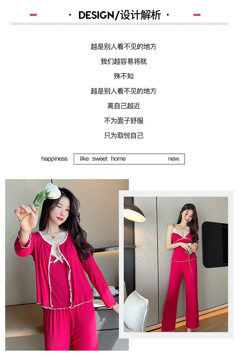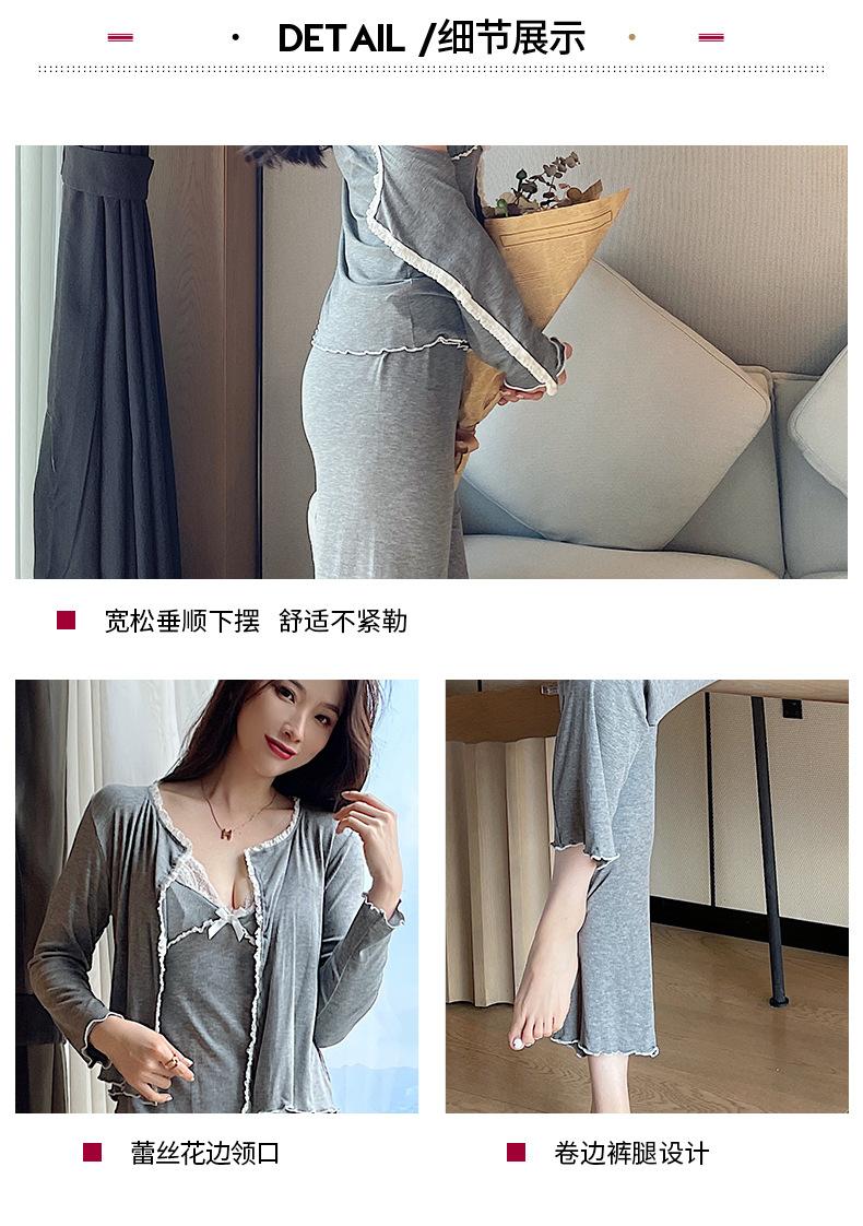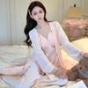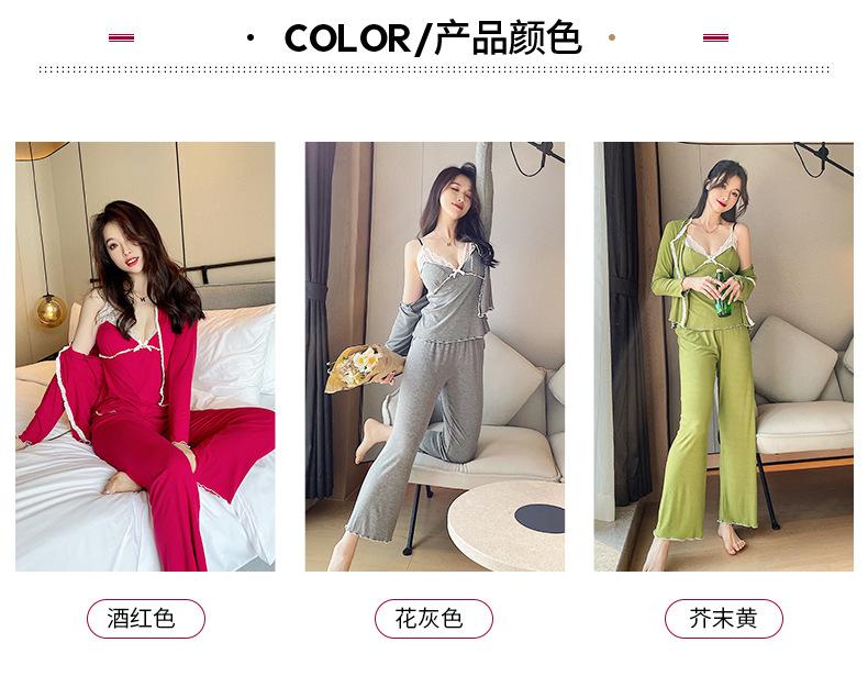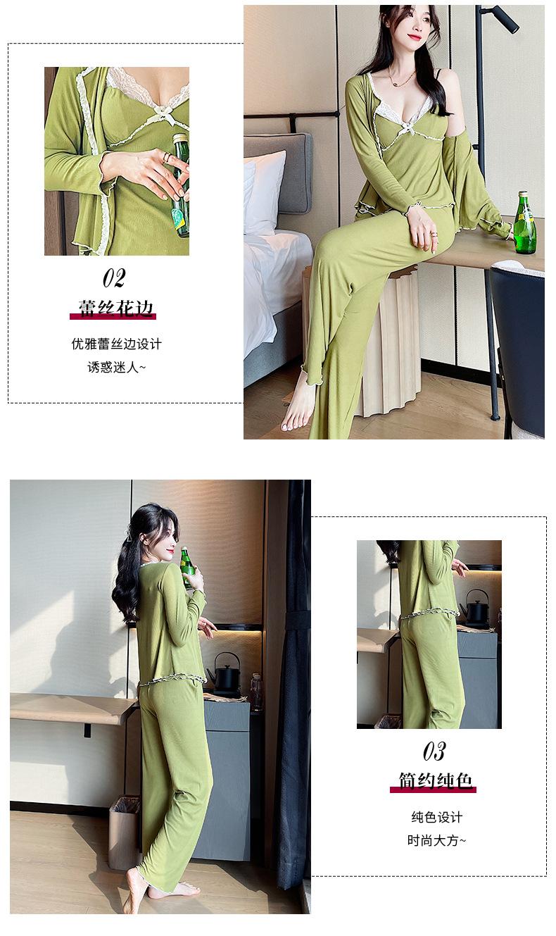 Otoño e Invierno Nuevo Conjunto Sexy de Pijama de Tres Piezas con Cuello en V Escotado, Bata y Pantalón Largo, Conjunto de Pijama de Algodón para Mujer Transpirable y Suave