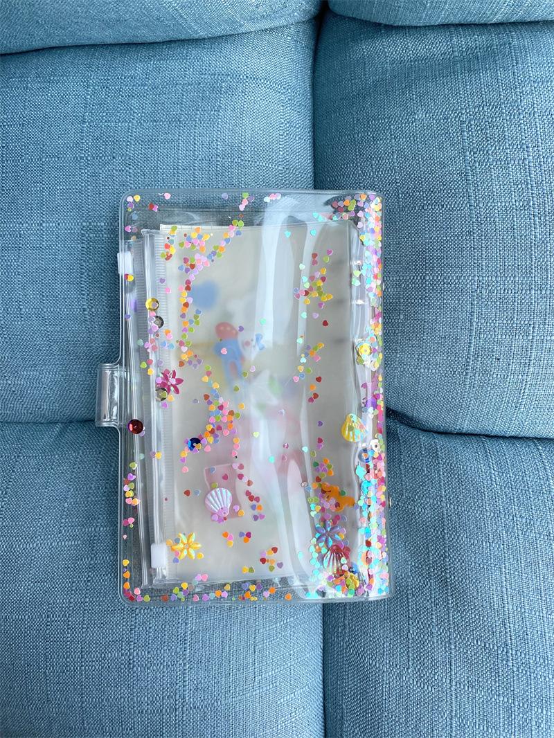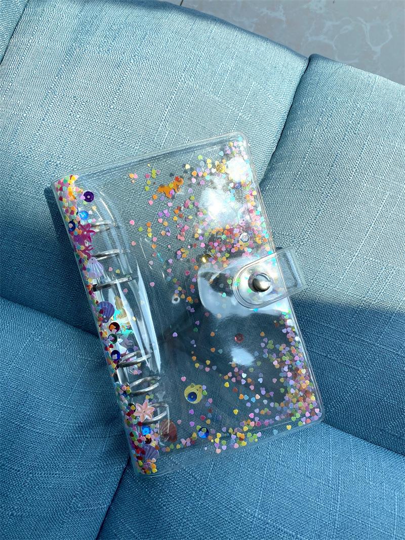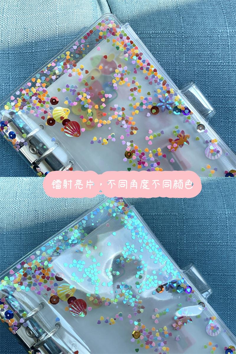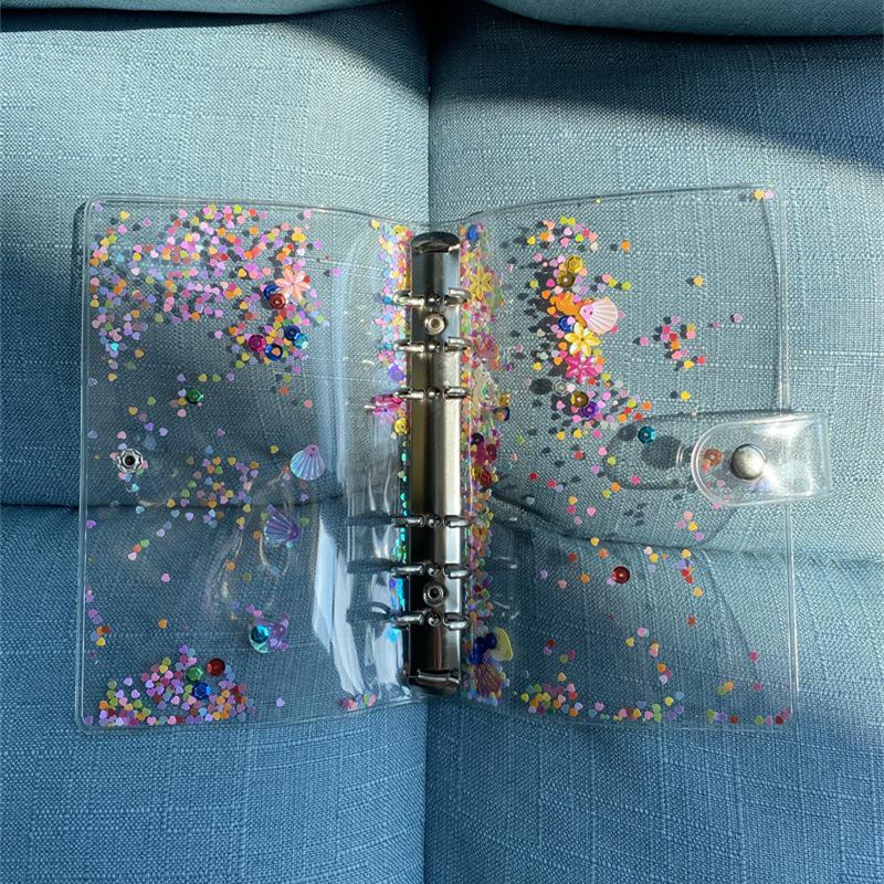 Brillante concha de lentejuelas de hojas sueltas, cuenta de mano diy concha A6 carpeta de PVC de cara suave, concha de plástico removible