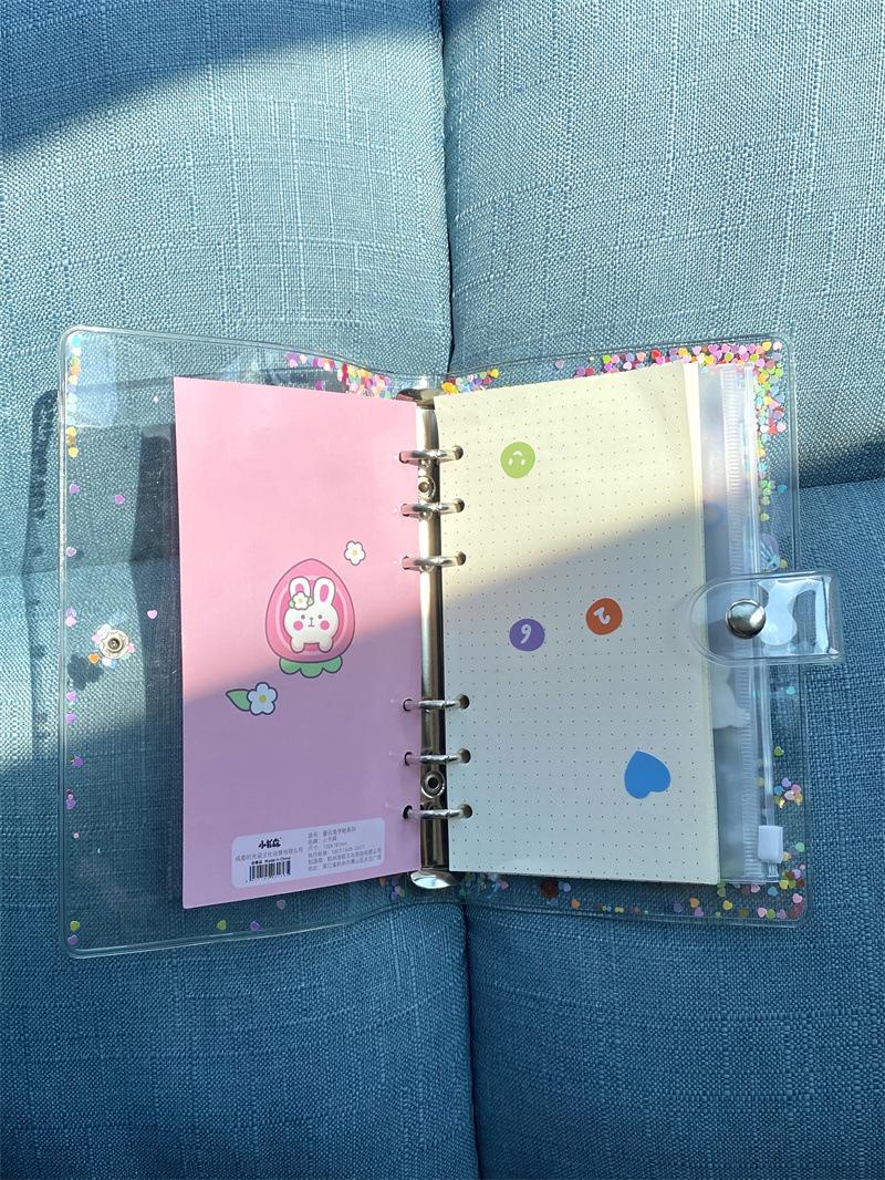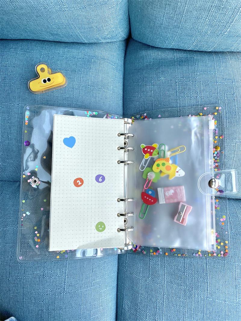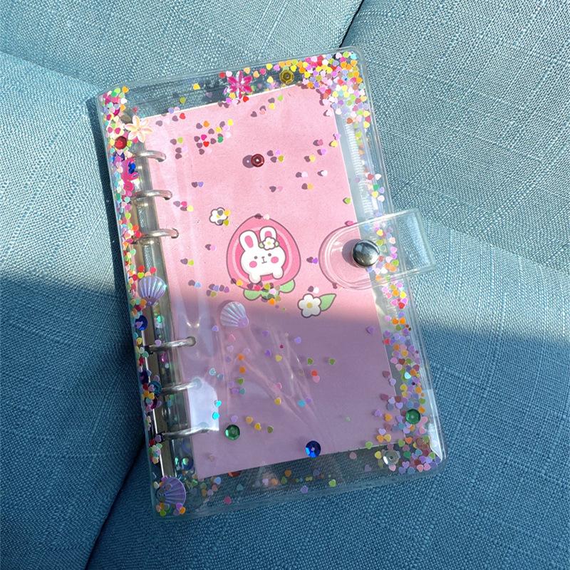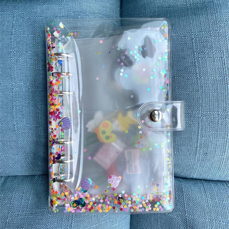 Brillante concha de lentejuelas de hojas sueltas, cuenta de mano diy concha A6 carpeta de PVC de cara suave, concha de plástico removible