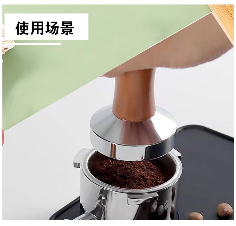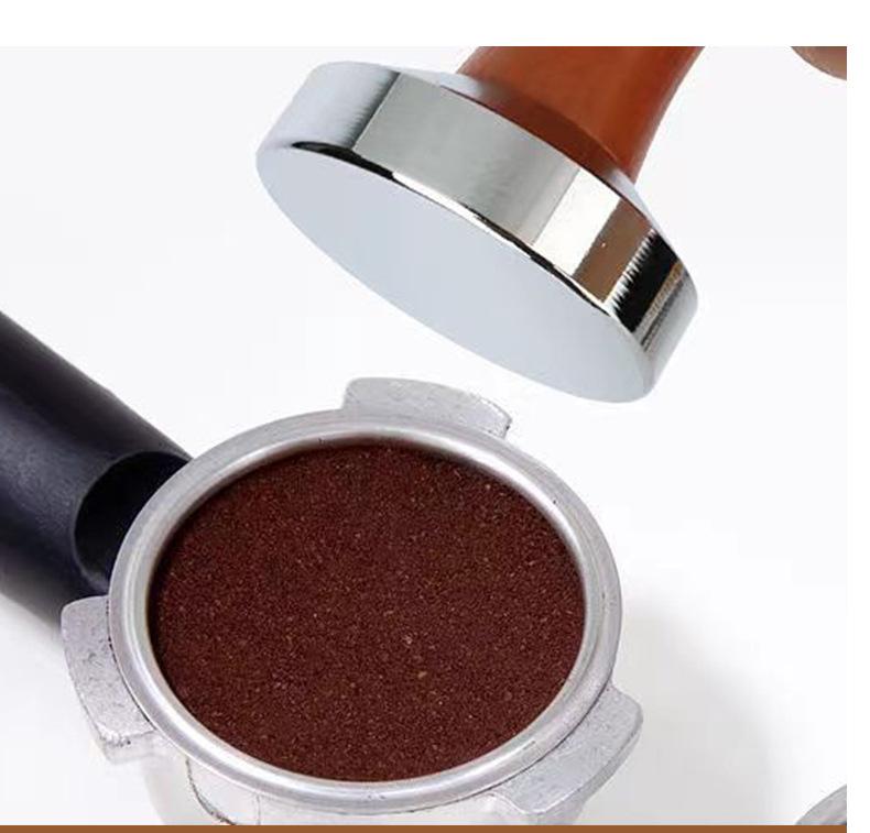 Prensa de café en polvo de acero inoxidable, 51/53/58 mm, mango de madera liso, martillo para prensa de café, máquina de café, paño para café