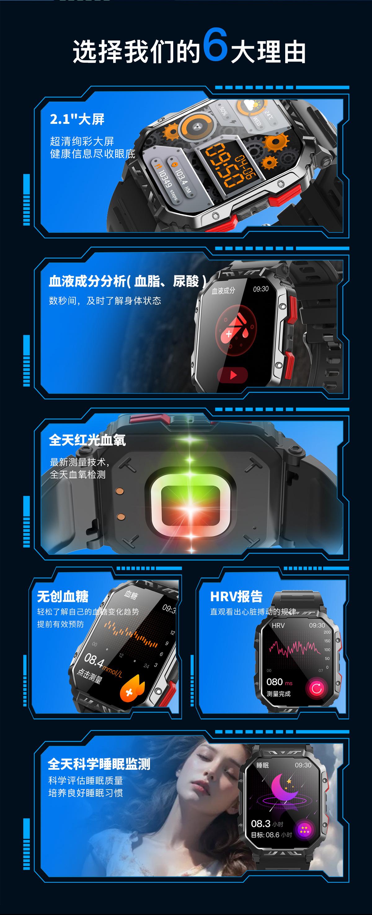 Step counting, Heart rate monitoring, blood pressure measurement, Measuring body temperature, Bluetooth call, ...