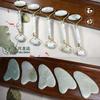 Herramientas de belleza de jade natural transfronterizas, polvo facial, tabla de raspado de jade, masajeador de amor en caja en stock