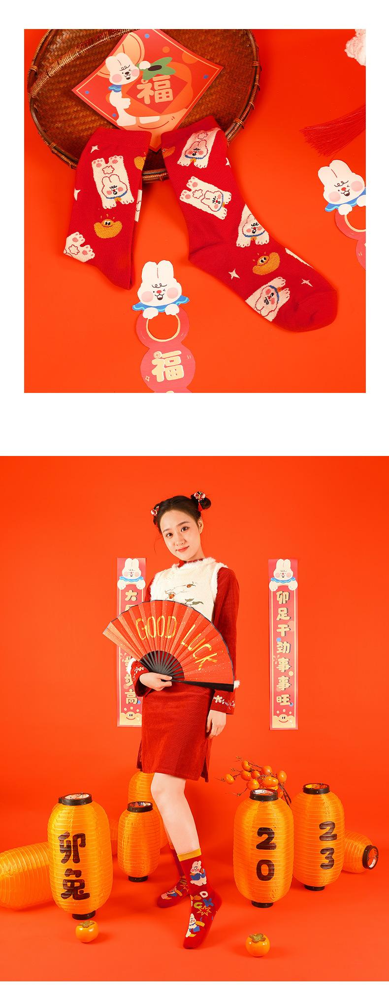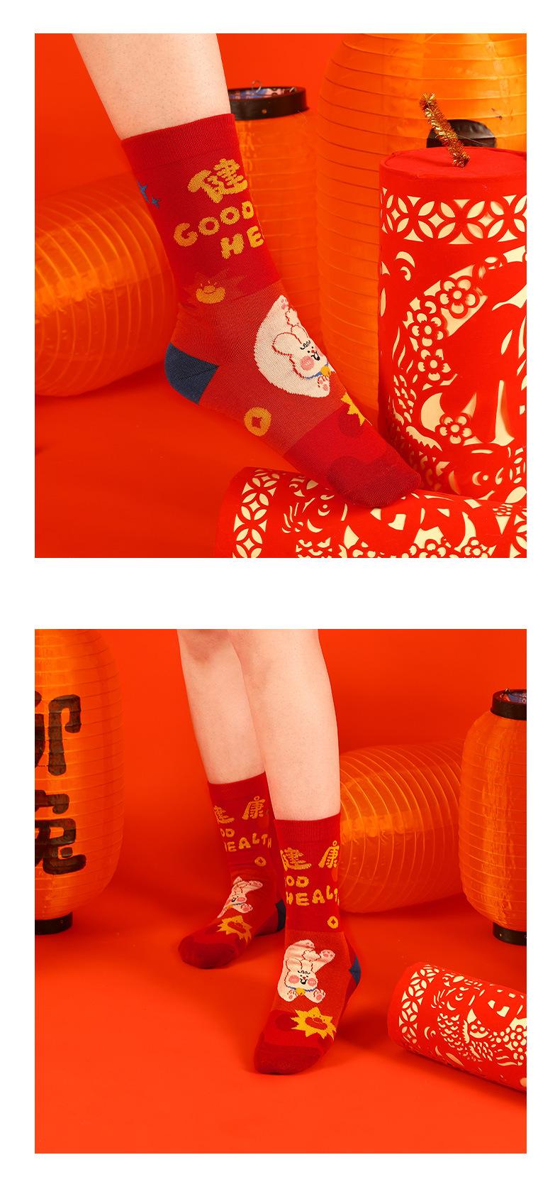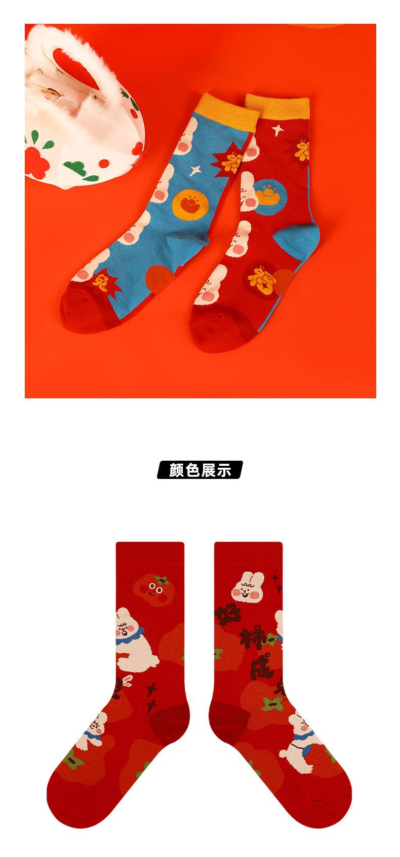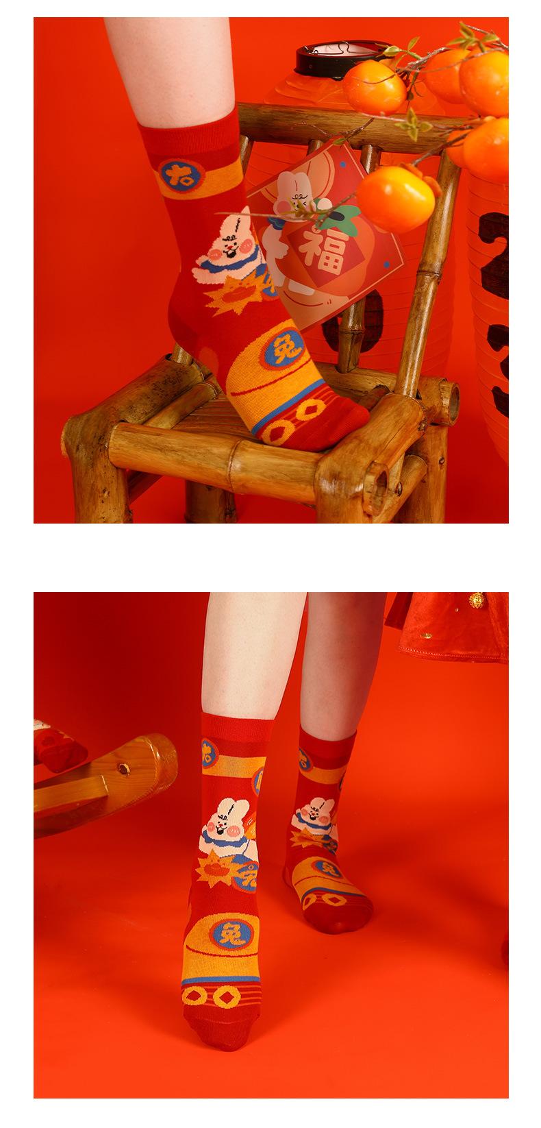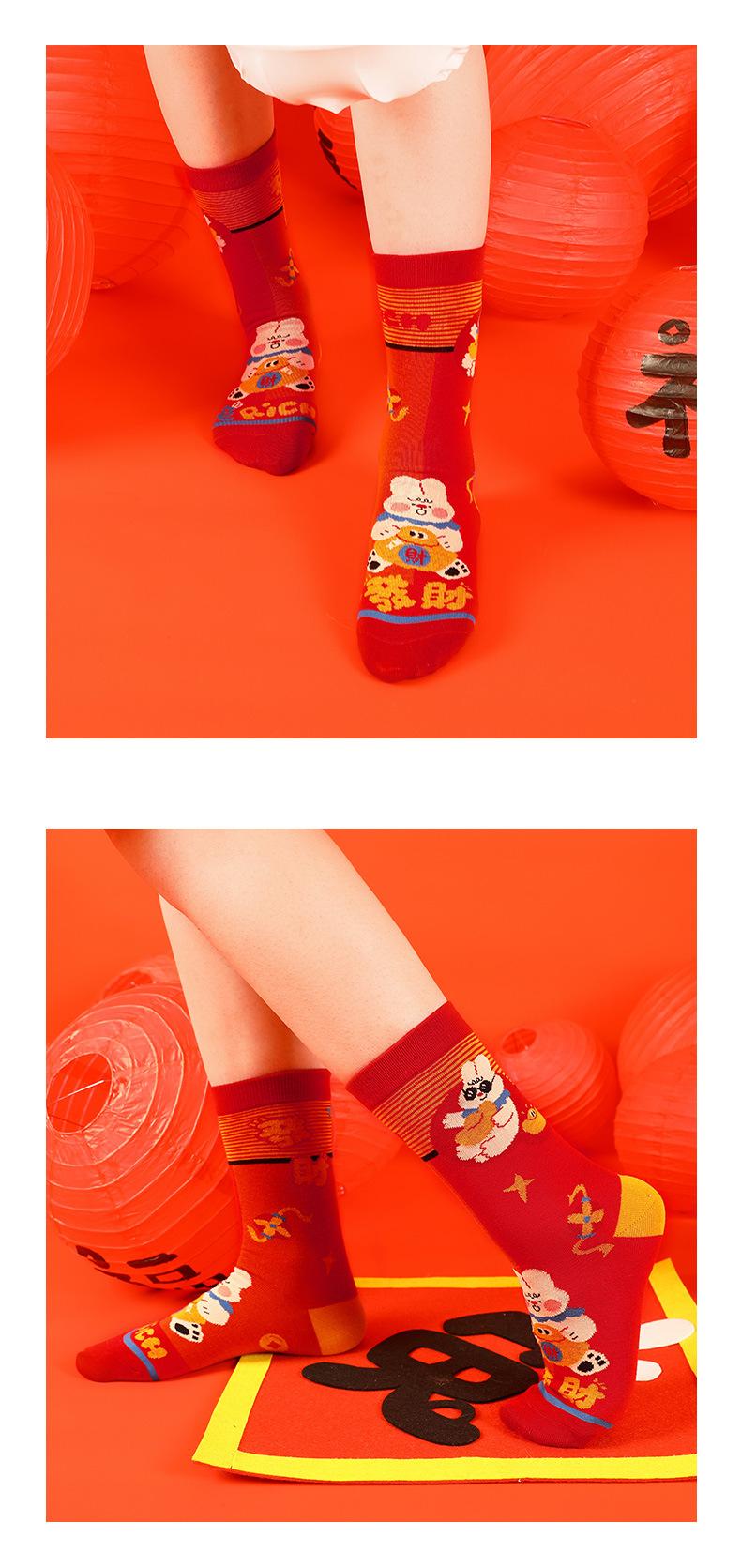 Calcetines Rojos Originales Jitu Blessing Año del Conejo Regalo de Año Nuevo Año Buming Algodón Dibujos Animados Otoño e Invierno Calcetines de Hombre y Mujer Calcetines de Media Caña