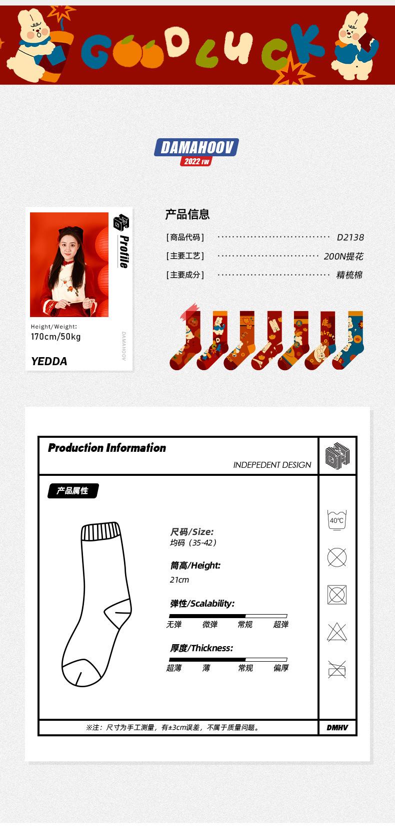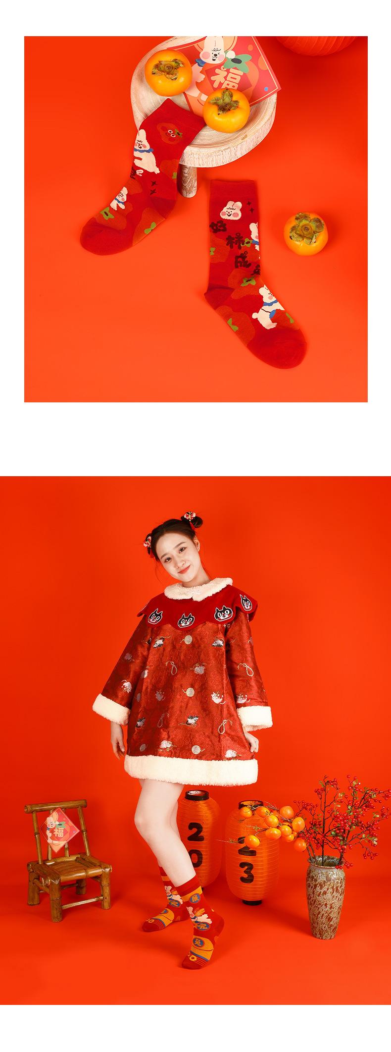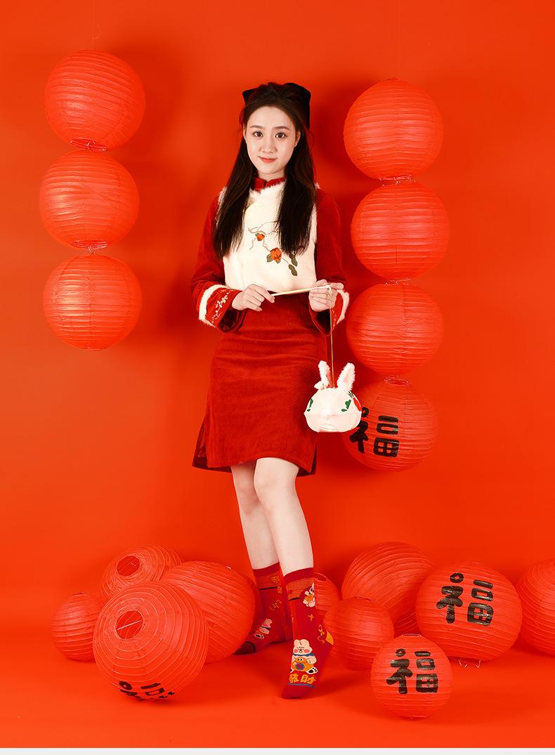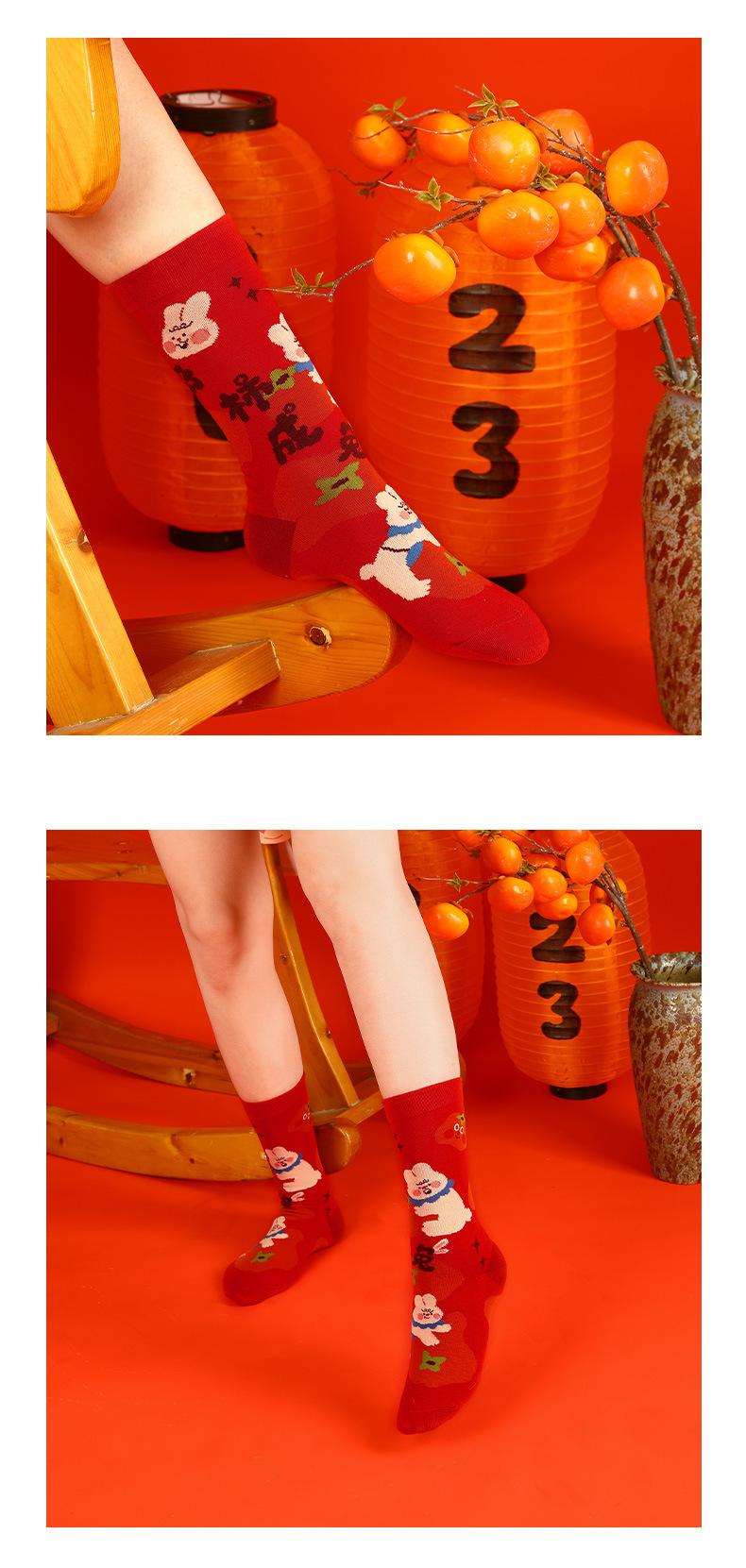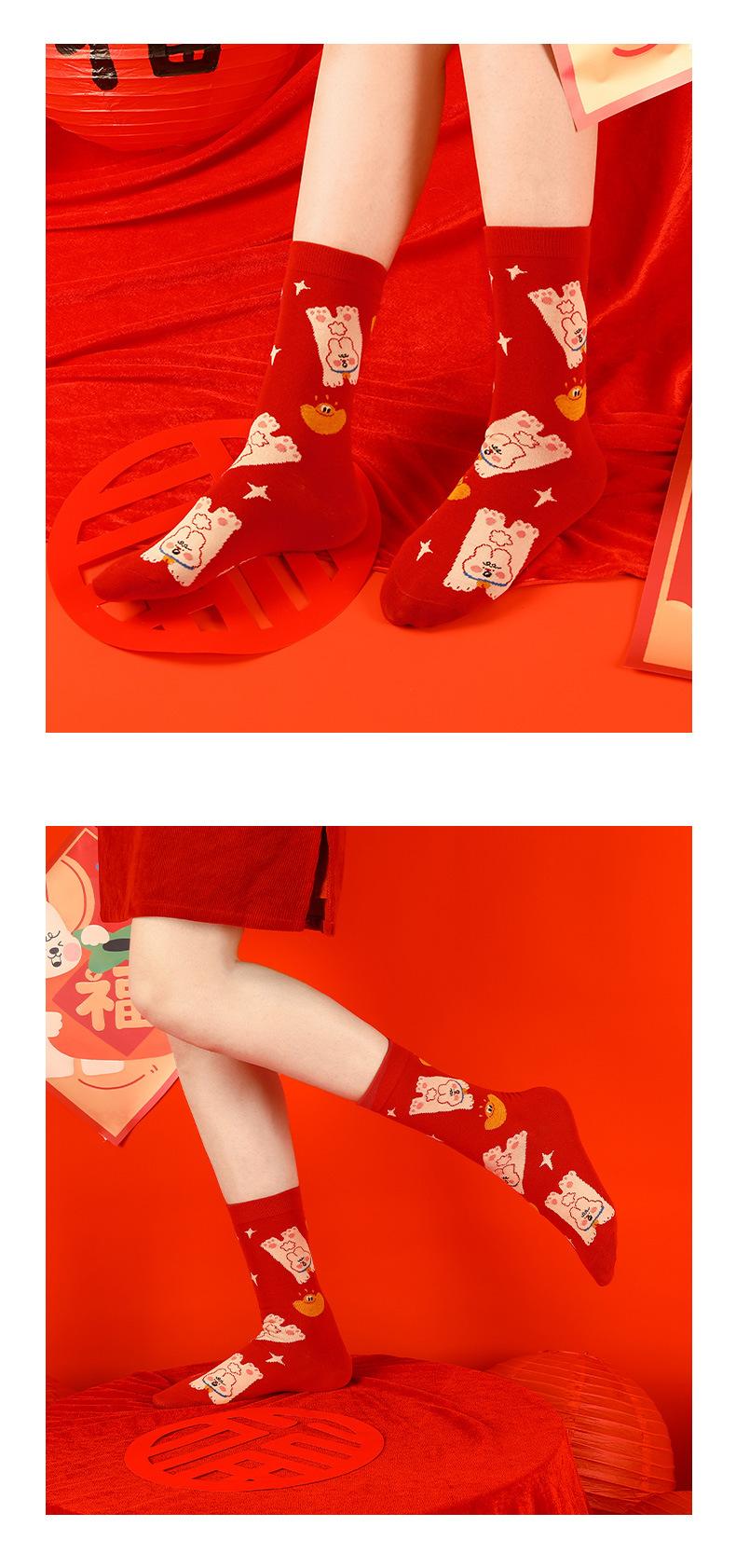 Calcetines Rojos Originales Jitu Blessing Año del Conejo Regalo de Año Nuevo Año Buming Algodón Dibujos Animados Otoño e Invierno Calcetines de Hombre y Mujer Calcetines de Media Caña