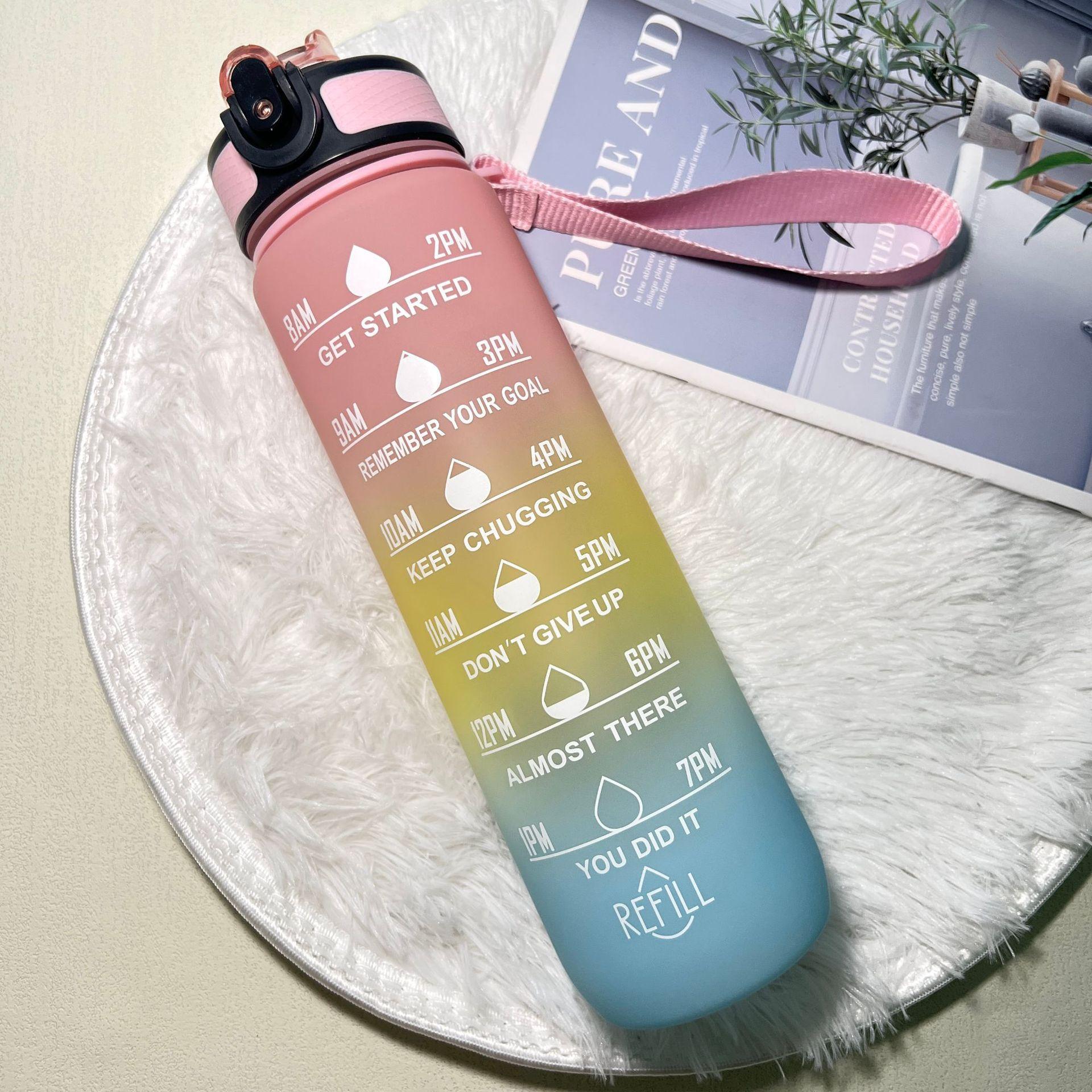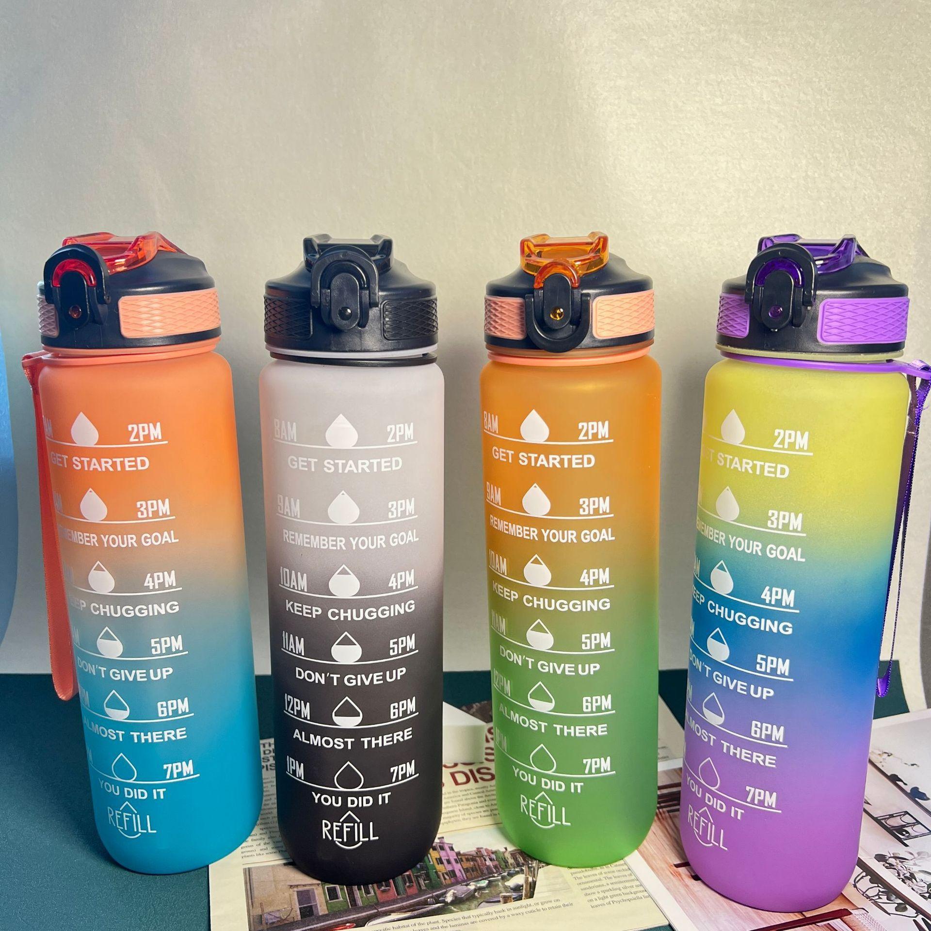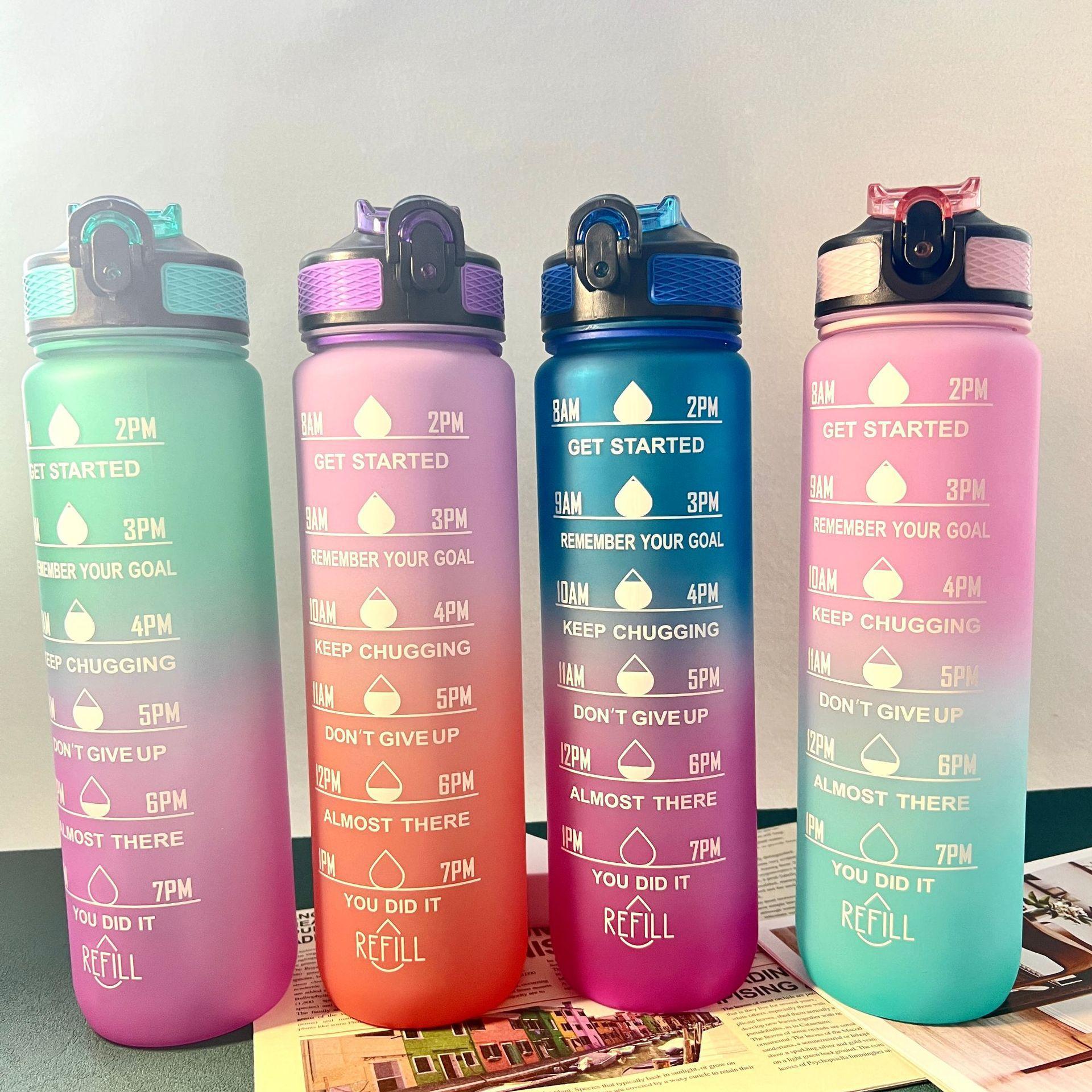 Amazon transfronterizo escala de tiempo esmerilado degradado taza de plástico pintura en aerosol asa tapa abatible taza espacial deportes al aire libre
