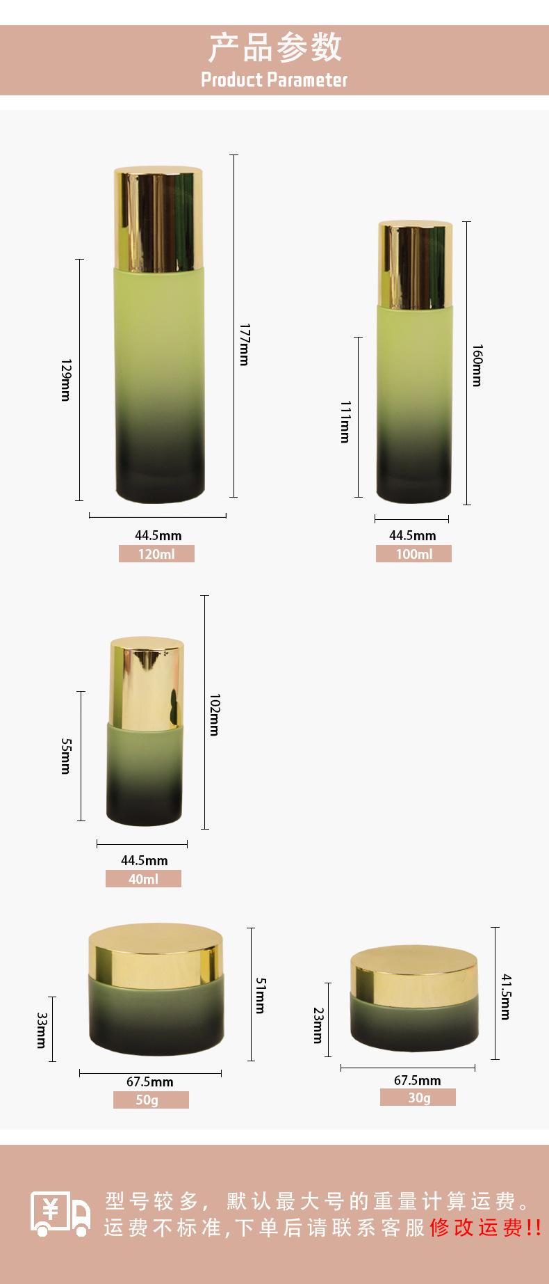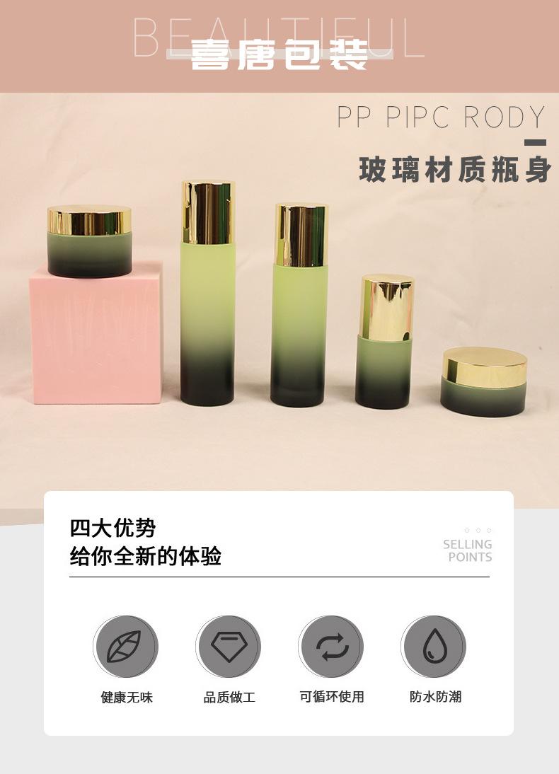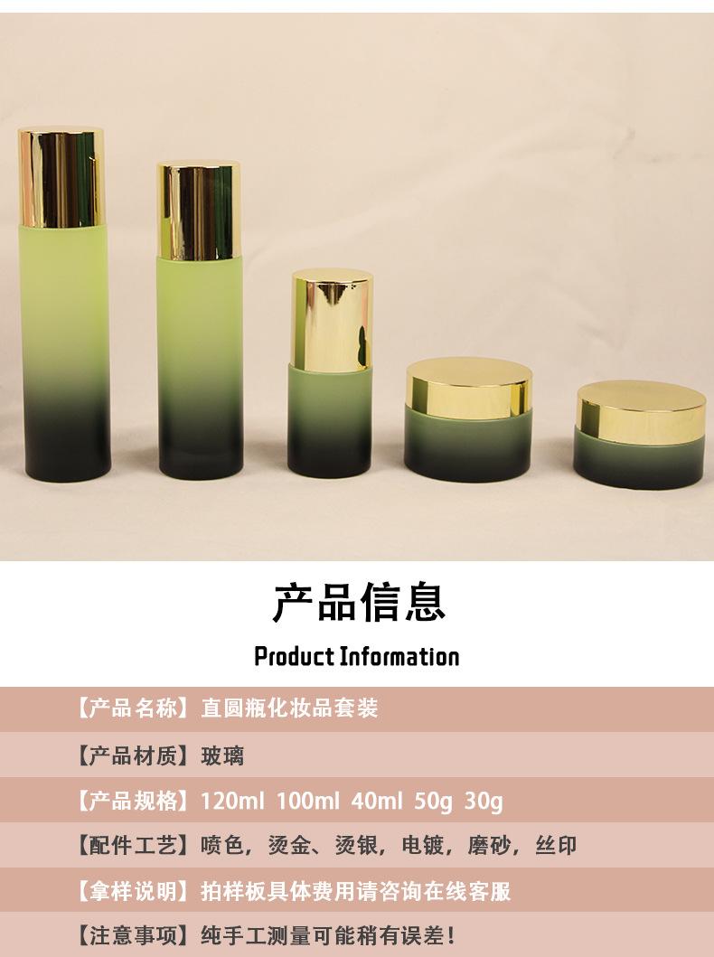 Xitang Packaging - Set de cosméticos redondos y rectos, emulsión de agua, esencia, base, crema, botella de vidrio de 120 ml y 100 ml