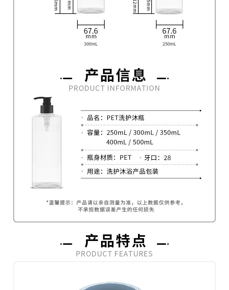 Botella Transparente Cuadrada para Mascotas 250ml-500ml Botella Vacía para Champú y Gel de Ducha Botella con Dispensador para Acondicionador