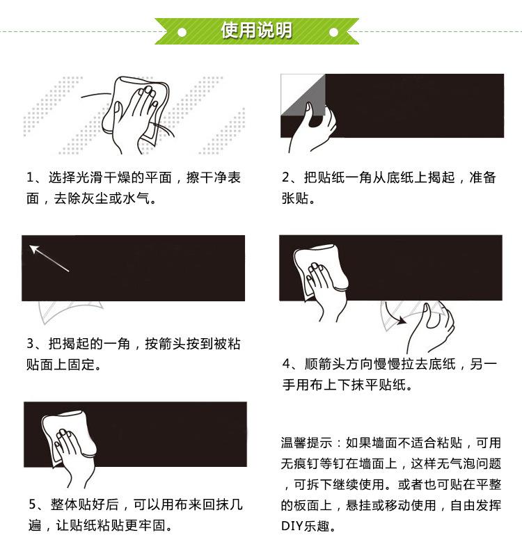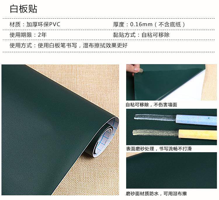Ventas directas de fábrica, especializadas en la producción de adhesivos para pizarrón negro/blanco/verde, PVC engrosado de 0.16 mm, el material es impermeable, engrosado y más duradero (cumpliendo con los estándares de exportación).