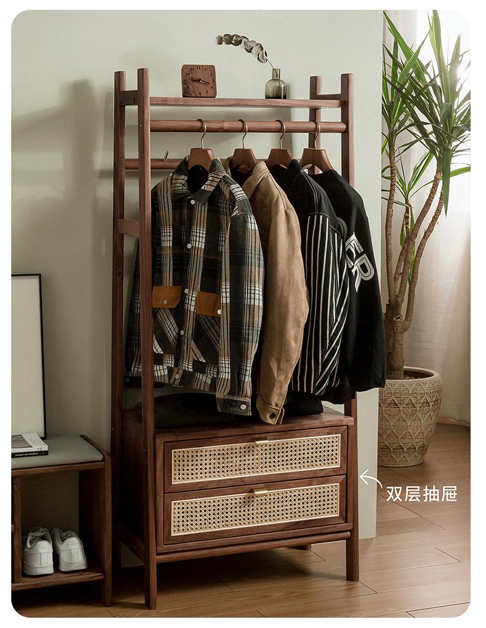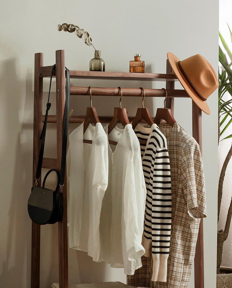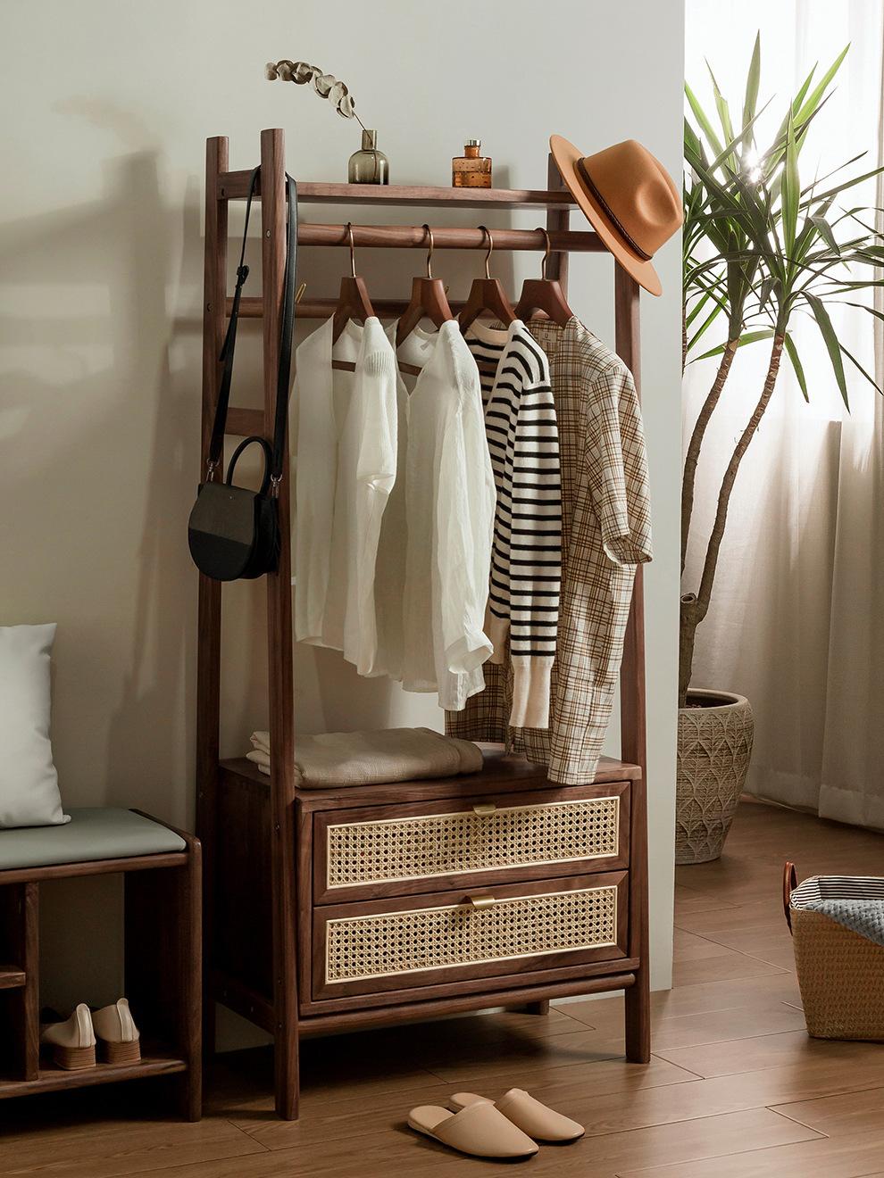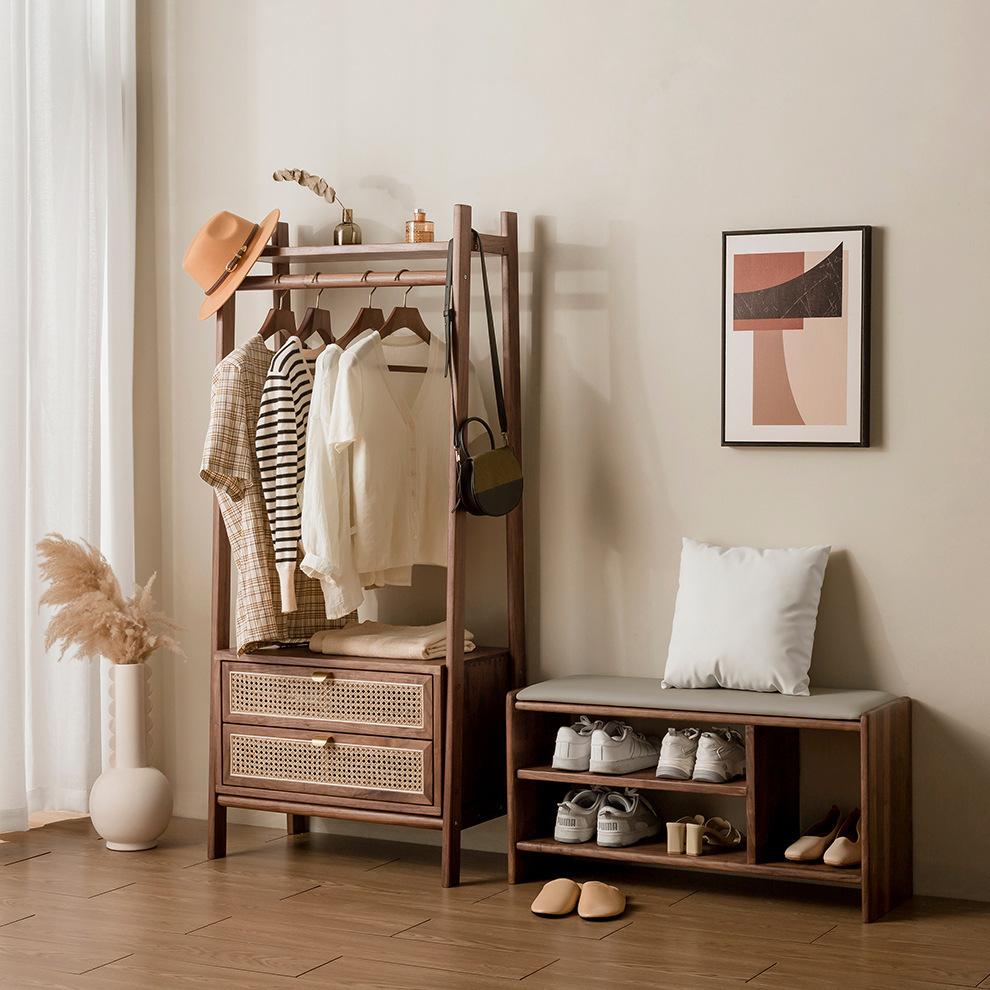 Soporte de piso nórdico de madera maciza nogal negro colgador minimalista moderno madera de cerezo tronco japonés dormitorio perchero
