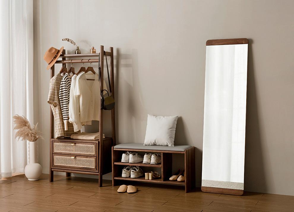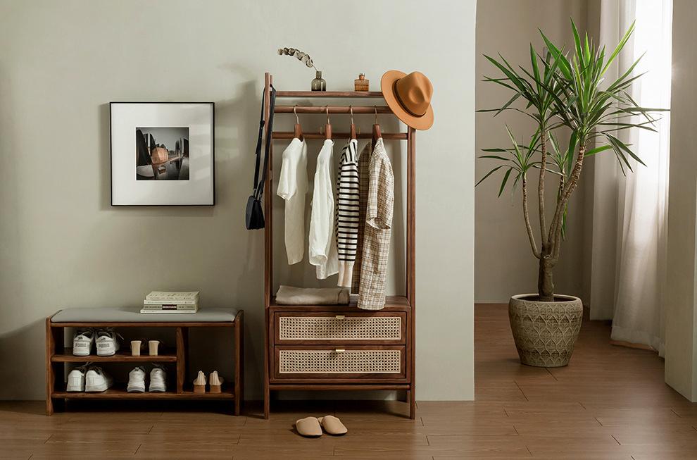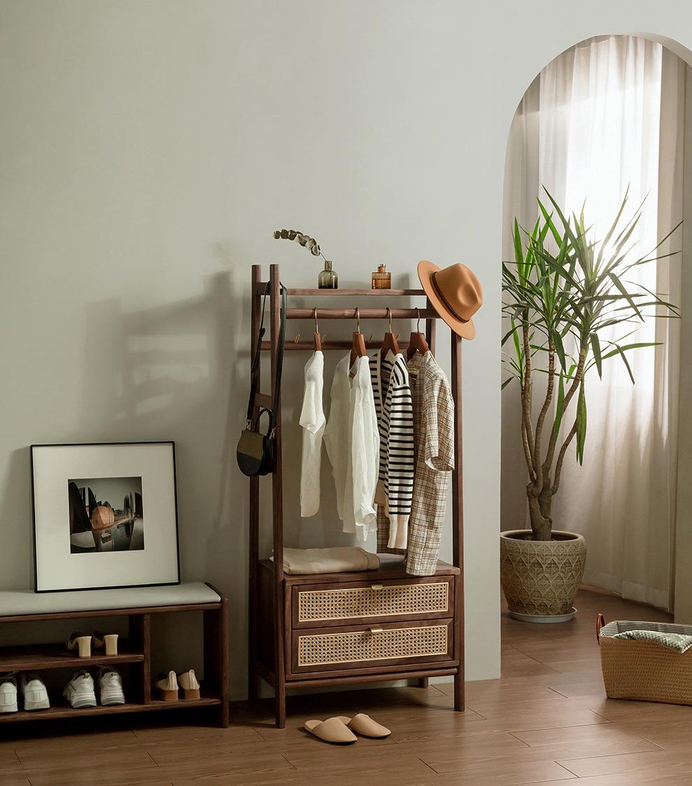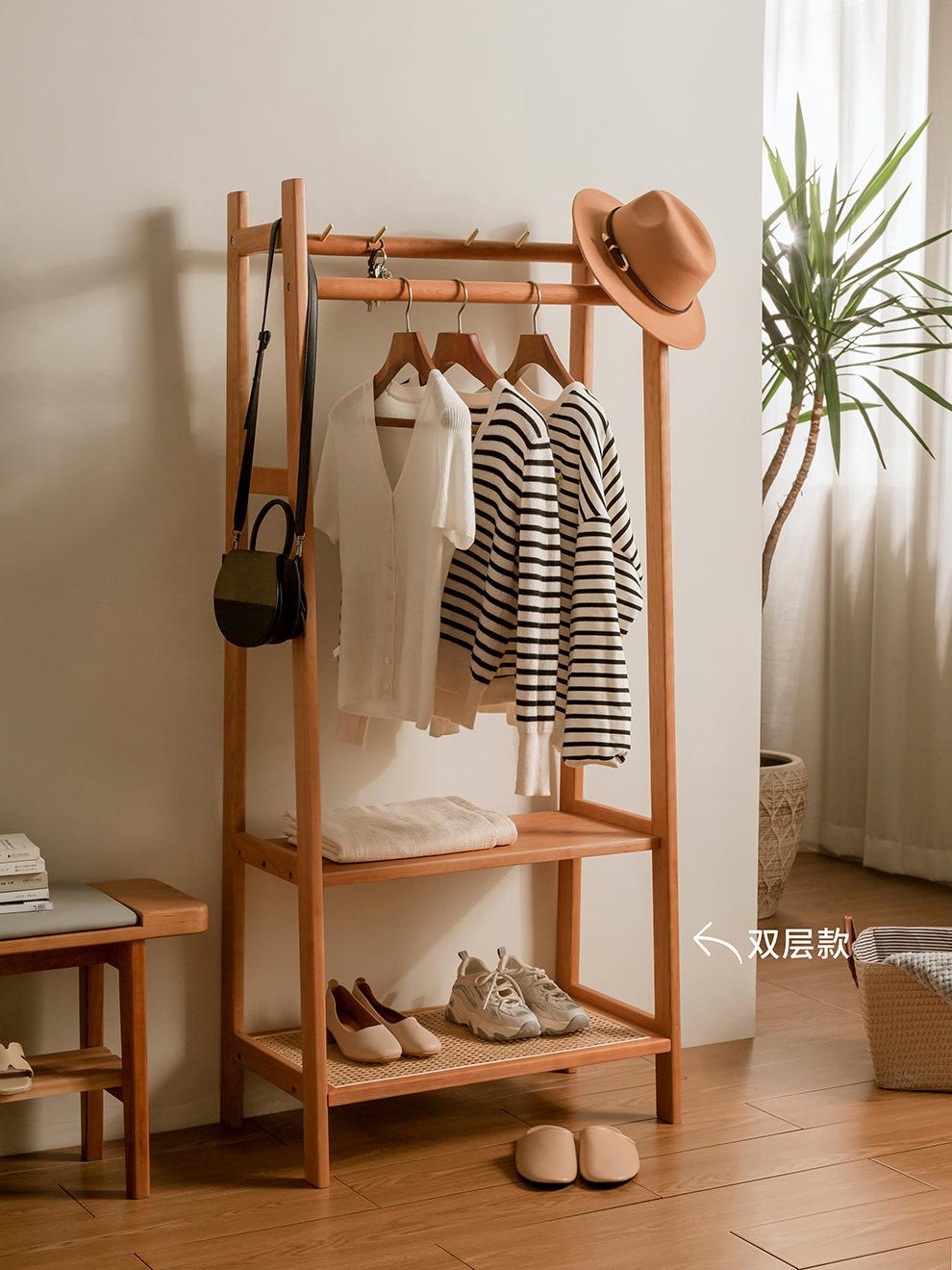Soporte de piso nórdico de madera maciza nogal negro colgador minimalista moderno madera de cerezo tronco japonés dormitorio perchero